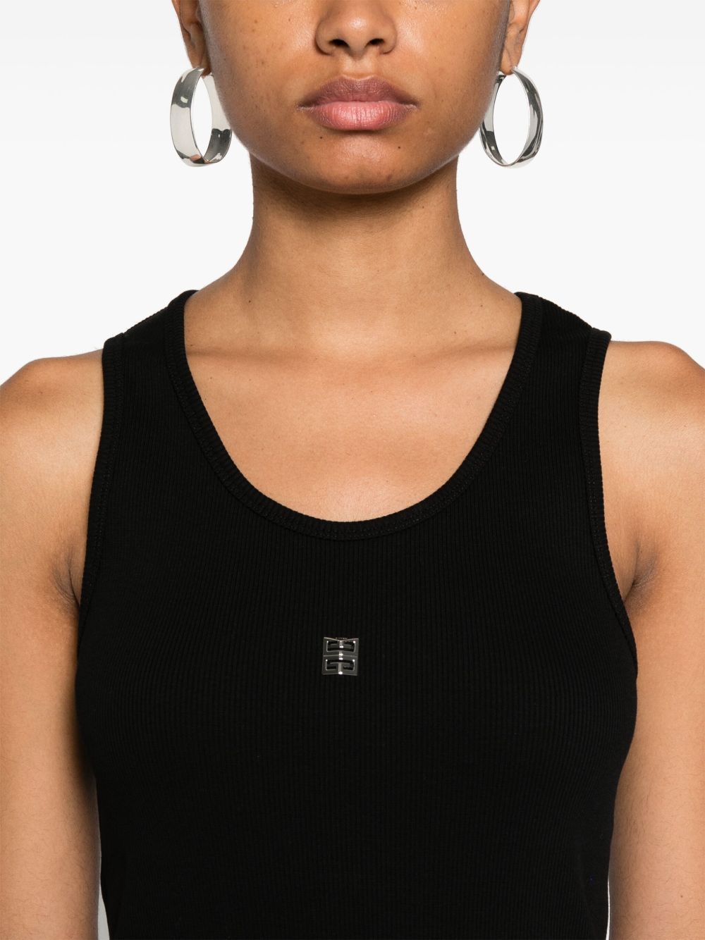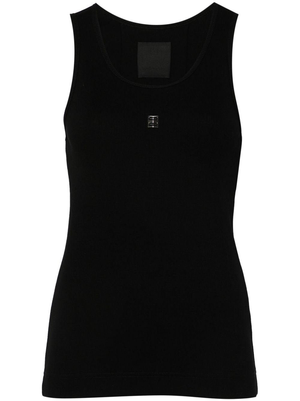 Top Rib tank di GIVENCHY nero in cotone con lavorazione a coste, scollo ambio e caratteristico motivo 4G.