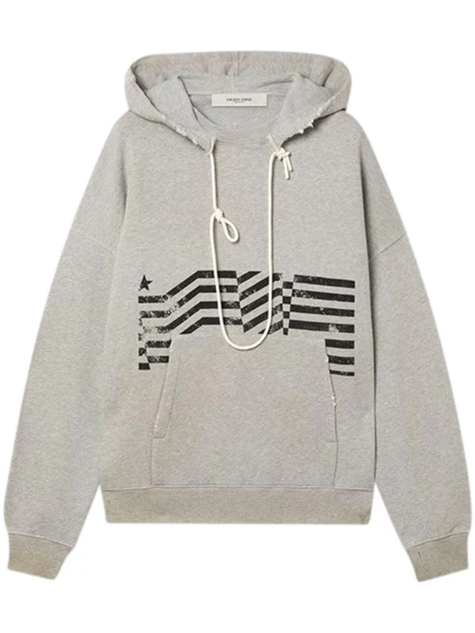 Felpa Distressed Graphic di GOLDEN GOOSE grigiai in cotone, caratterizzata da cappuccio con coulisse, polsi e vita a costine, stampa e tasca a marsupio sul davanti.