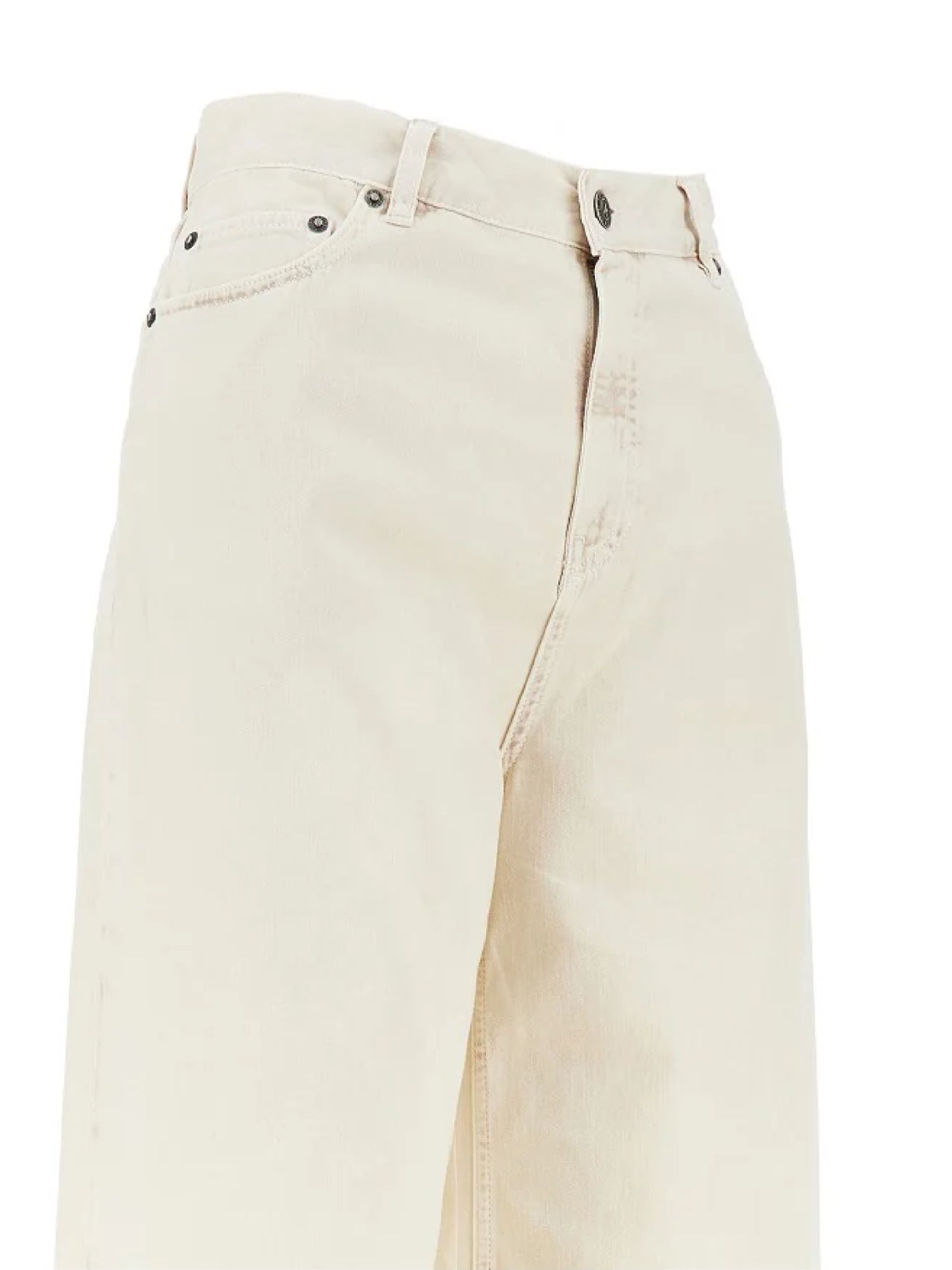 Jeans Melody Boyfriend di GOLDEN GOOSE beige in denim di cotone, caratterizzato da chiusura con zip e bottone, cinque tasche, cavallo basso, iconiche stelline sul retro, dettagli slavati e gamba ampia.