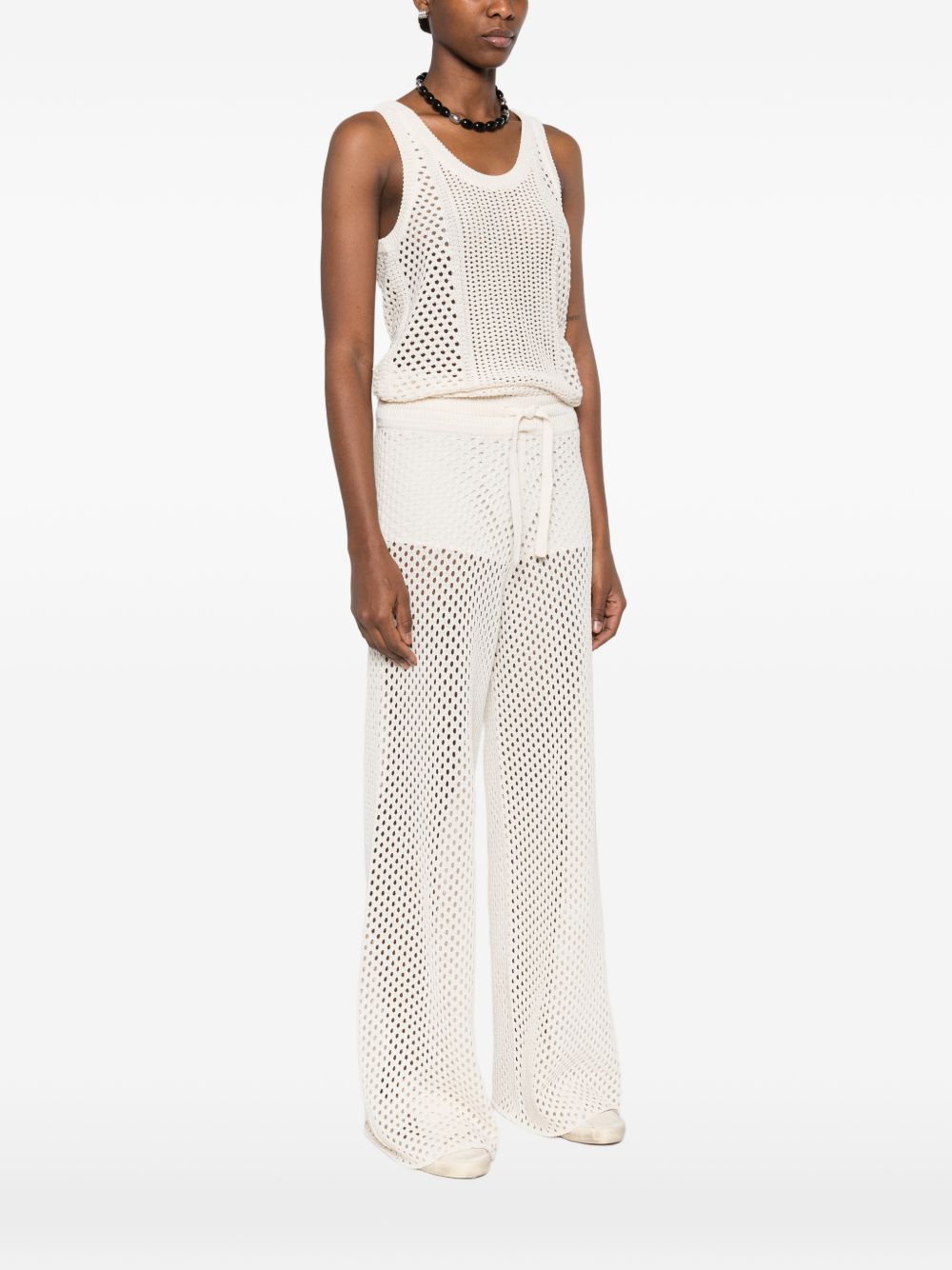 Pantalone ricamato di GOLDEN GOOSE bianco in cotone, caratterizzato da vita elasticizzata con un cordoncino regolabile e tessuto traspirante e trasparente.