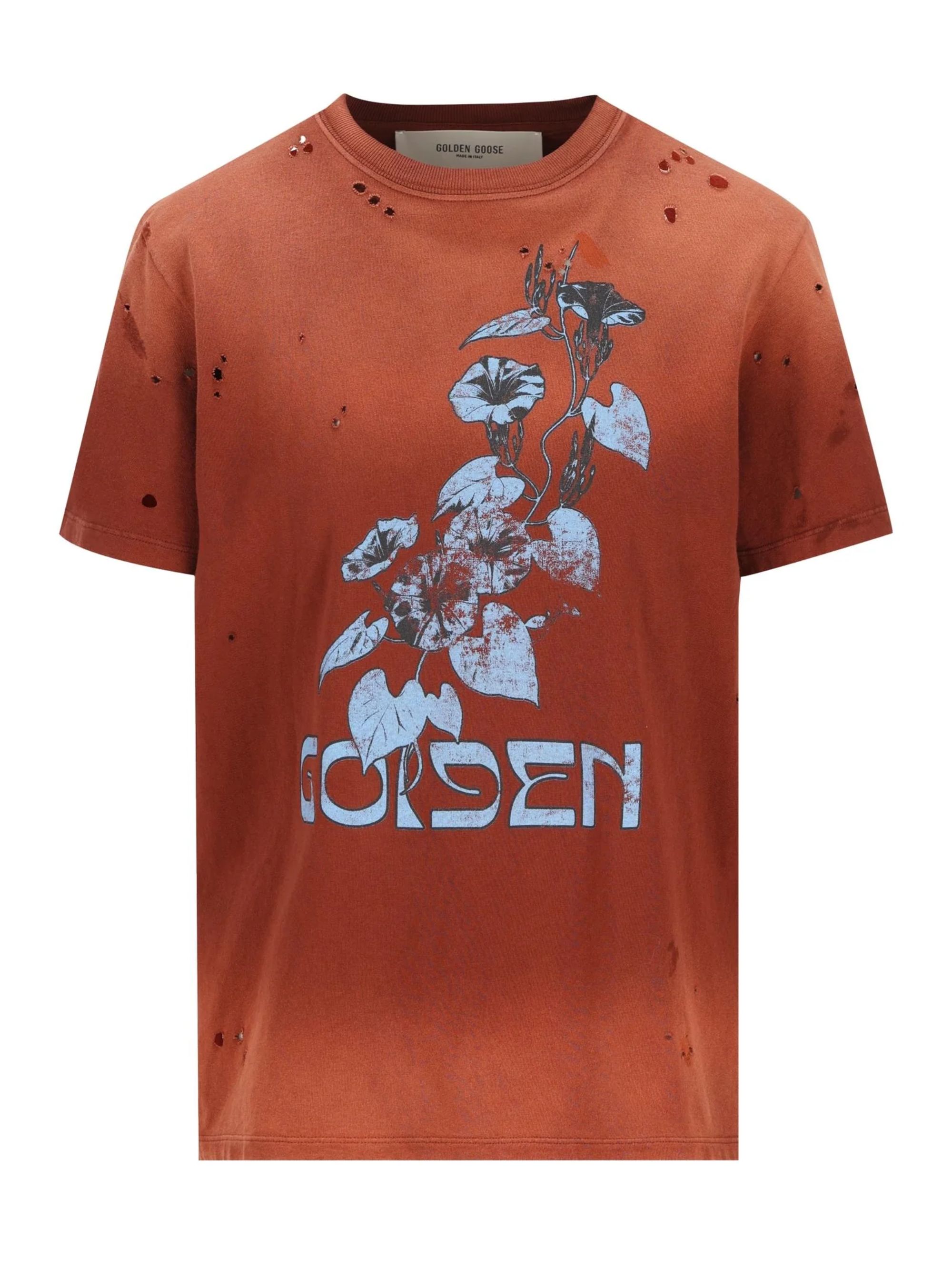 T-shirt con stampa di GOLDEN GOOSE rossa in cotone e girocollo.