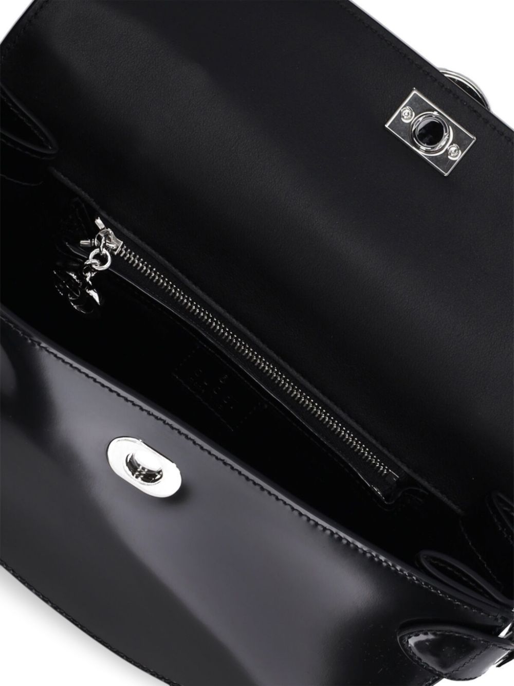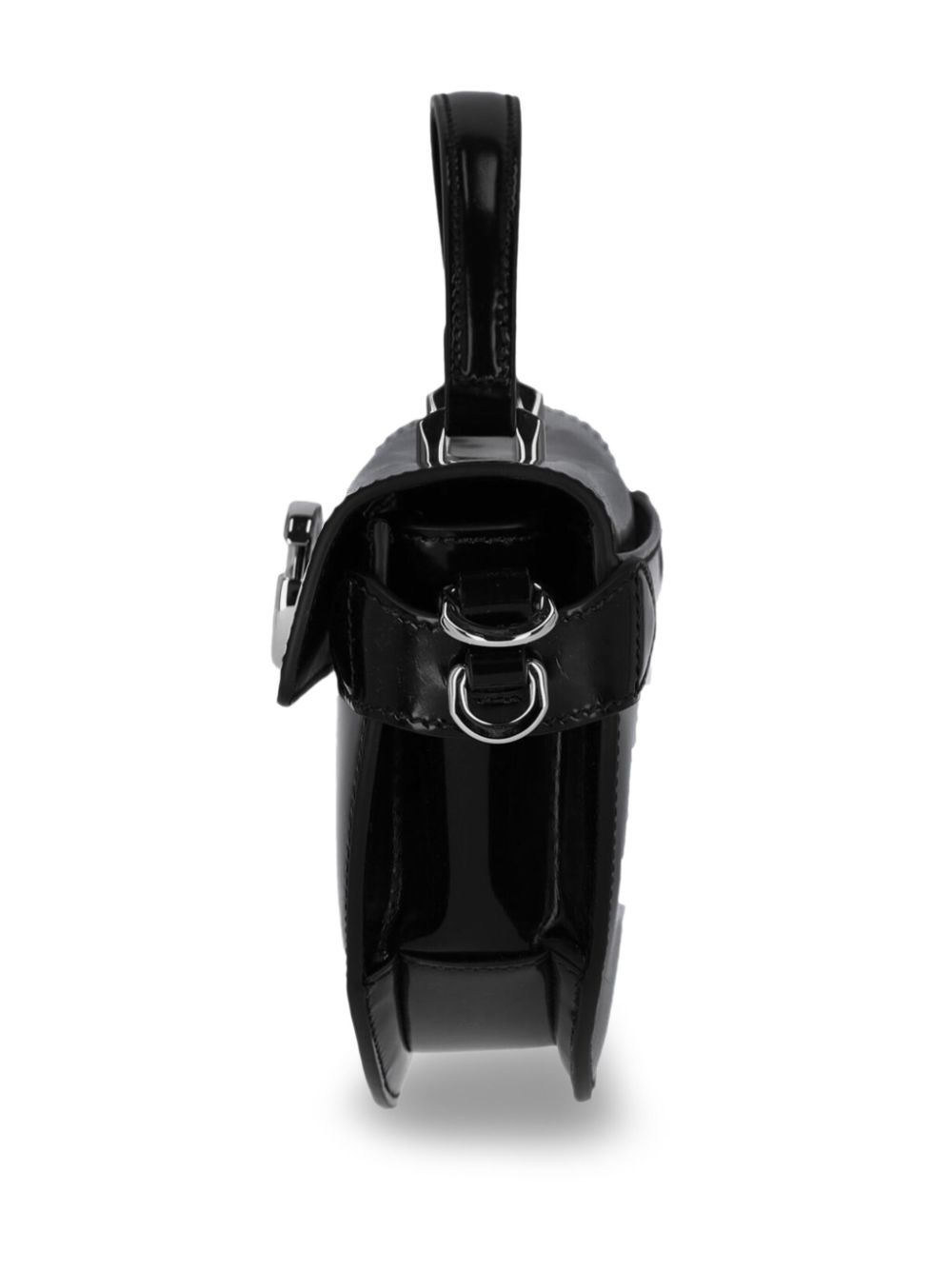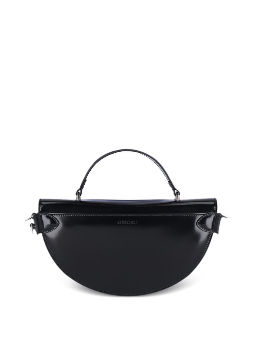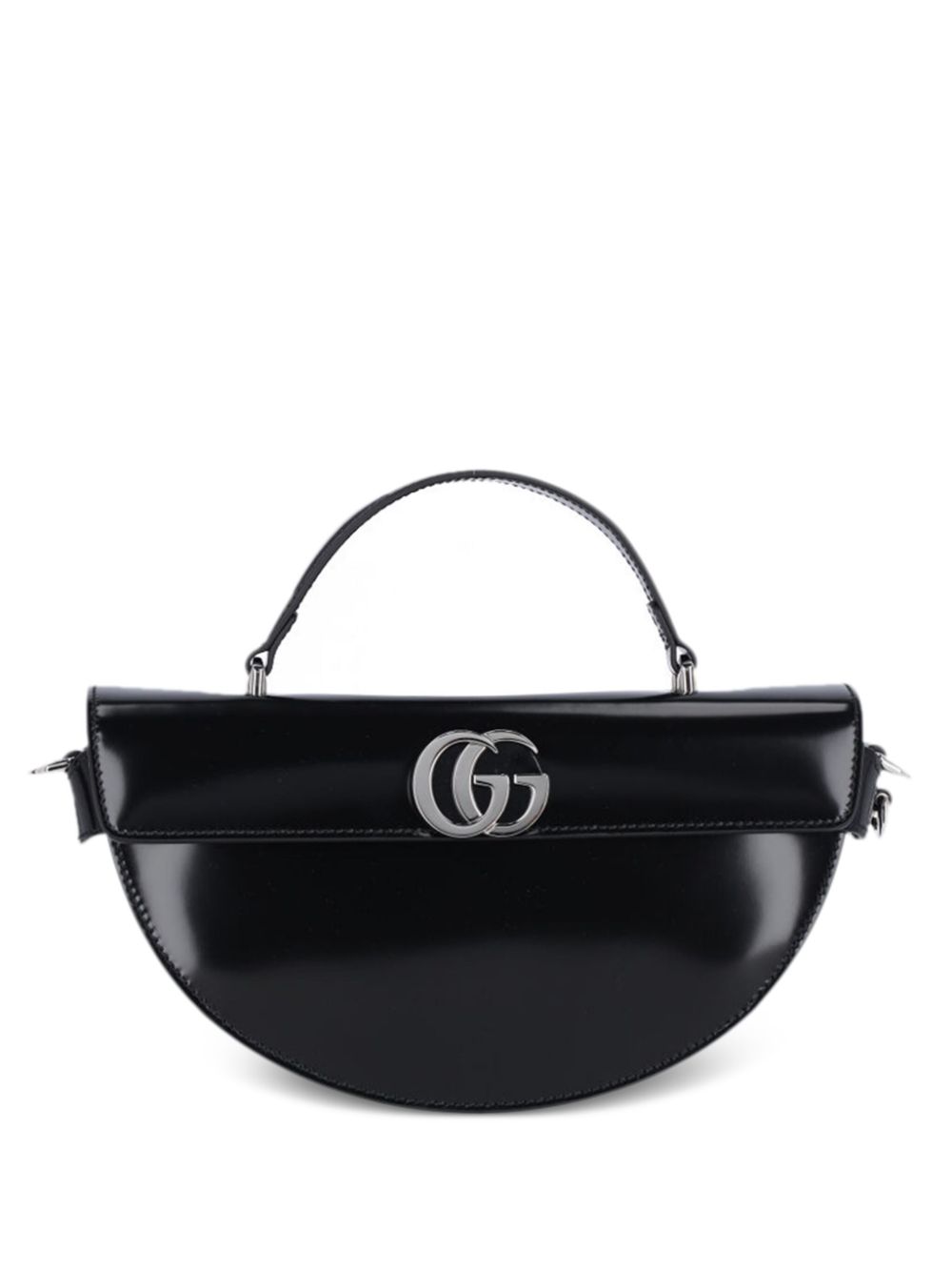 Borsa a mano mezzaluna di GUCCI nera in pelle lucida con hardware argento, manico, tracolla in pelle rimovibile e regolabile e chiusura a girello.