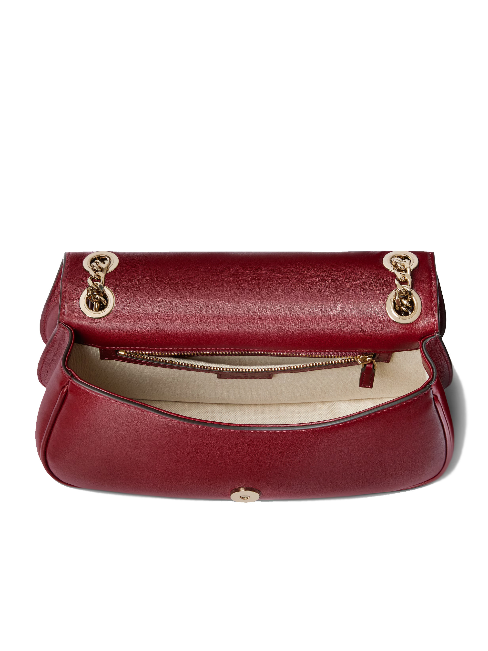 Borsa Blondie media di GUCCI Rosso Ancora in pelle con hardware oro, incrocio GG tondo, tasca interna con zip, tasca estera sul retro aperta, tracolla removibile e regolabile e chiusura magnetica.