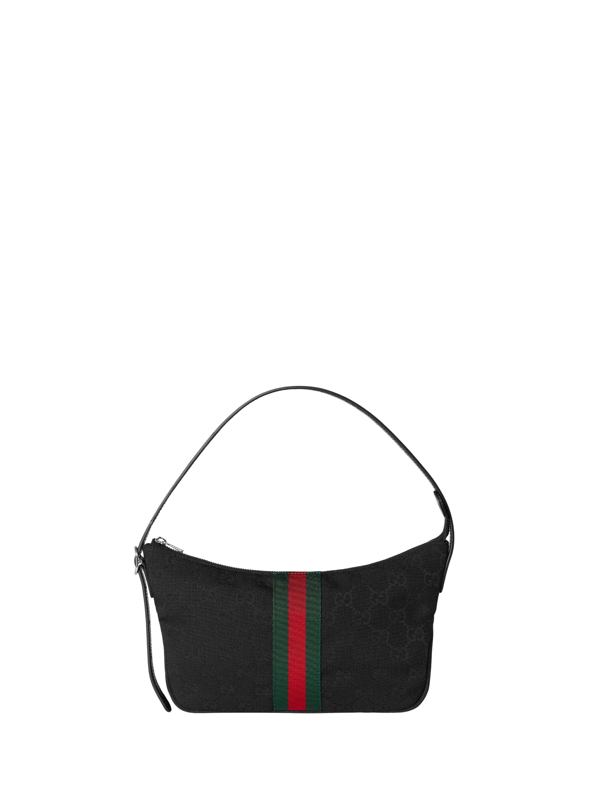Borsa Lunetta piccola di GUCCI nera in tessuto GG, caratterizzata da dettagli in pele, finiture argento, dettaglio Web, manico e tracolla staccabile e regolabile e chiusura con zip. Dimensioni: 22 x 13 x 3 CM.