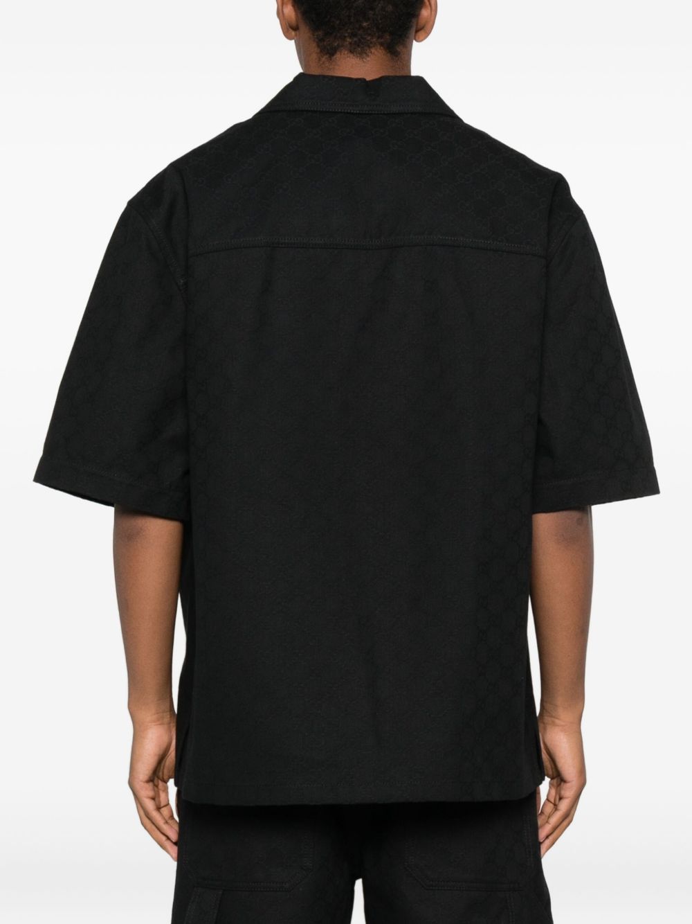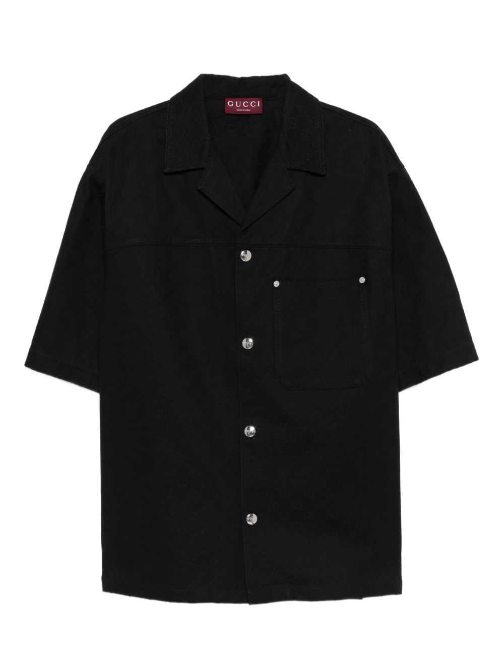 Camicia nera di GUCCI caratterizzata da chiusura frontale con bottoni metallici a contrasto, taschino sinistro, maniche corte e colletto classico.