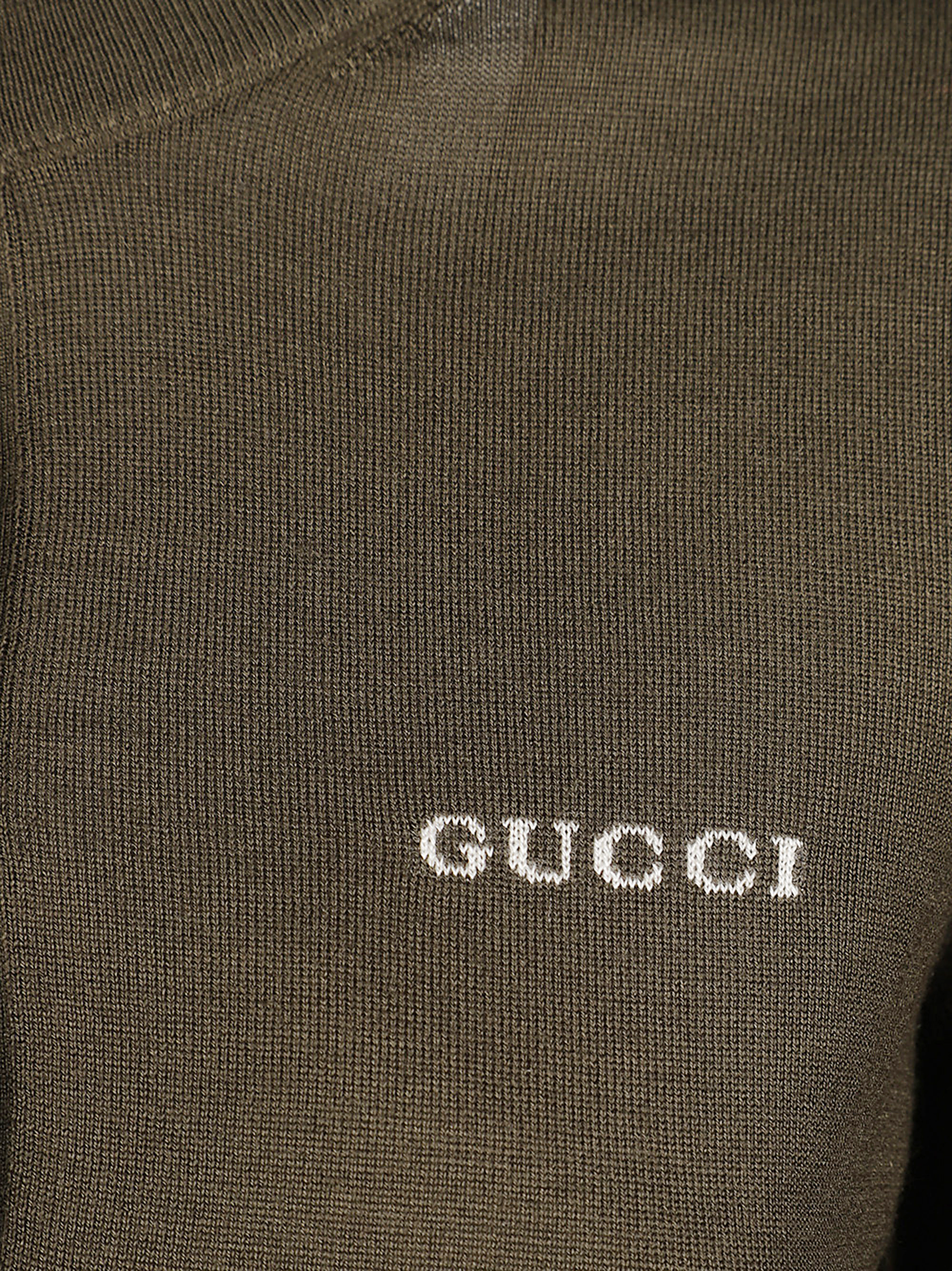 Cardigan di GUCCI verde bosco in seta e cashmere con girocollo, tasche frontali e chiusura con bottoni.