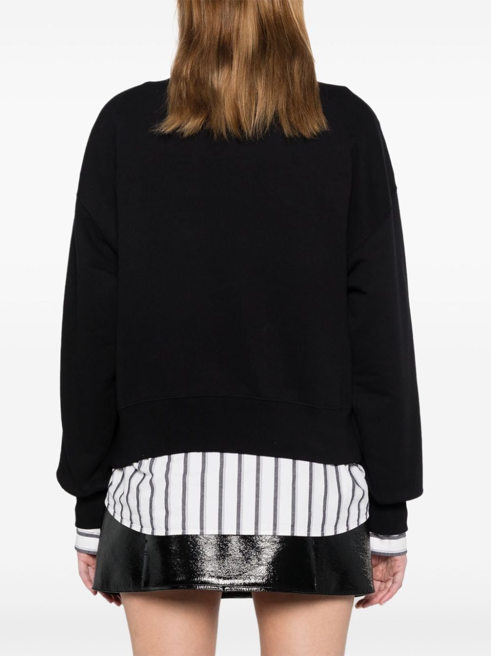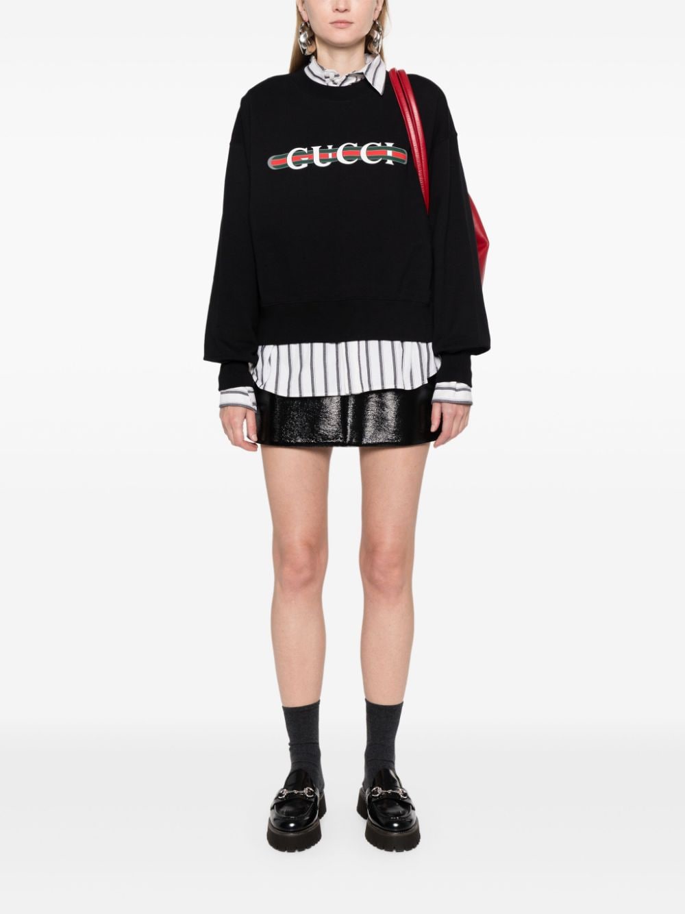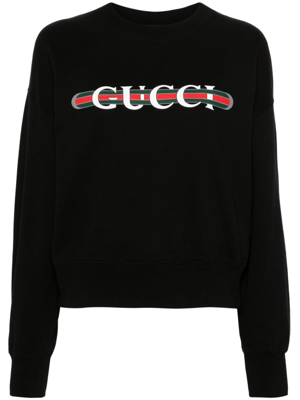 Felpa con decorazione Web di GUCCI nera in cotone con stampa Gucci Web, rifinitura a coste, girocollo e maniche lunghe.