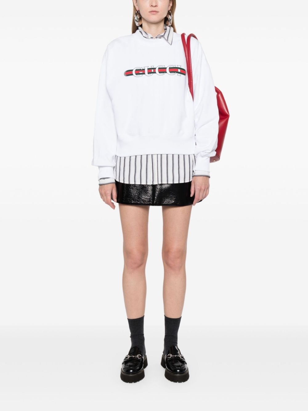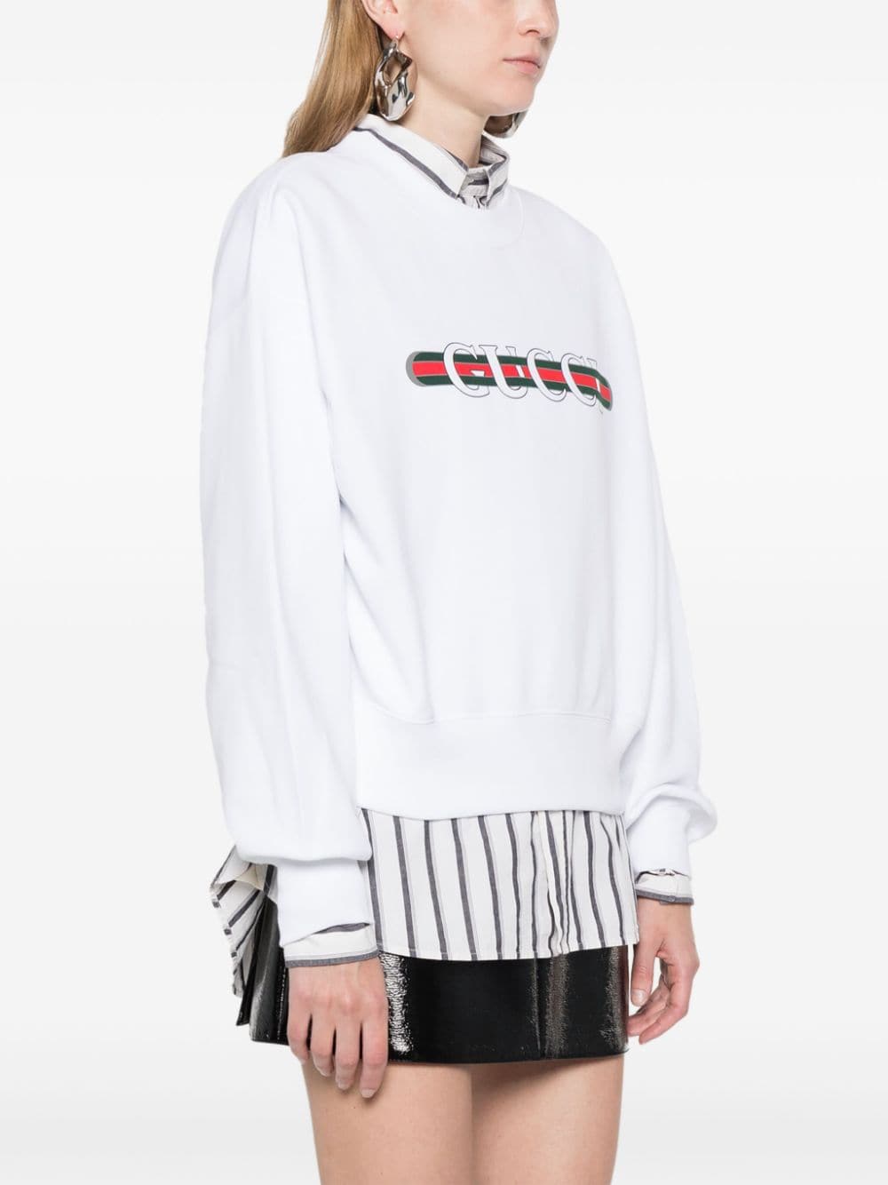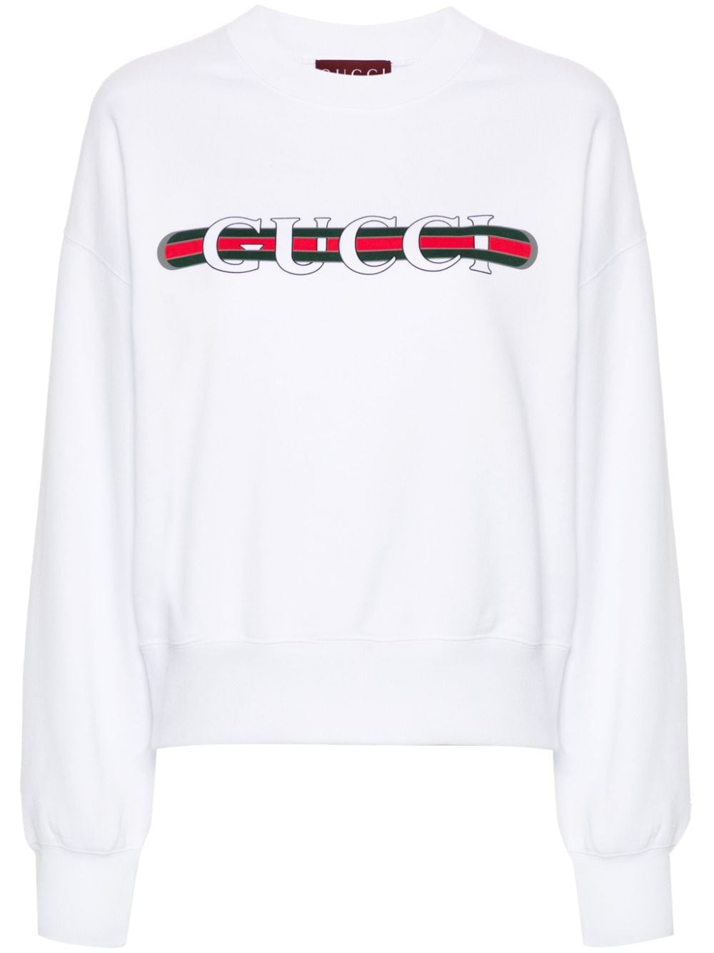 Felpa con stampa di GUCCI bianca in jersey di cotone dal taglio regular, maniche lunghe, girocollo e finiture a coste.