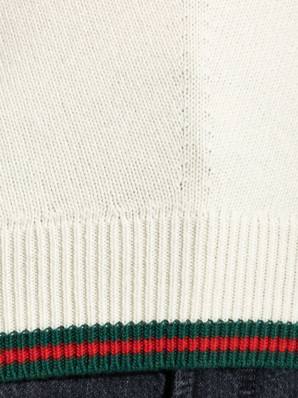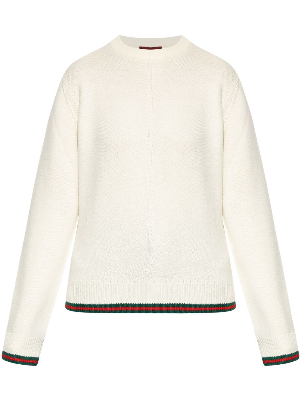 Maglia con Web di GUCCI color avorio in lana e cashmere, girocollo con spalla abbassata e rifinitura Web.