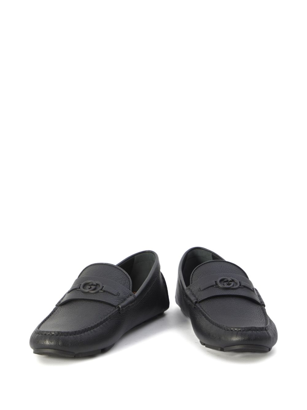 Mocassino Driver di GUCCI nero in pelle martellata con suola in gomma e logo Incrocio GG tono su tono.