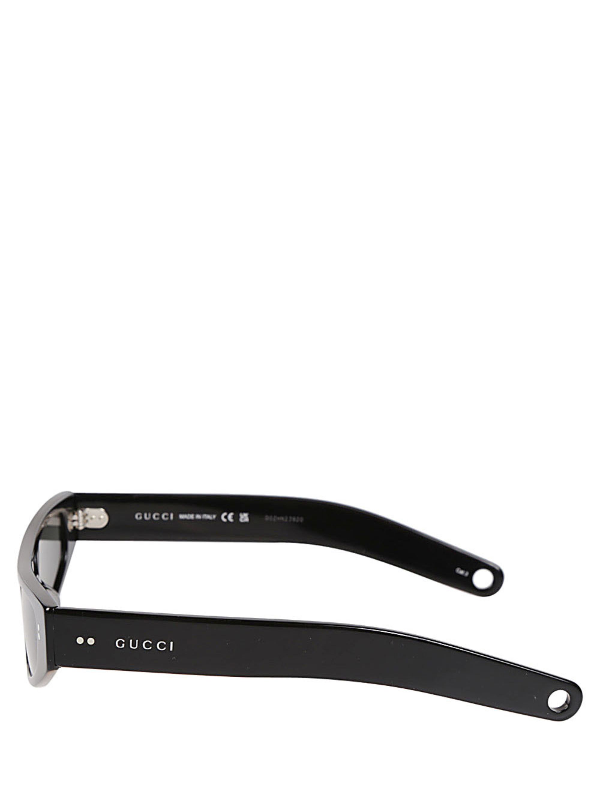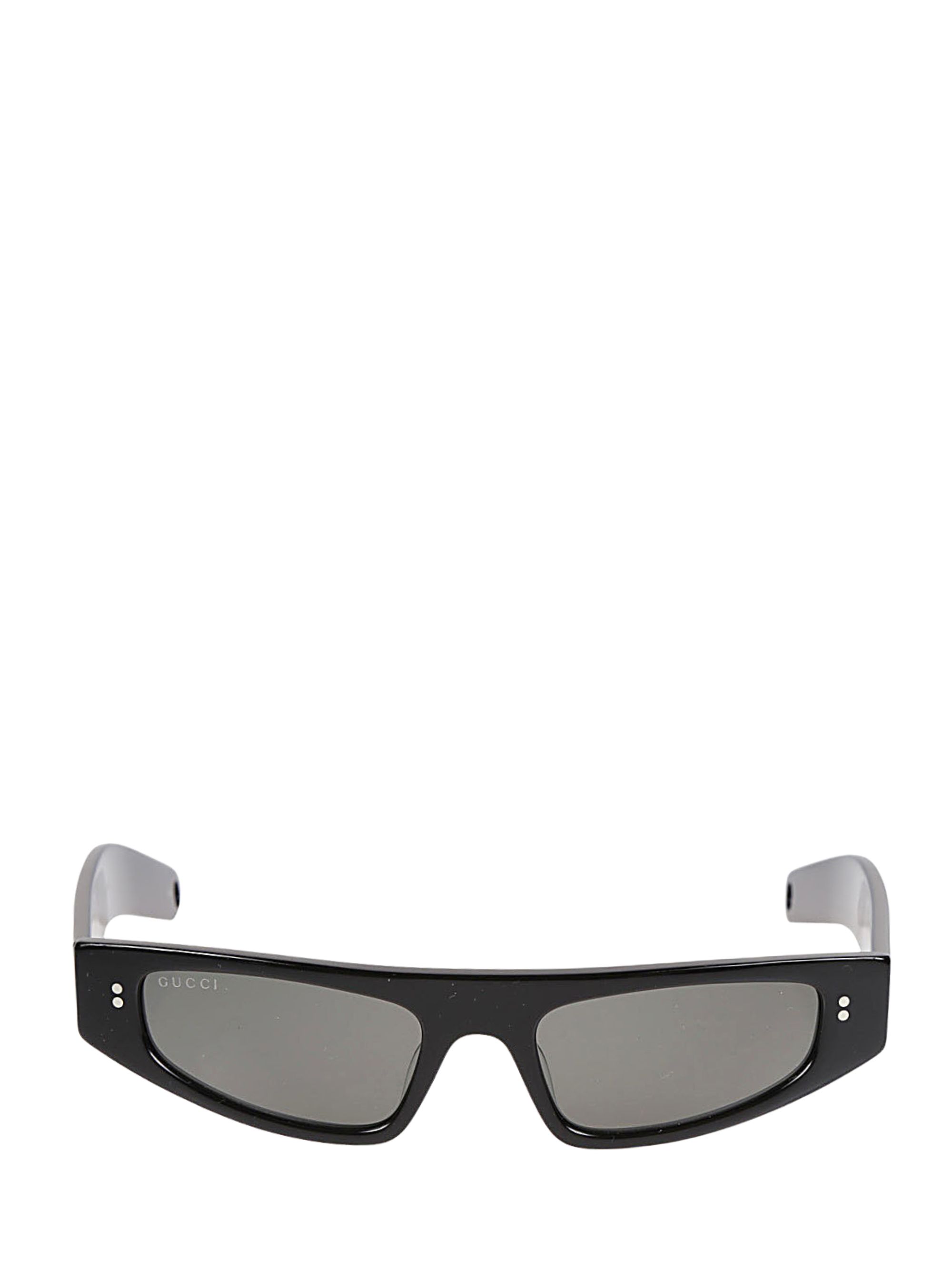 Occhiali da sole di GUCCI caratterizzati da montatura in acetato nero lucido, lenti grigie con logo, dotati di astuccio in velluto e panno in microfibra.