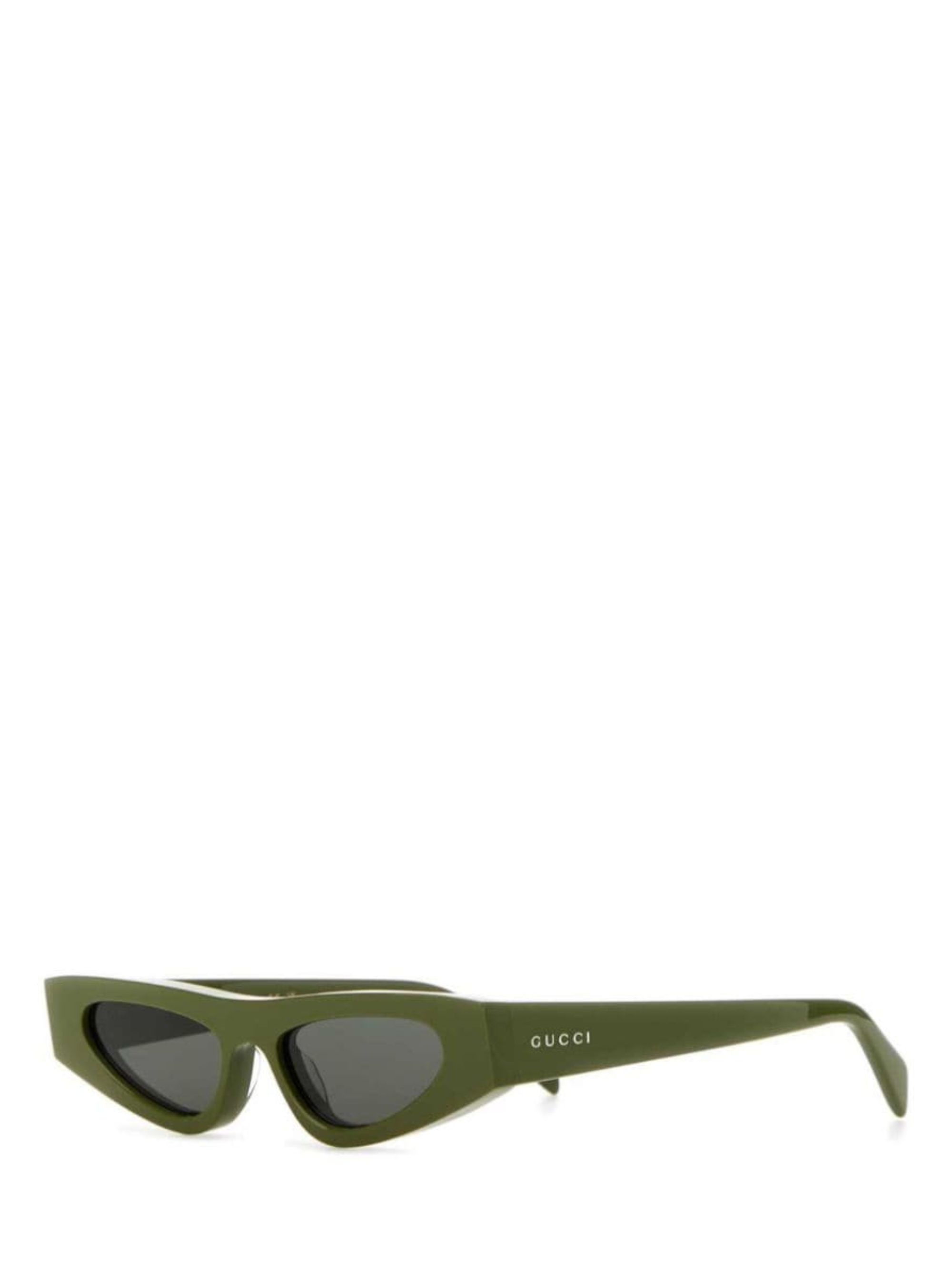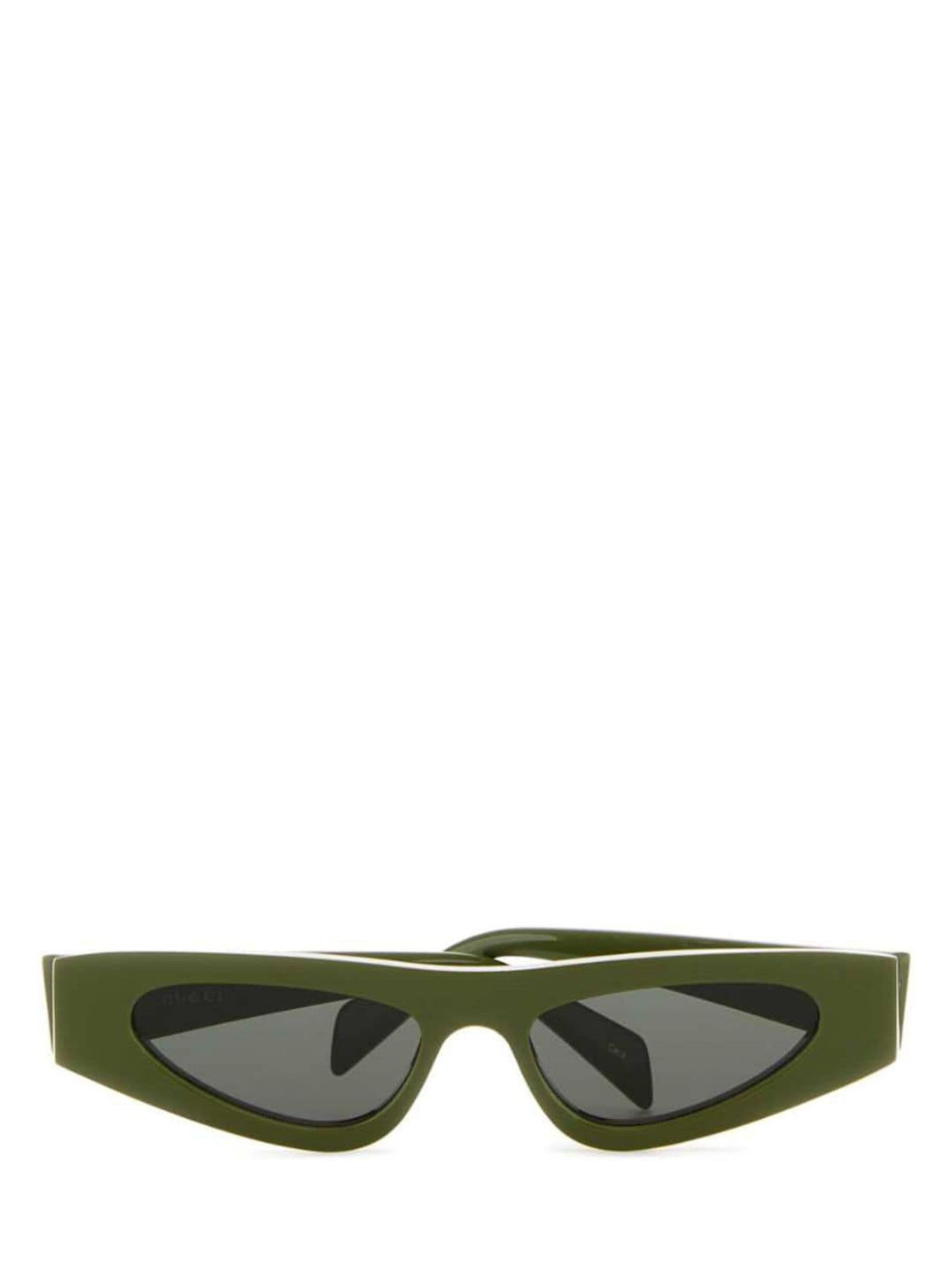 Occhiali da sole Cat-eye di GUCCI verdi oliva in acetato lucido con logo, lenti grigie con protezione UVA/UVB.