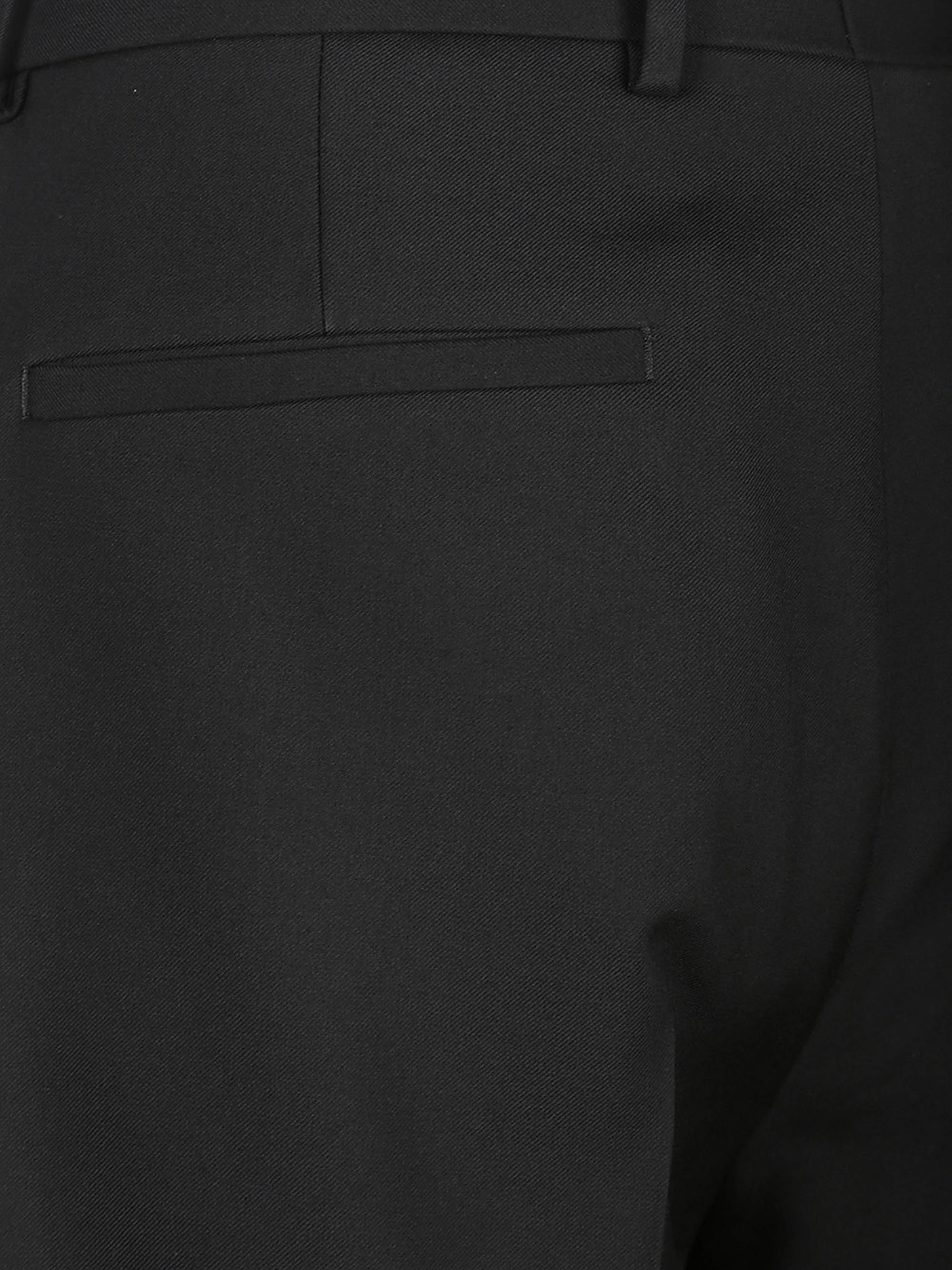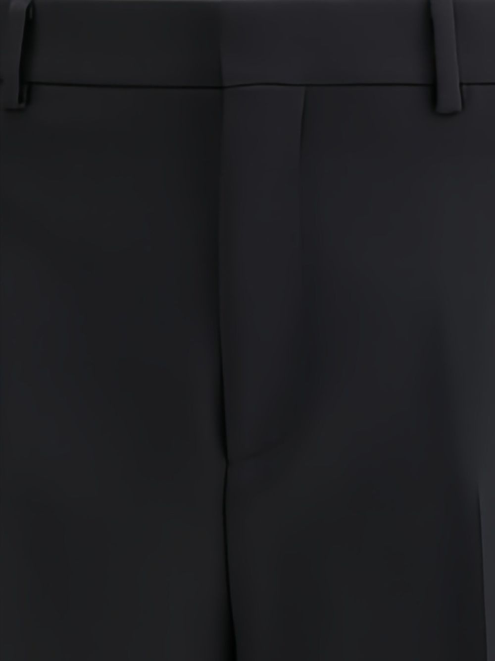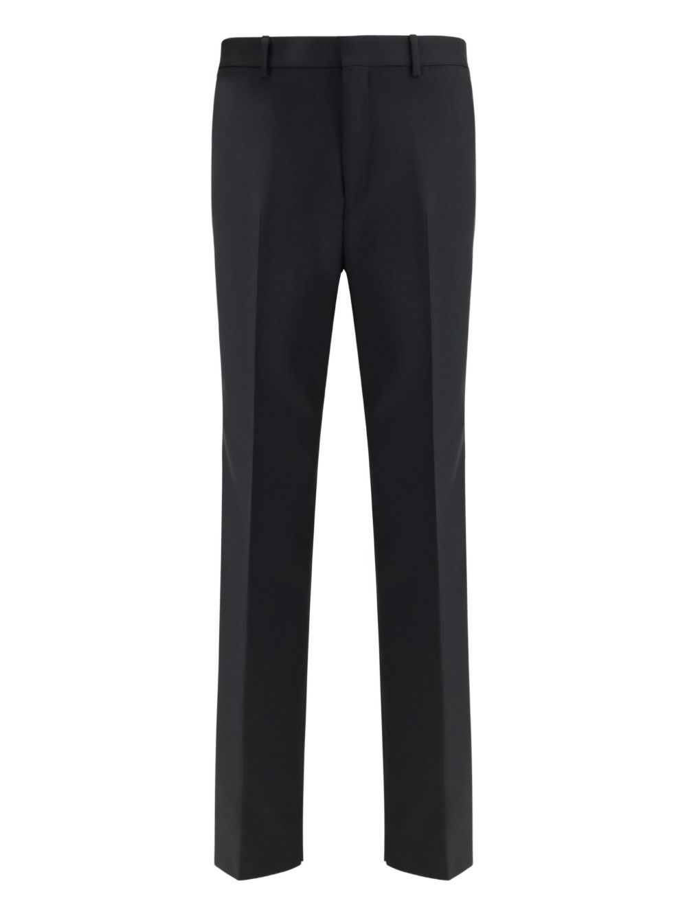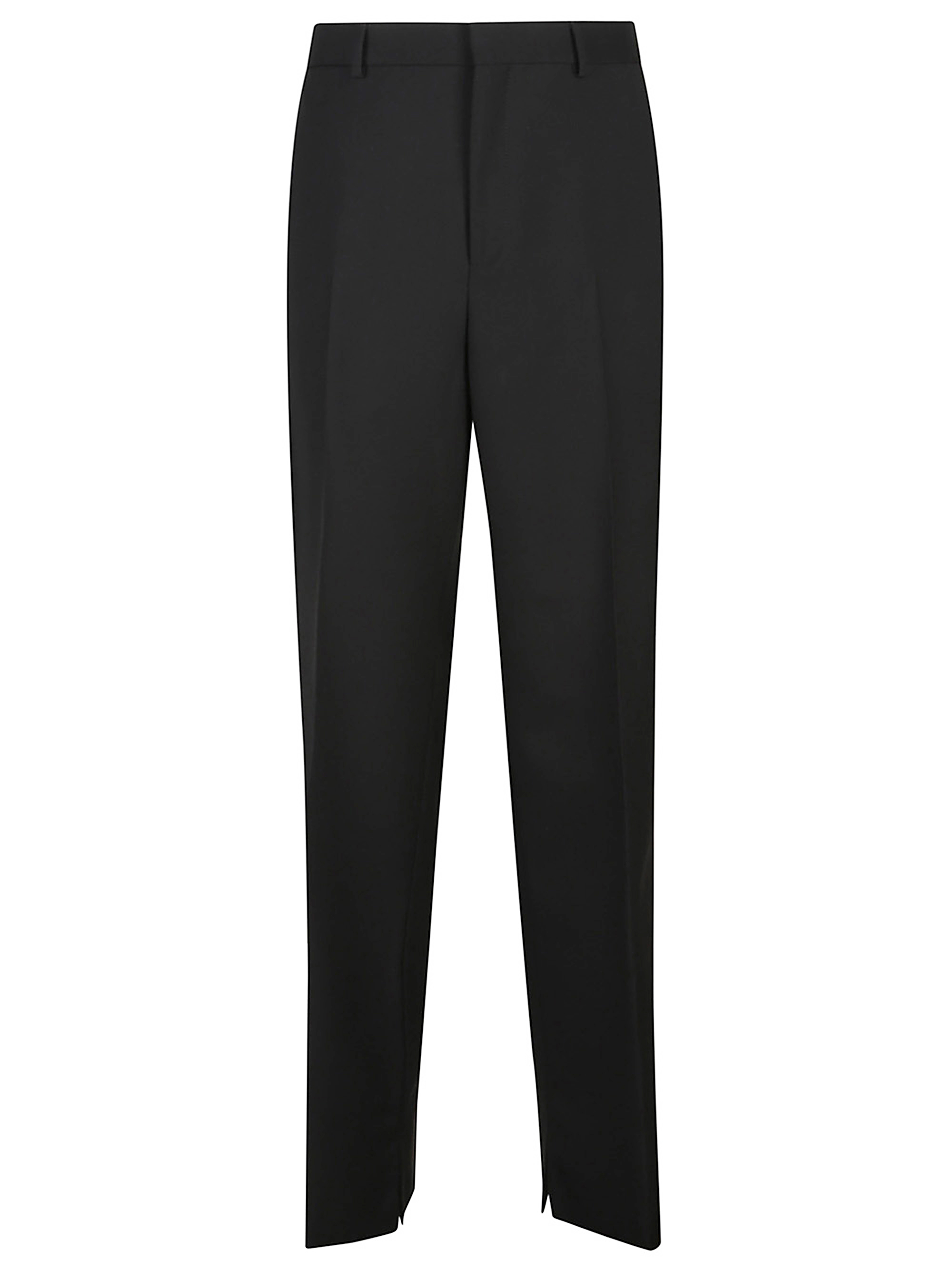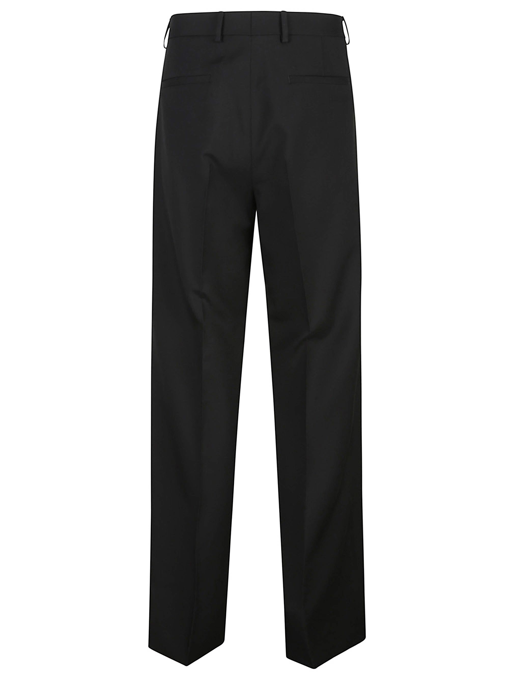 Pantalone di GUCCI nero in gabardina di lana con ricamo Doppia G, orlo con spacco, passanti per la cintura, tasche e chiusura con bottone e cerniera.