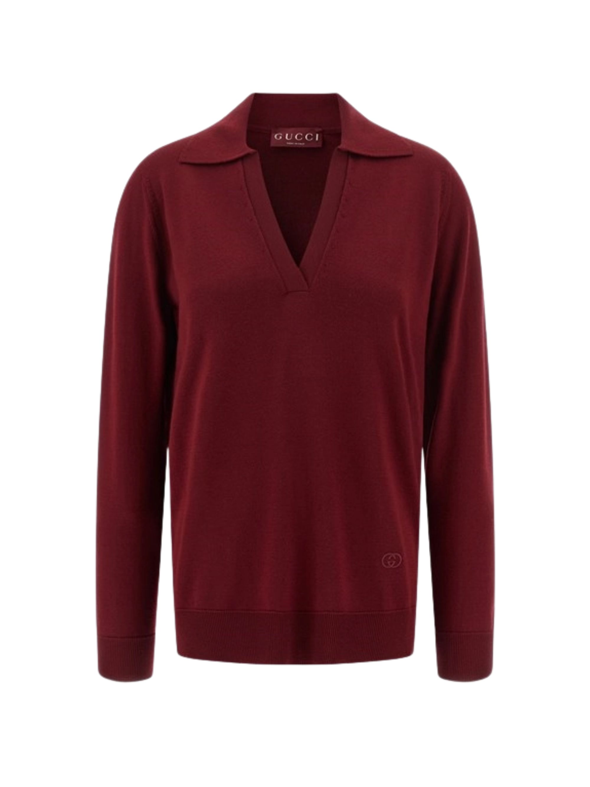 Polo in lana rossa di GUCCI caratterizzata da modello oversize, maniche lunghe e impreziosita da ricamo a incrocio GG.