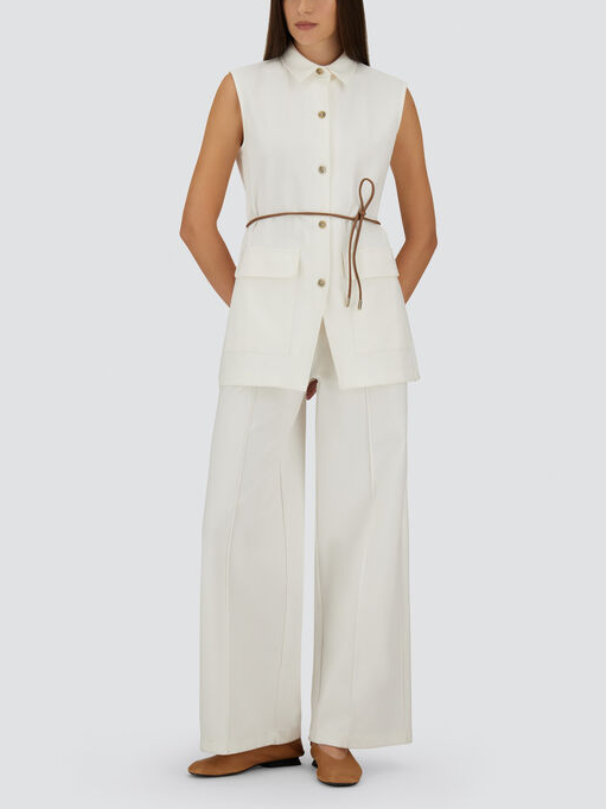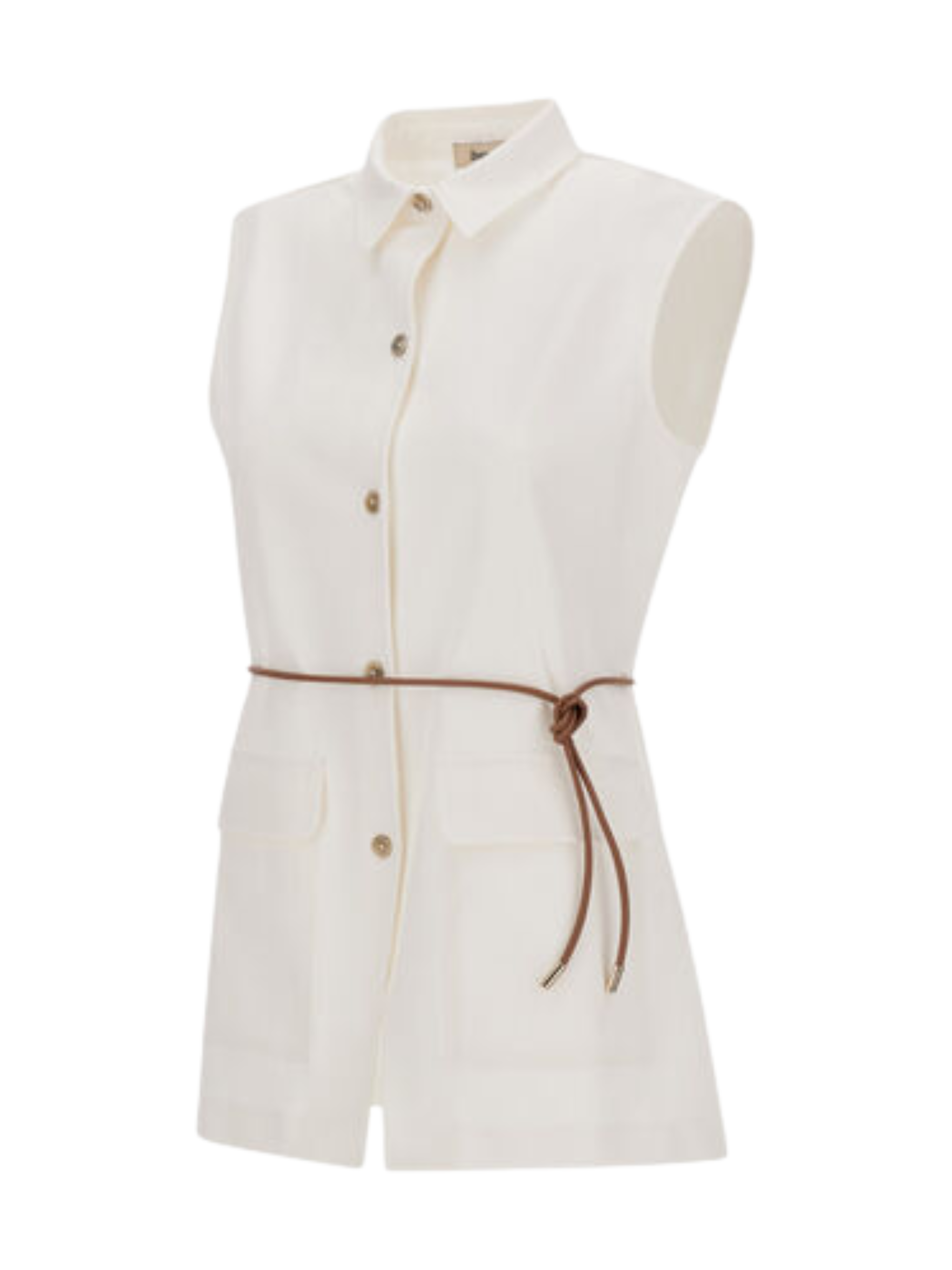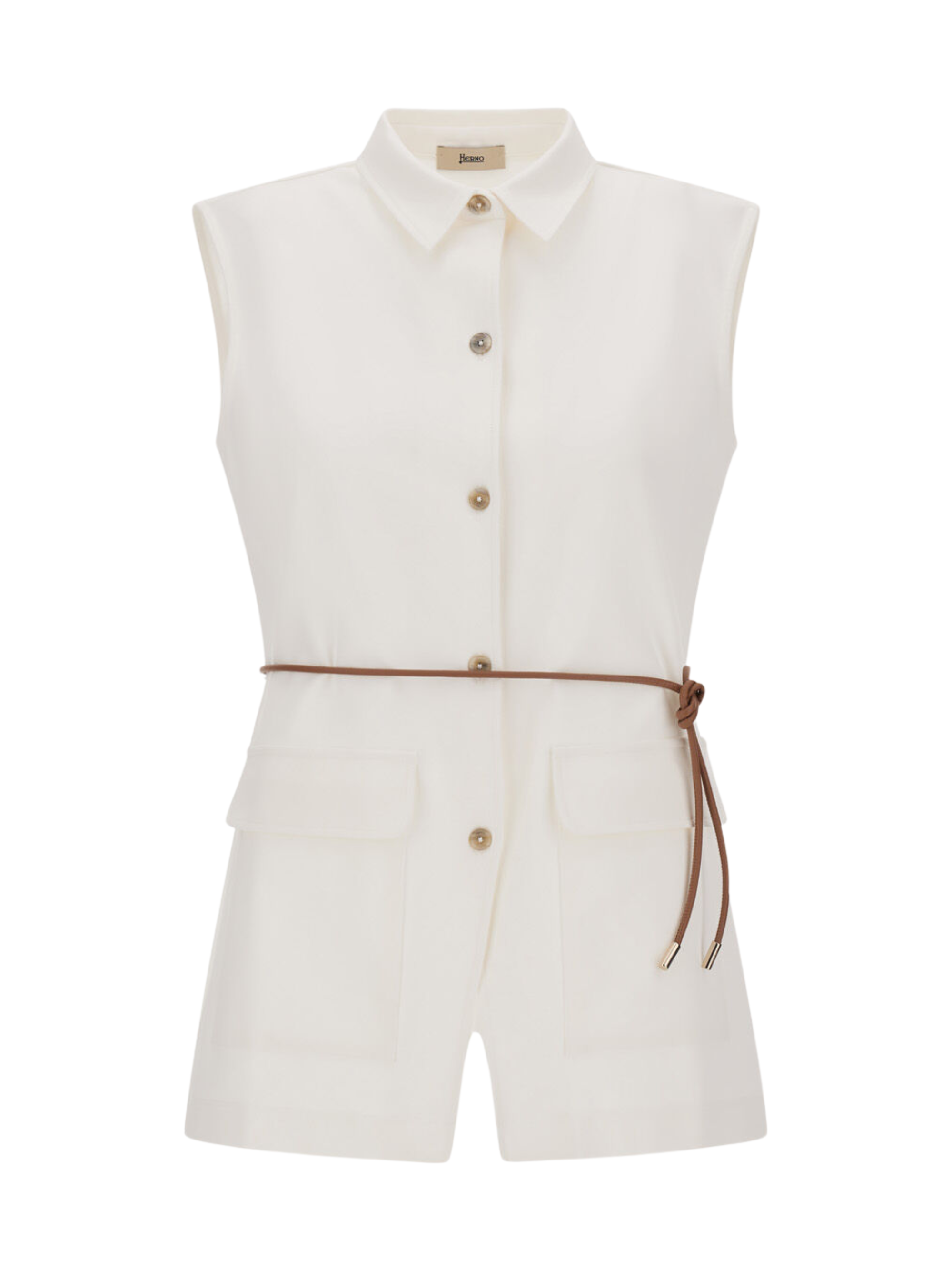 Gilet in dense rome di HERNO bianco in jersey, caratterizzato da cintura coordinata, collo a camicia, tasche con patta, chiusura con bottoni e vestibilità regolare.