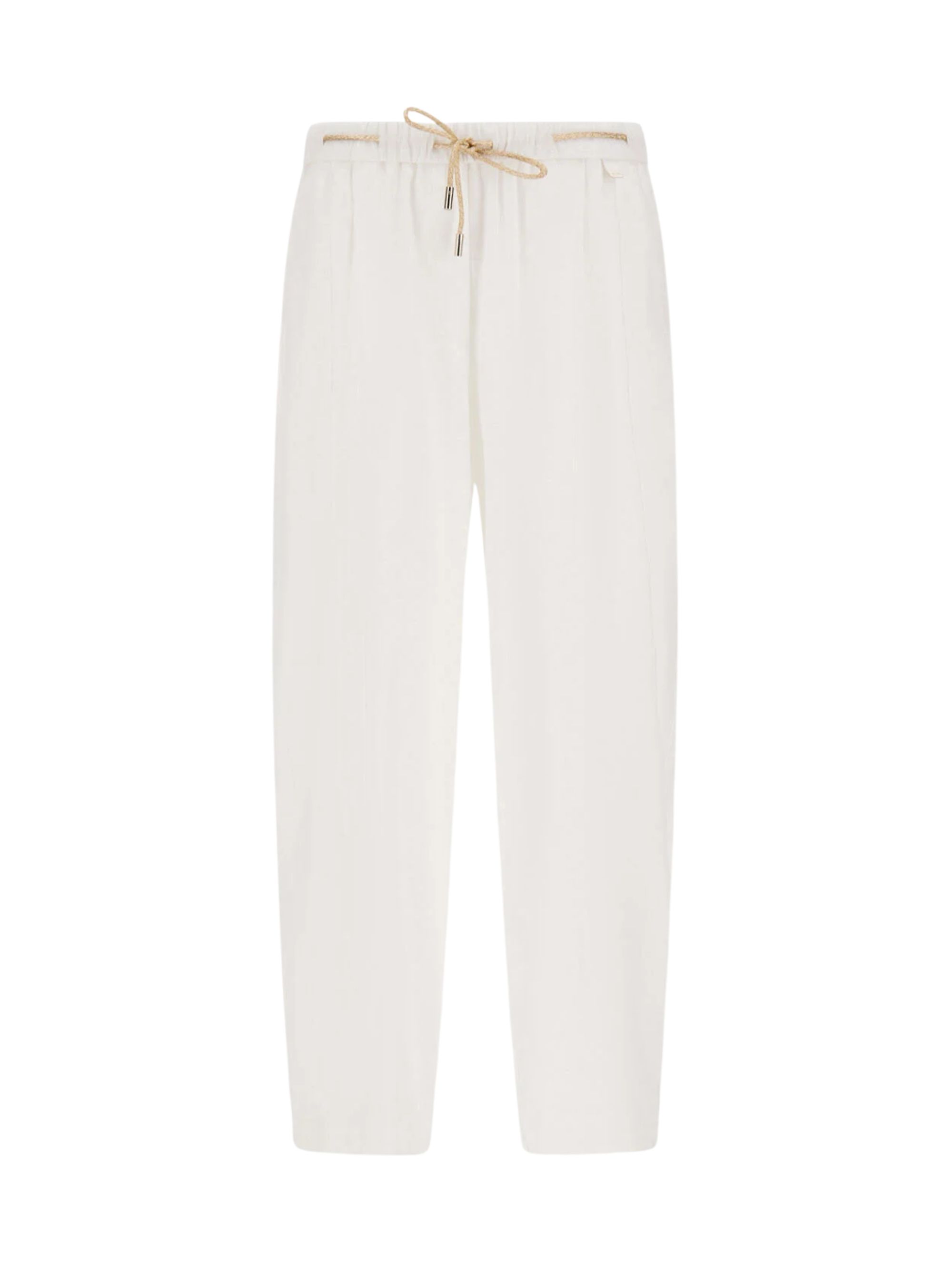 Pantalone con cintura di HERNO bianco in lino e viscosa, caratterizzato da vita con cintura e gampa ampia.