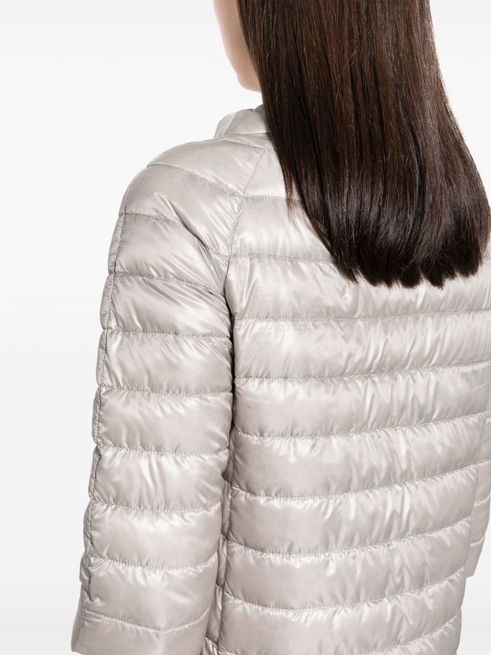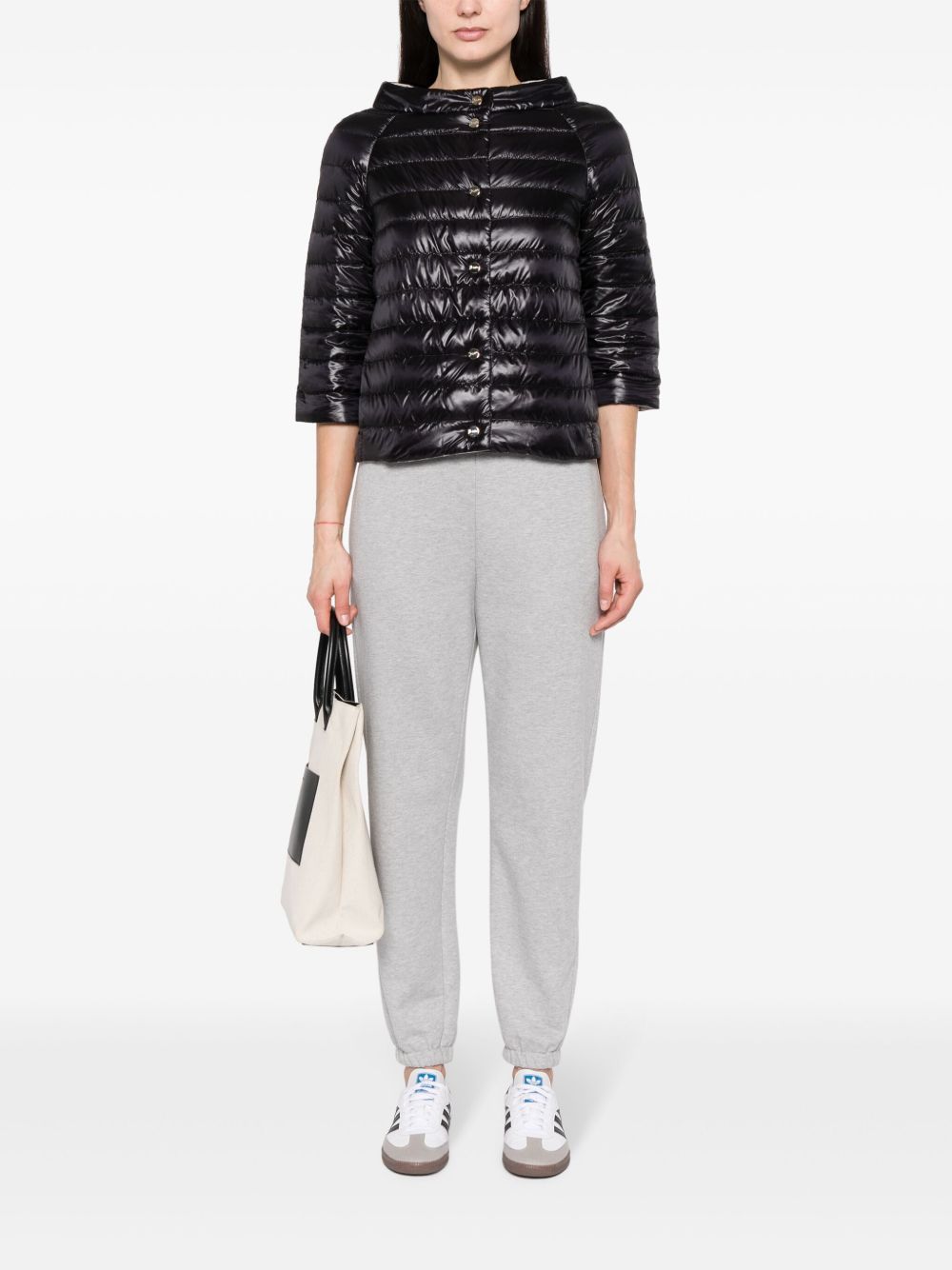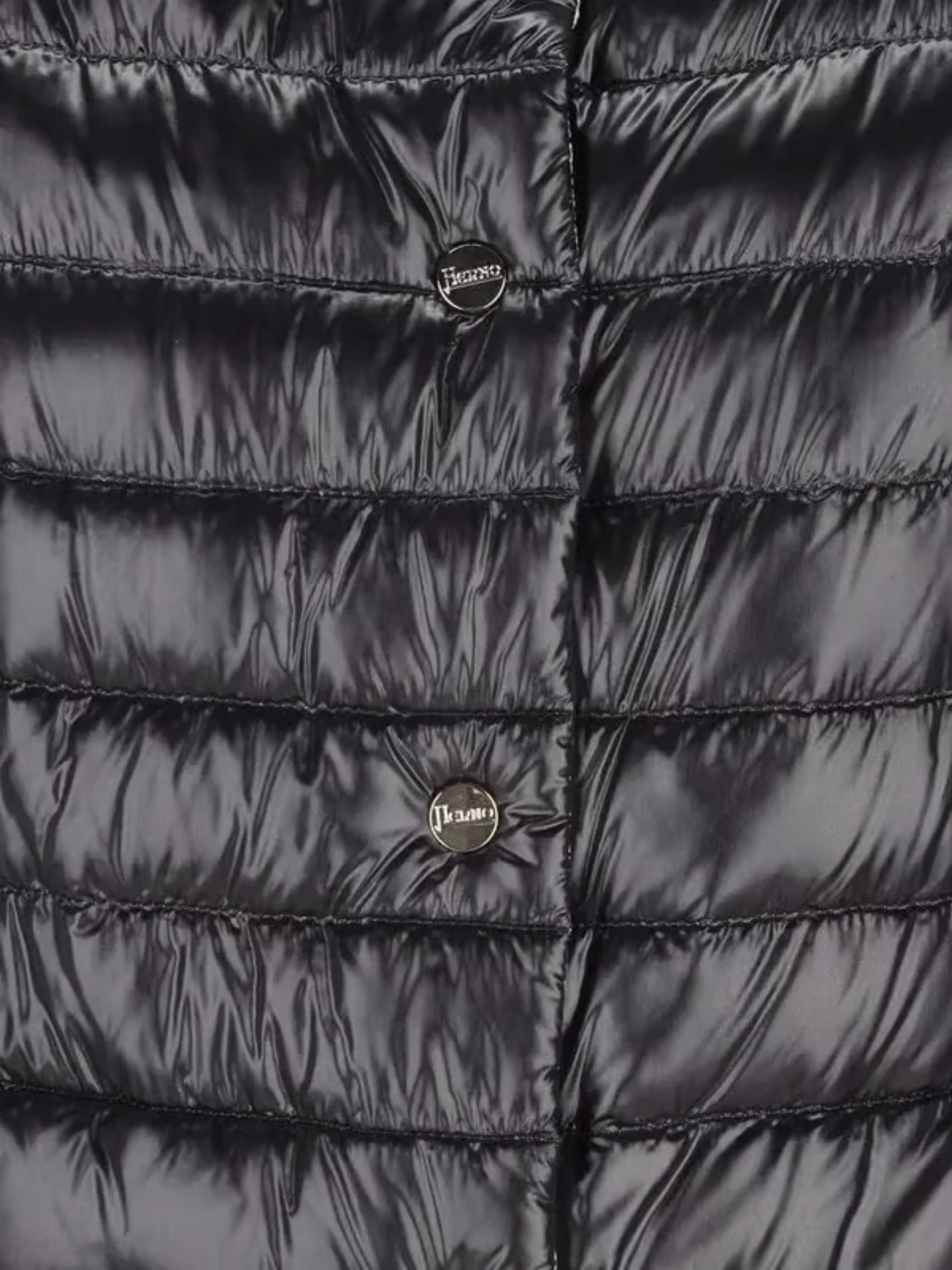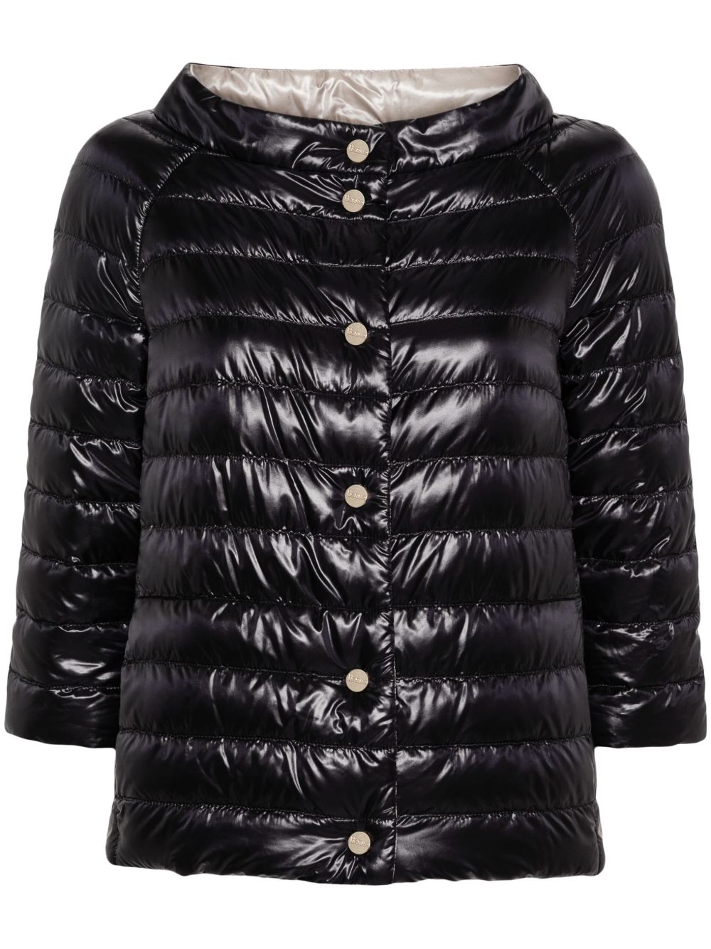Piumino trapuntato di HERNO nero con imbottitura in piume, caratterizzato da chiusura frontale con bottoni, maniche tre quarti e collo ampio.