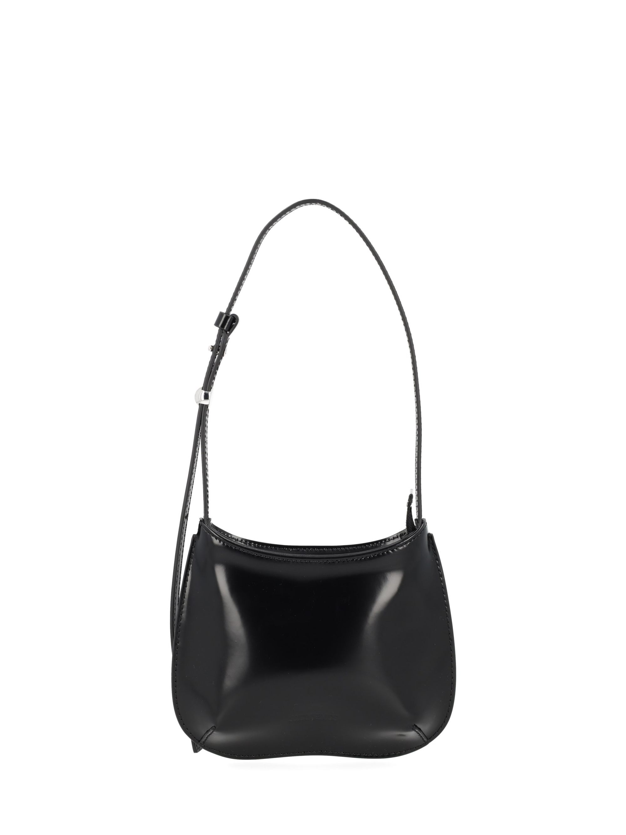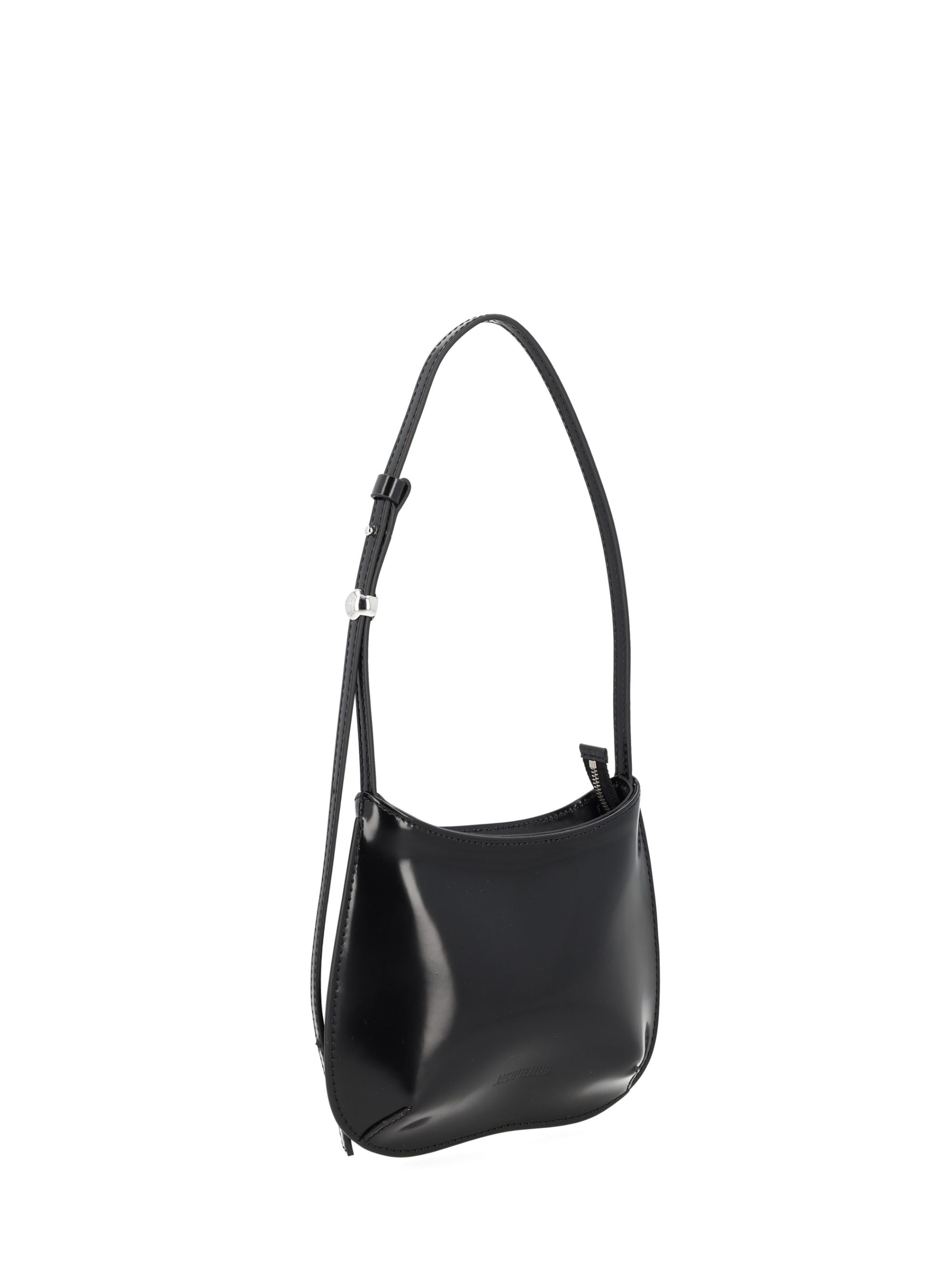 Borsa Le Petit Bisou di JACQUEMUS nera in pelle, caratterizzata da tracolla regolabile, chiusura con zip e logo inciso sul davanti. Dimensioni: 23 x 11 x 2 CM.