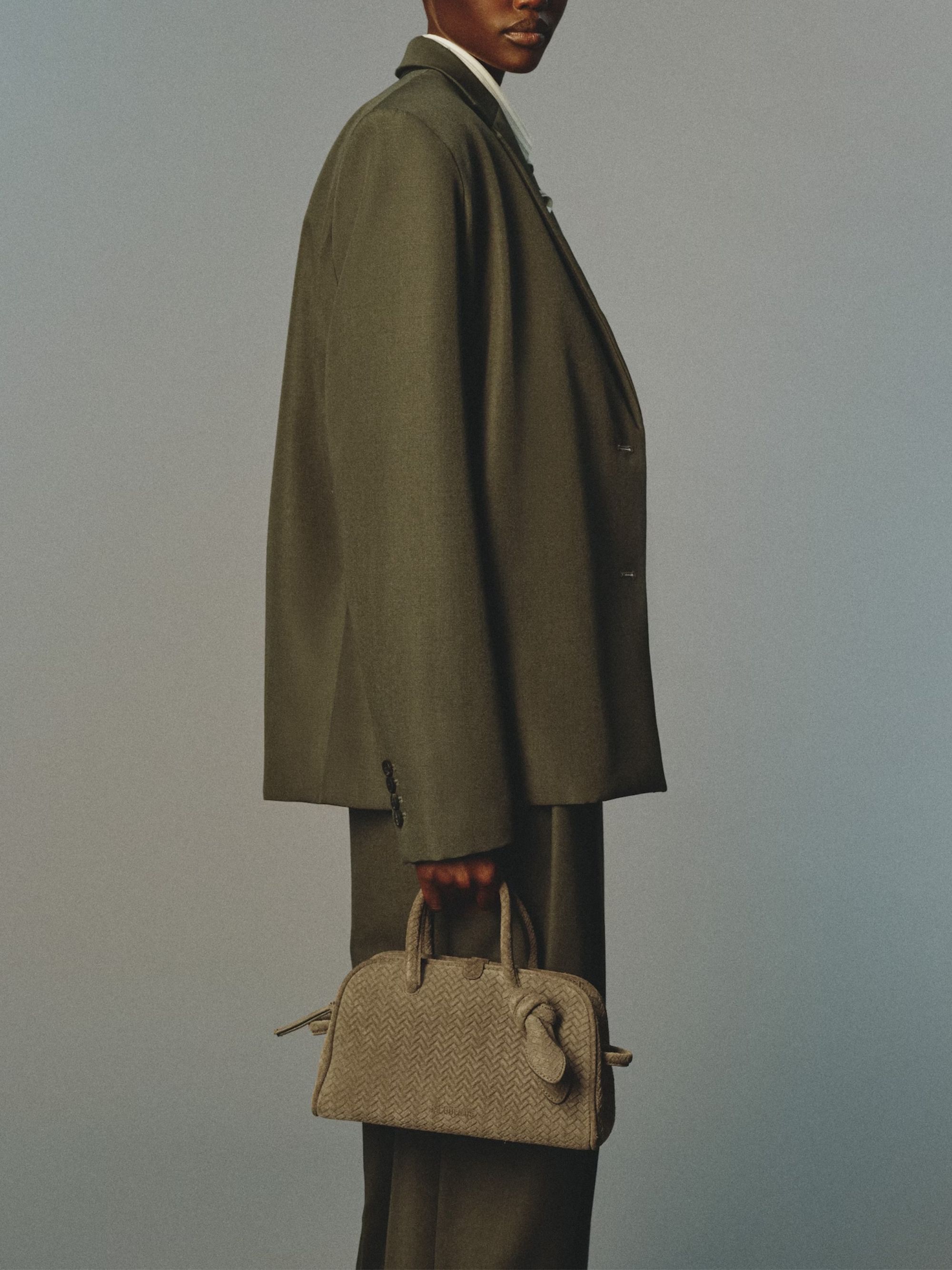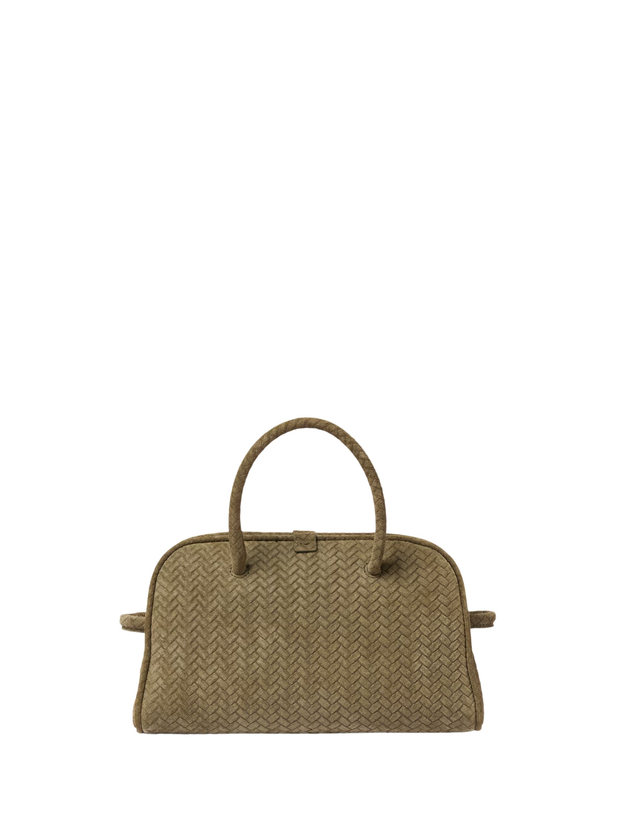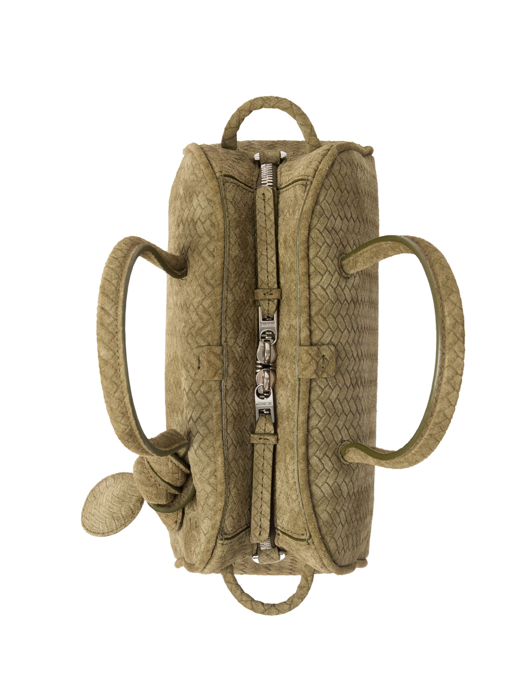 Borsa Turismo di JACQUEMUS kaki in pelle scamosciata, caratterizzata da motivo chevro, tracolla rimovibile e regolabile, dettaglio con fiocco legato, chiusura con moschettone inciso e logo. Dimensioni: 26 x 16 x 11 CM.