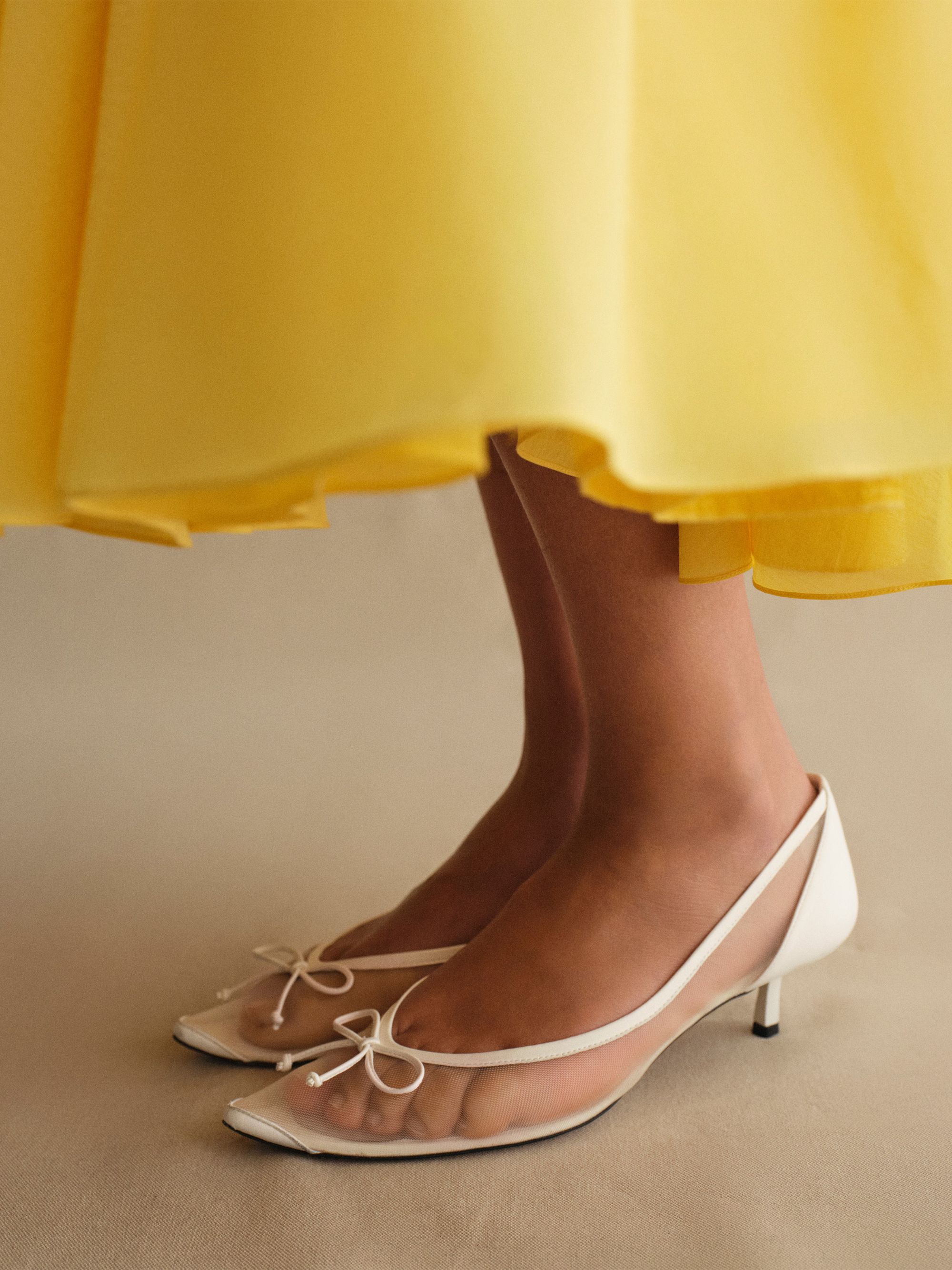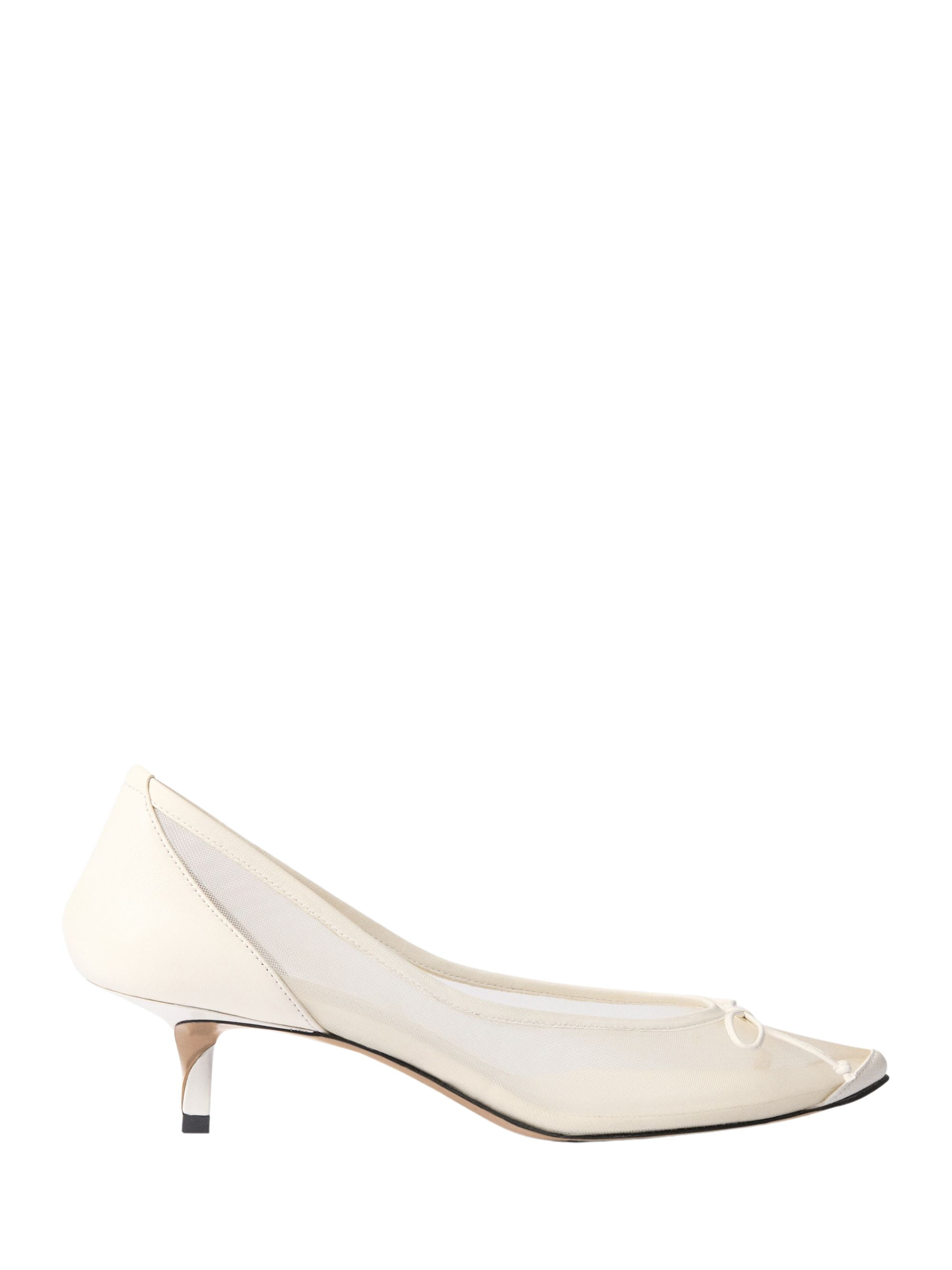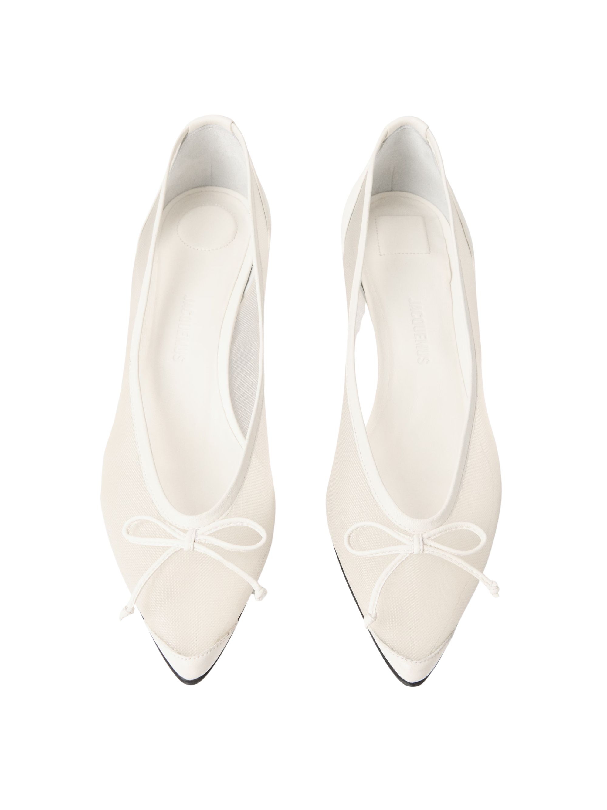 Décolleté Tourni di JACQUEMUS bianca in rete trasparente, caratterizzato da design a punta, piccolo fiocco fisso, bordi cuciti, talloniere Rond-Carré e soletta e fodera in pelle.