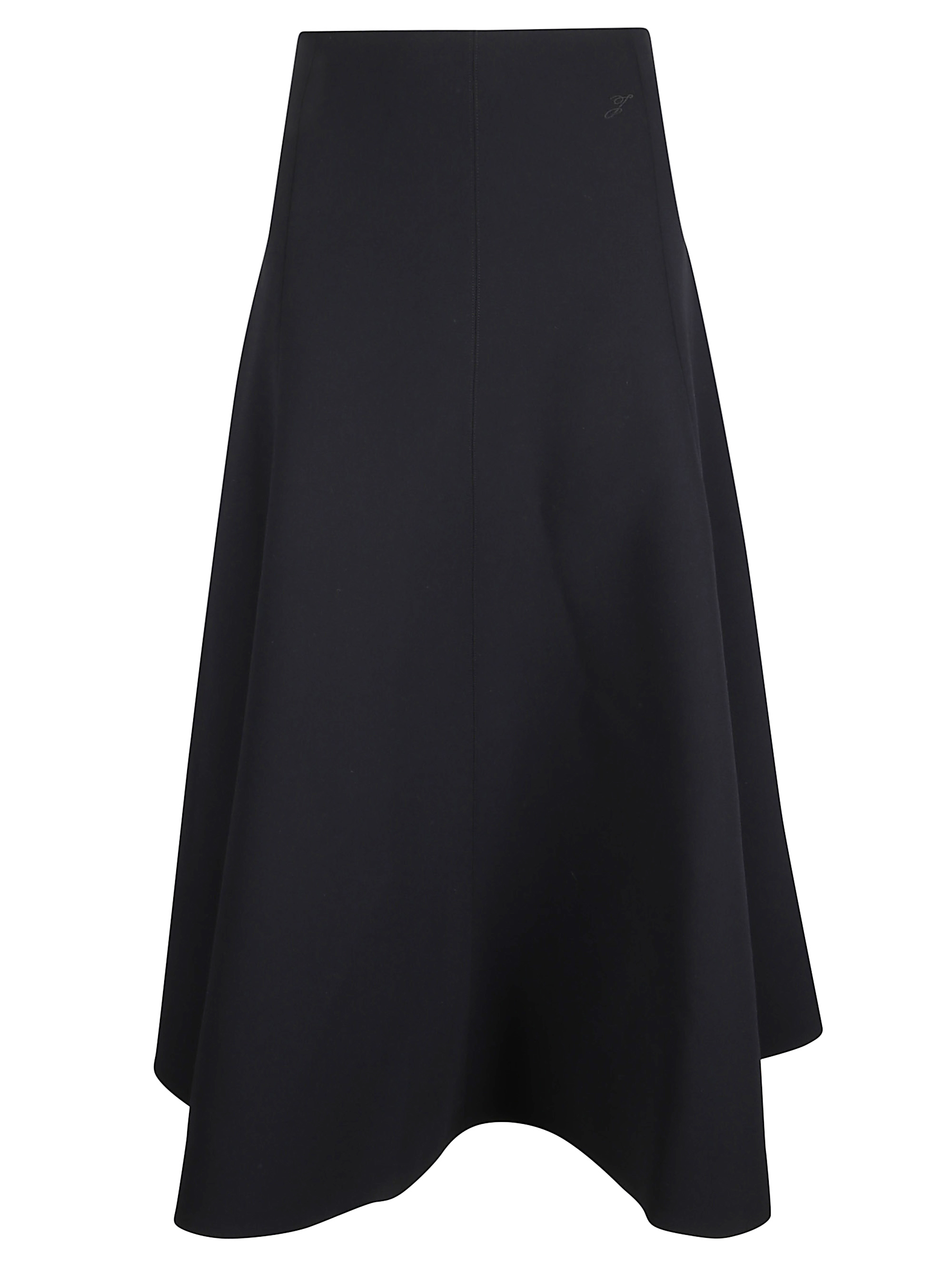 Gonna Triangle di JACQUEMUS nera in misto viscosa, caratterizzata da J ricamata sul davant, godet, zip invisibile sul retro, orlo svasato alla caviglia e cuciture invisibili sull'orlo.