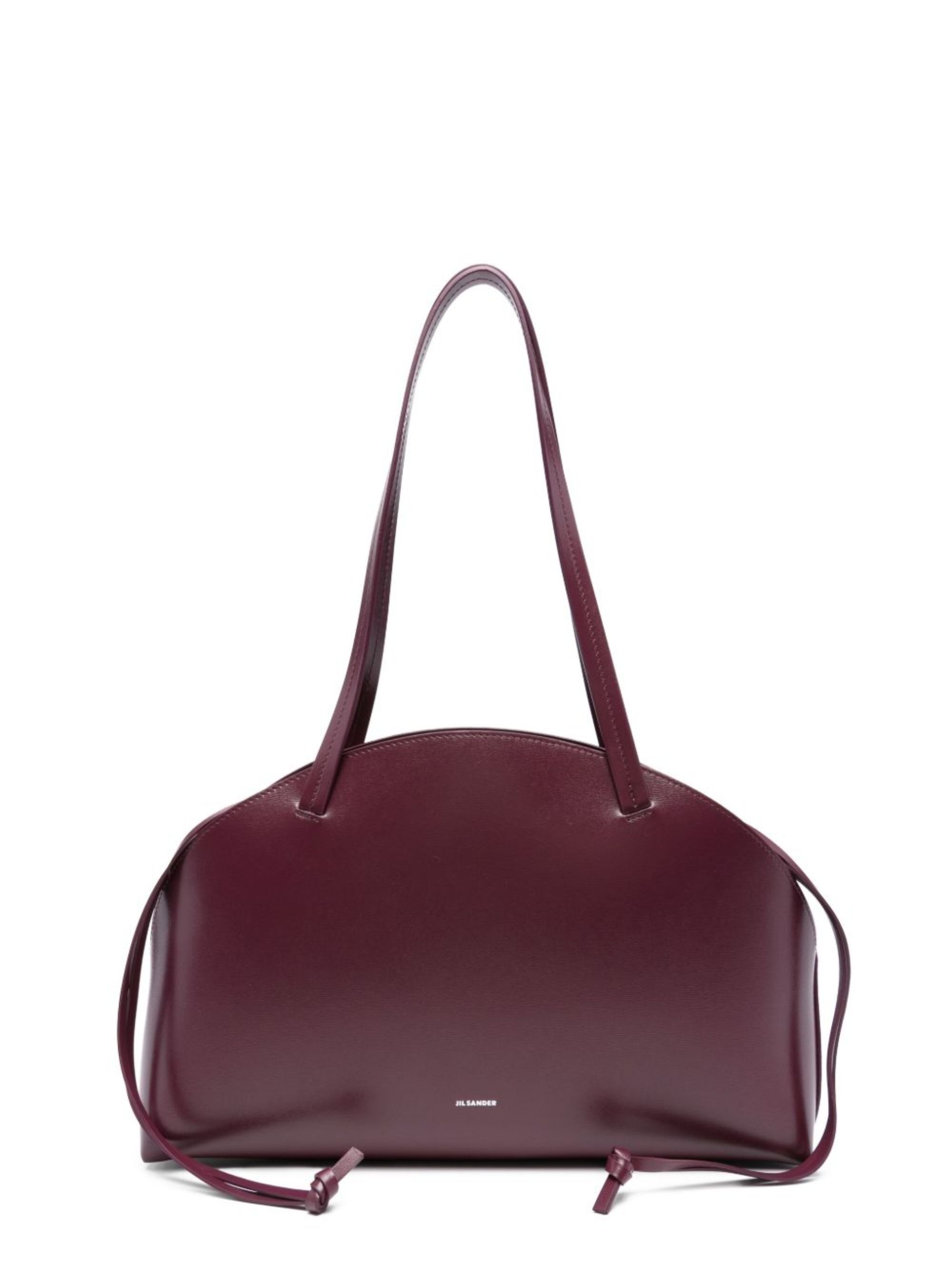 Borsa a tracolla media Curve di JIL SANDER bordeaux in pelle con manici superiori e chiusura con coulisse laterale.