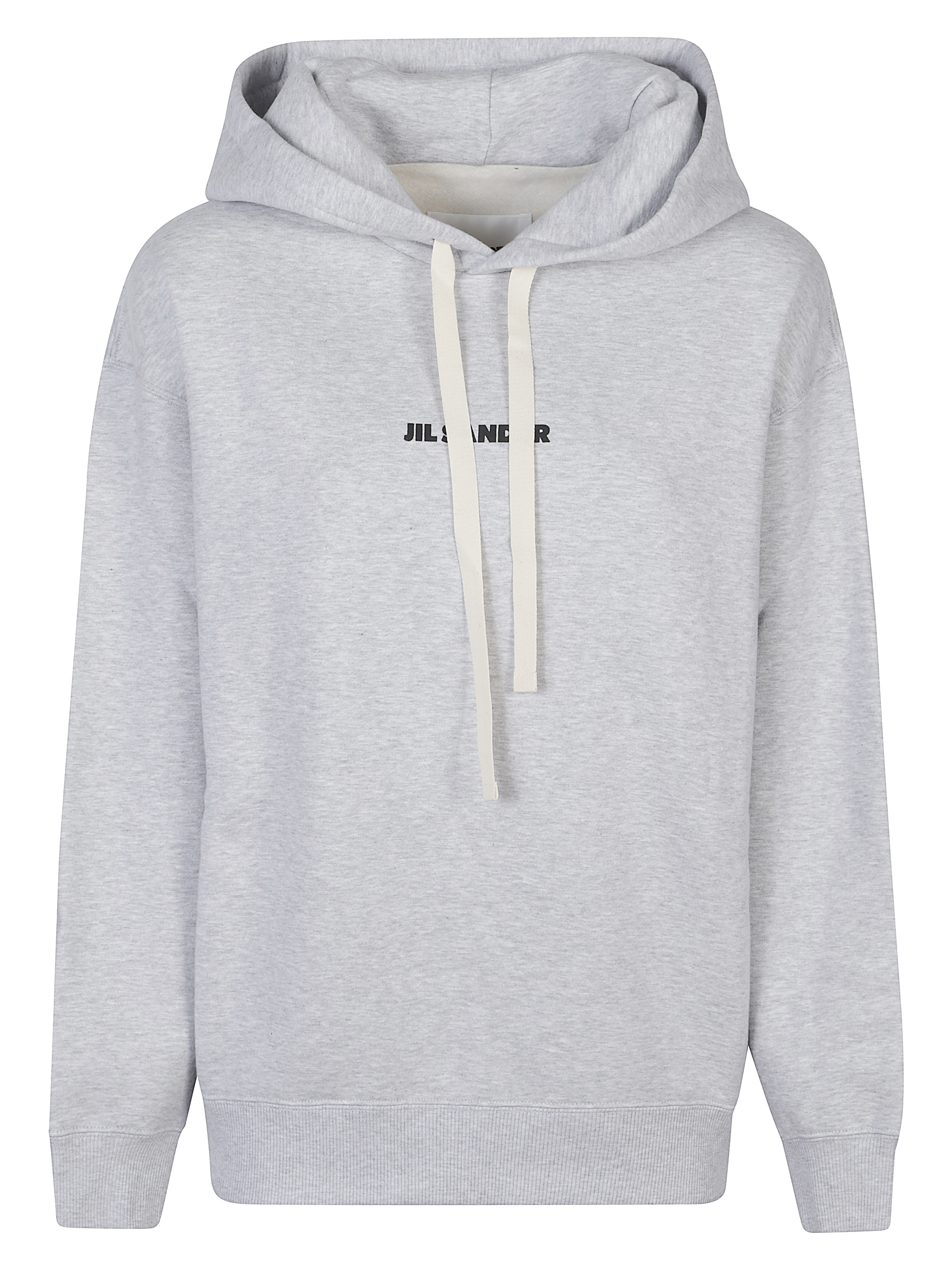 Felpa con logo di JIL SANDER grigia in cotone, caratterizzata da maniche lunghe, spalle scese, finiture a coste e cappuccio con coulisse.