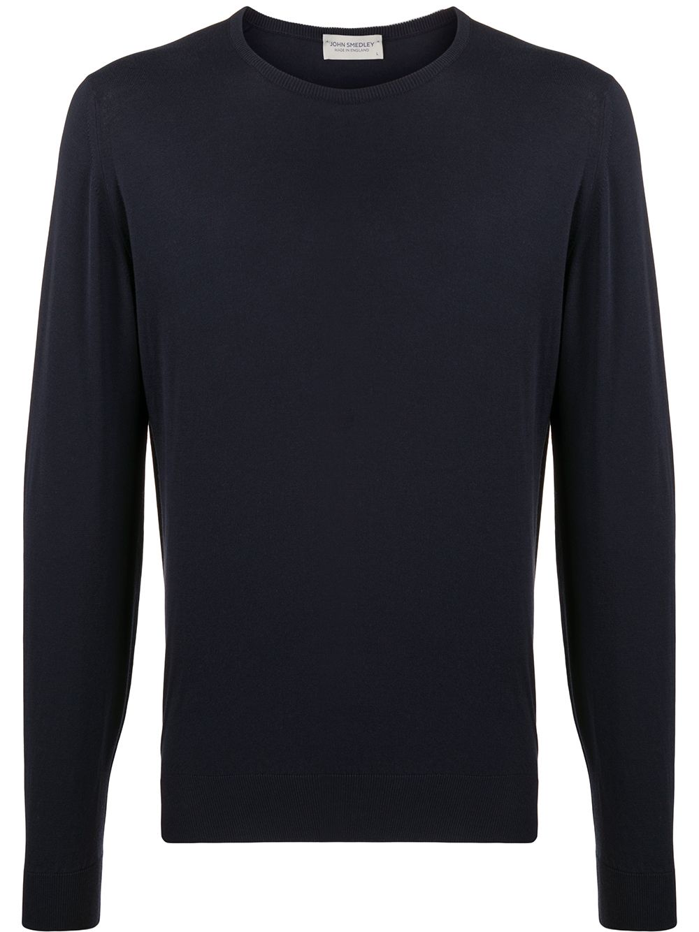 Pullover blu di JOHN SMEDLEY caratterizzato da modello classico, girocollo e maniche lunghe.