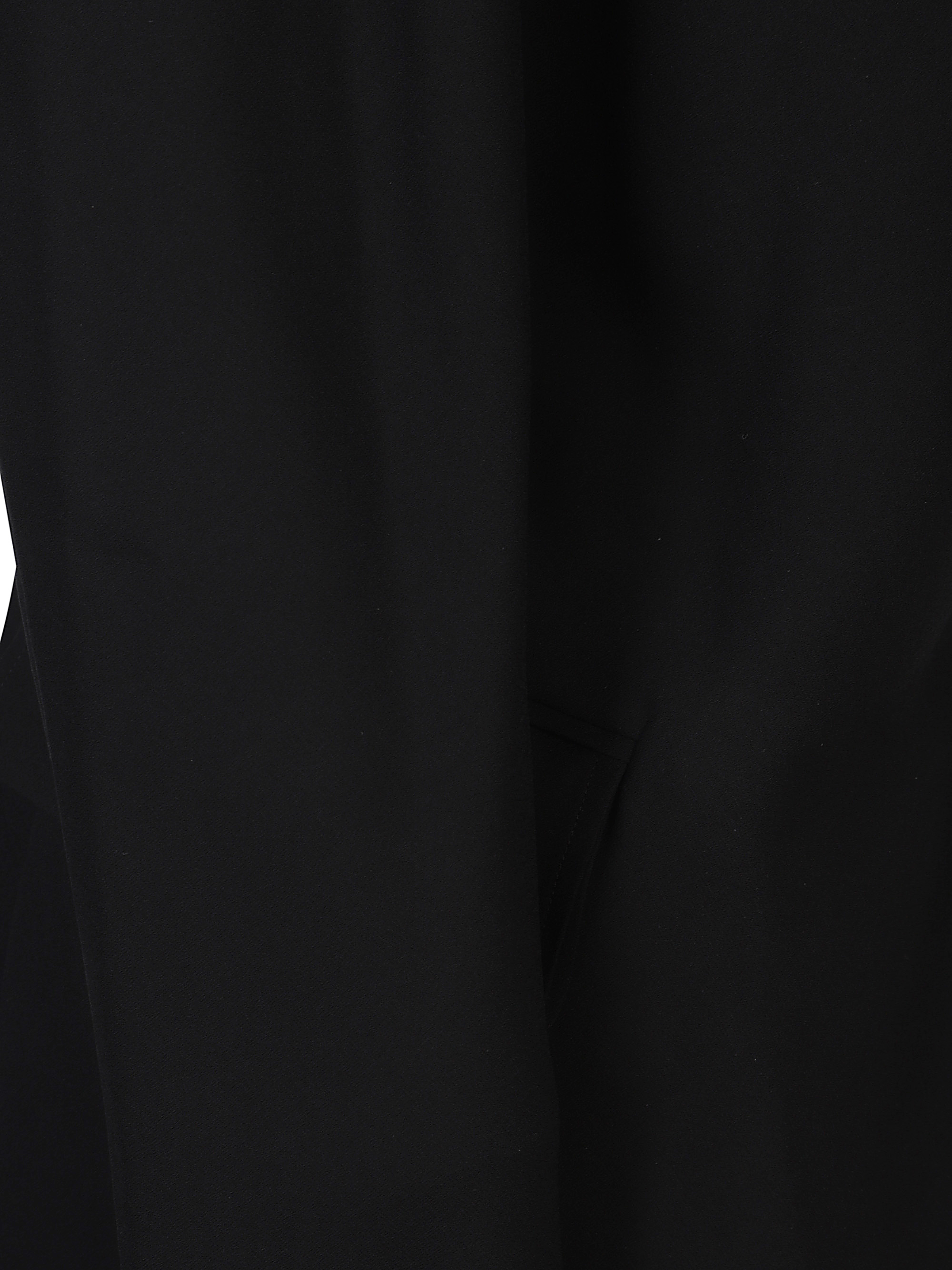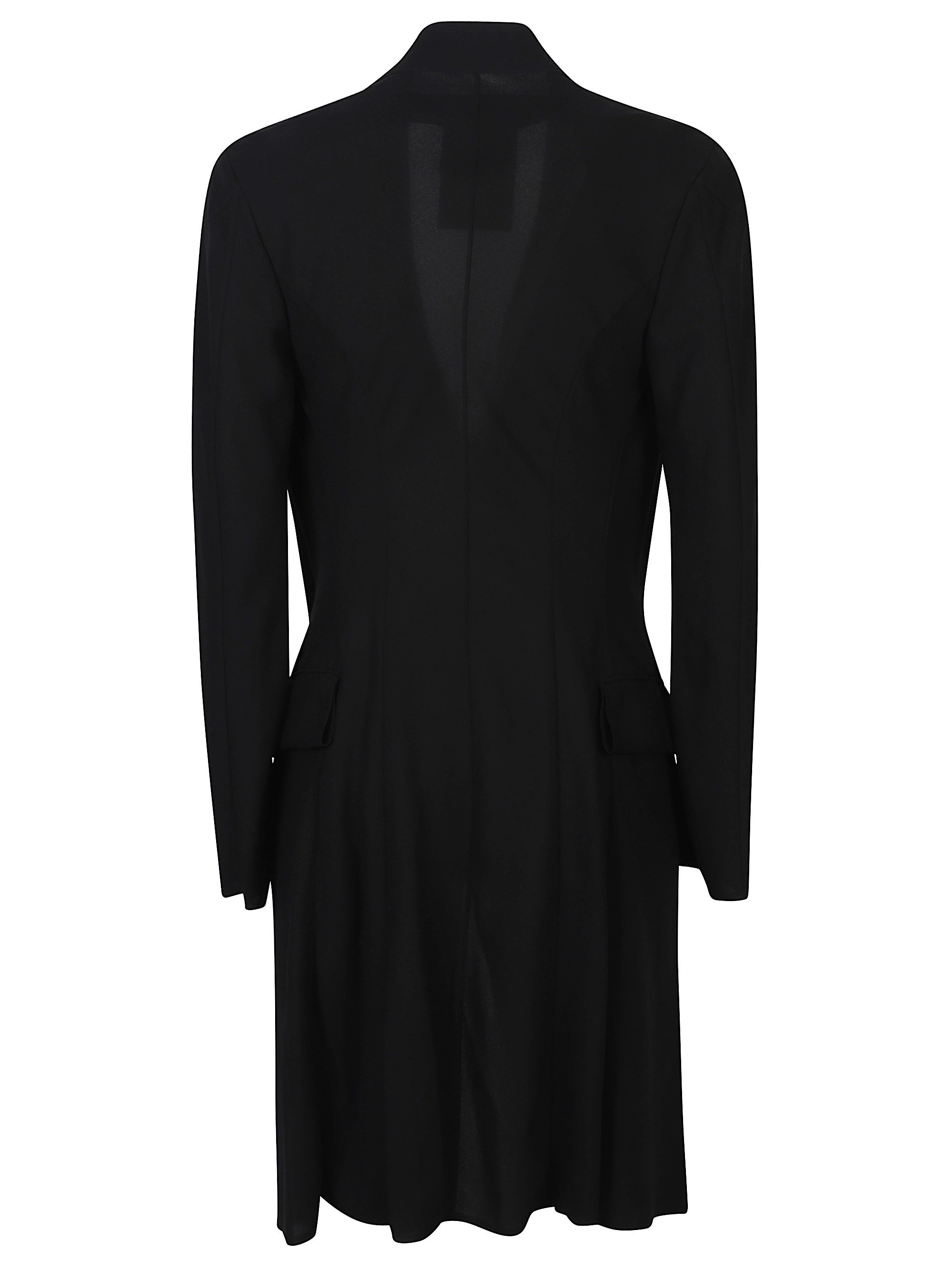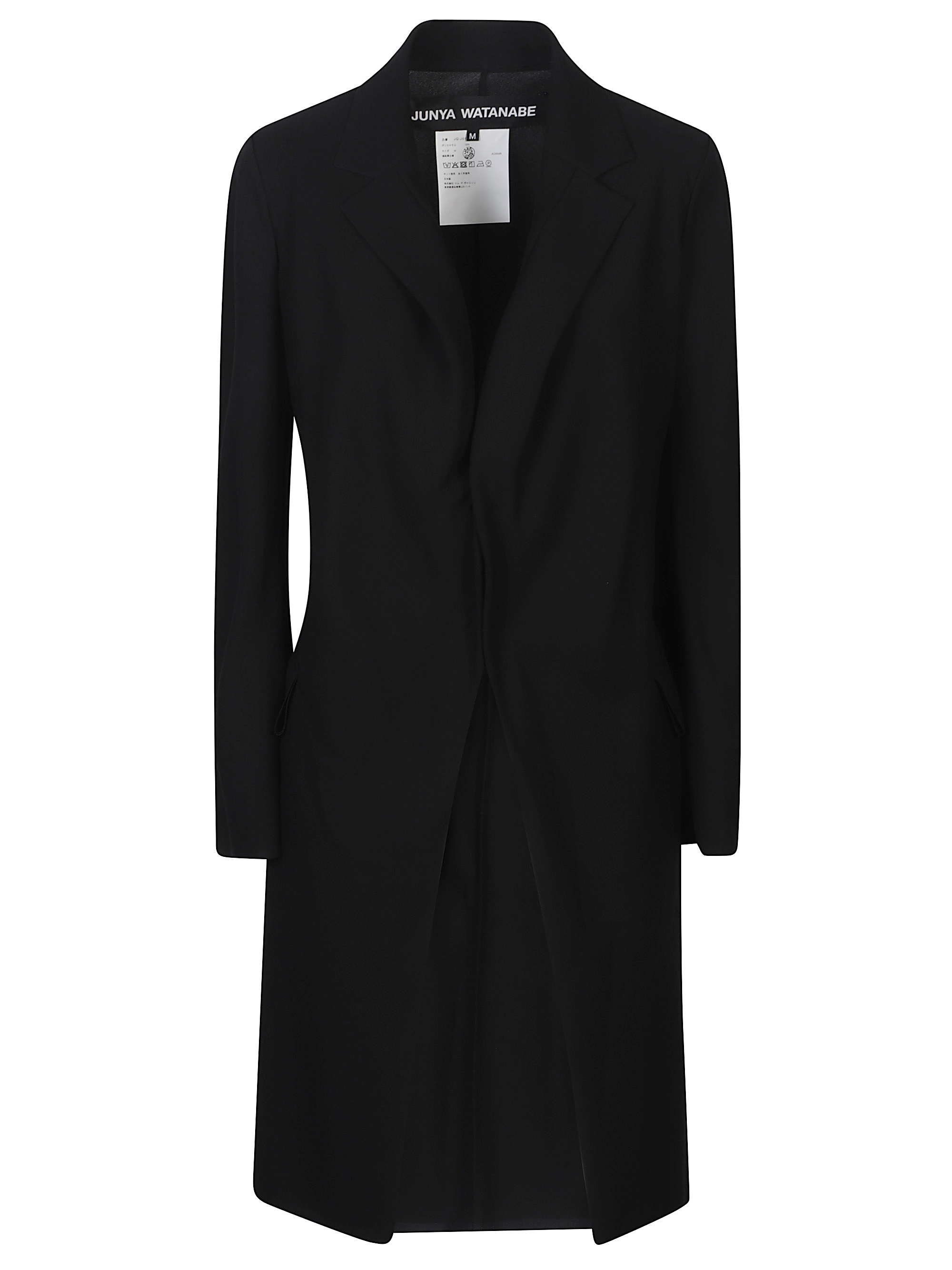 Cappotto lungo di JUNYA WATANABE nero, caratterizzato da maniche lunghe e tasche con patta.