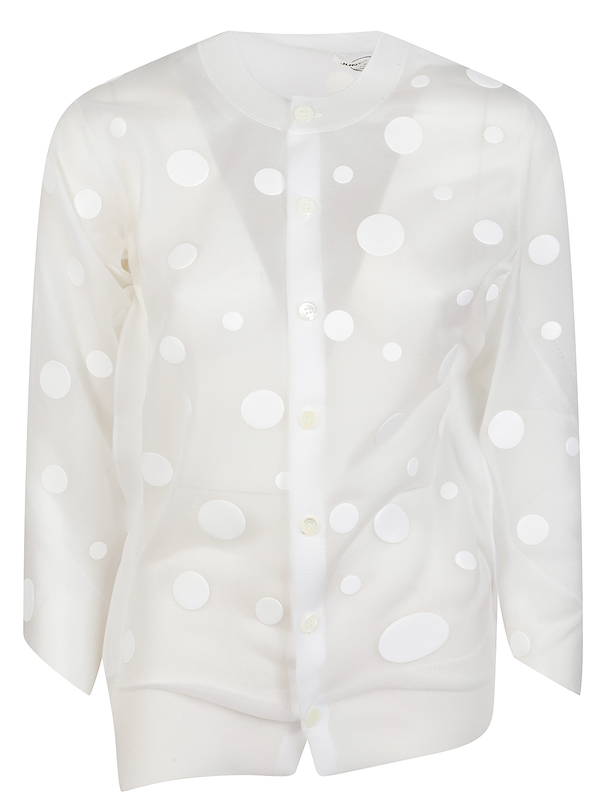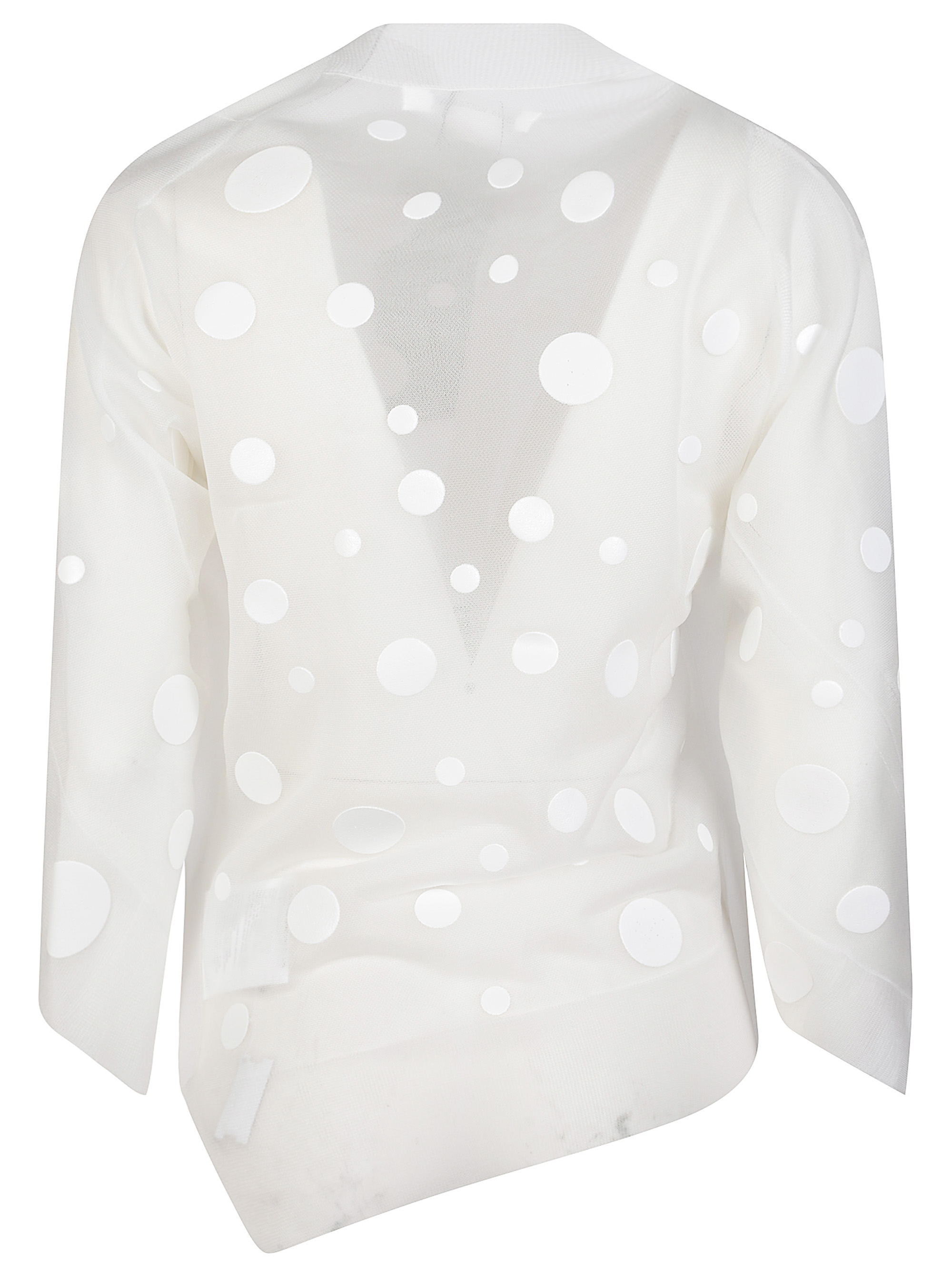 Maglia di JUNYA WATANABE bianca caratterizzata da fantasia a pois, chiusura con bottoni e maniche lunghe.