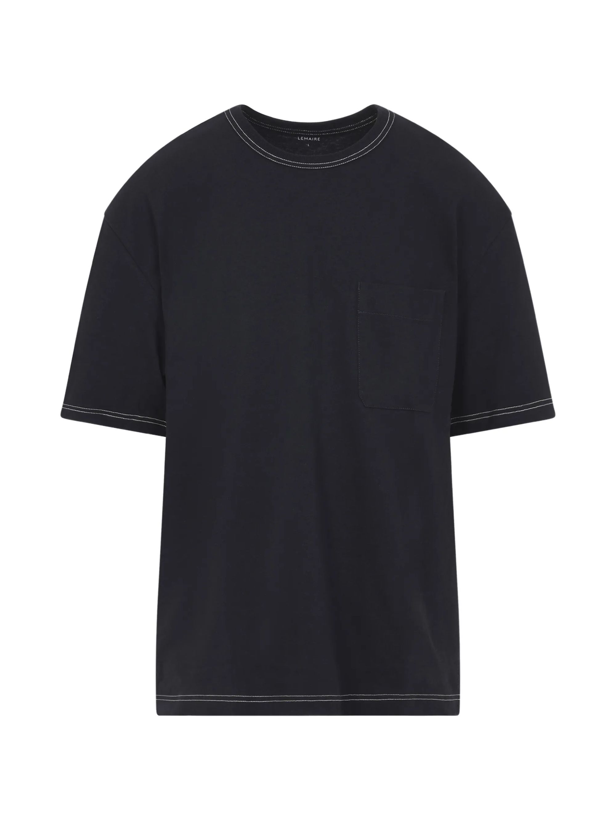 T-shirt in cotone di LEMAIRE marrone, caratterizzata da girocollo, maniche corte e impunture bianche.