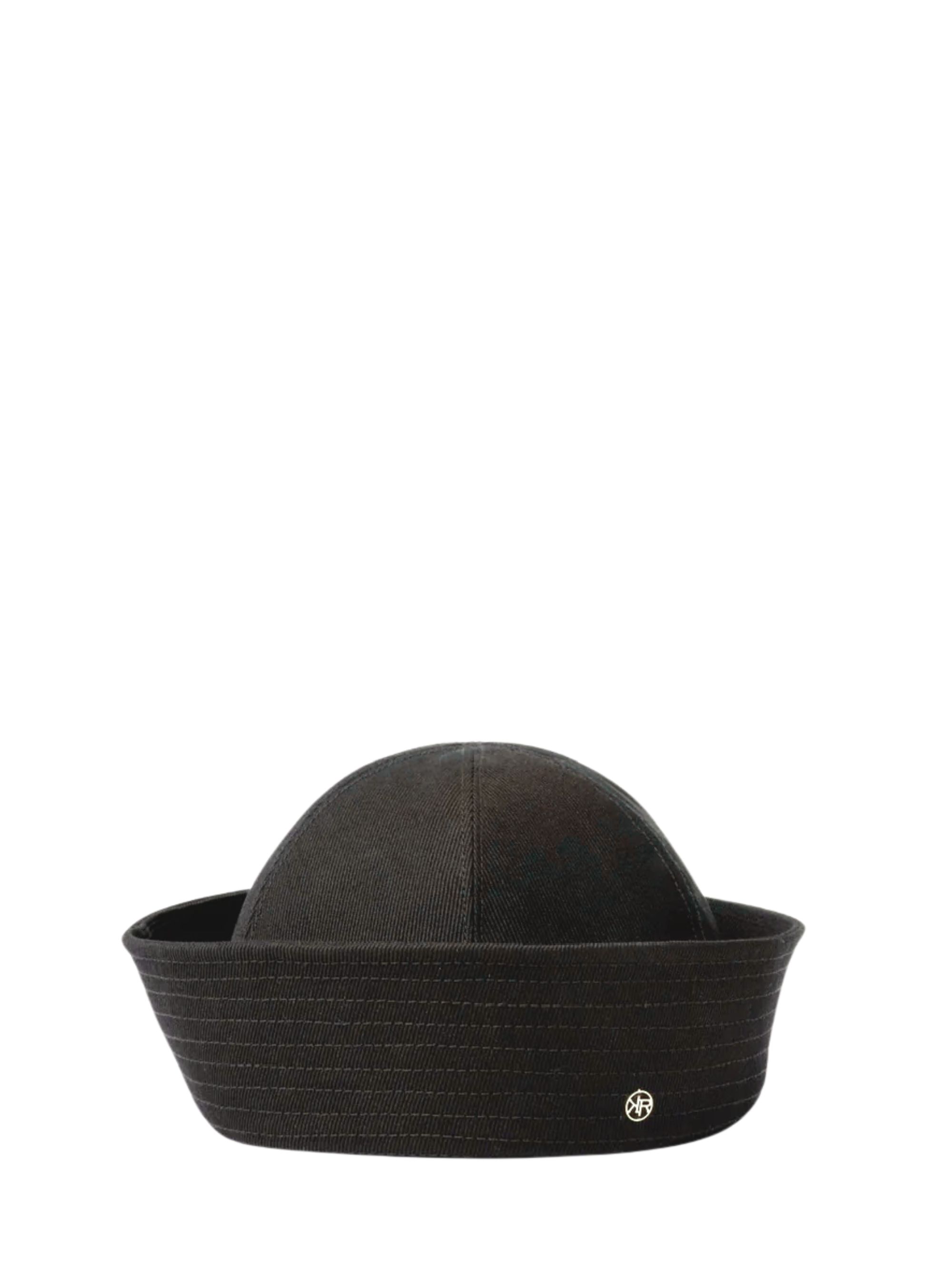 Cappello Sailor di MAISON KRASNOVA nero in misto lana e seta con placca oro con logo.