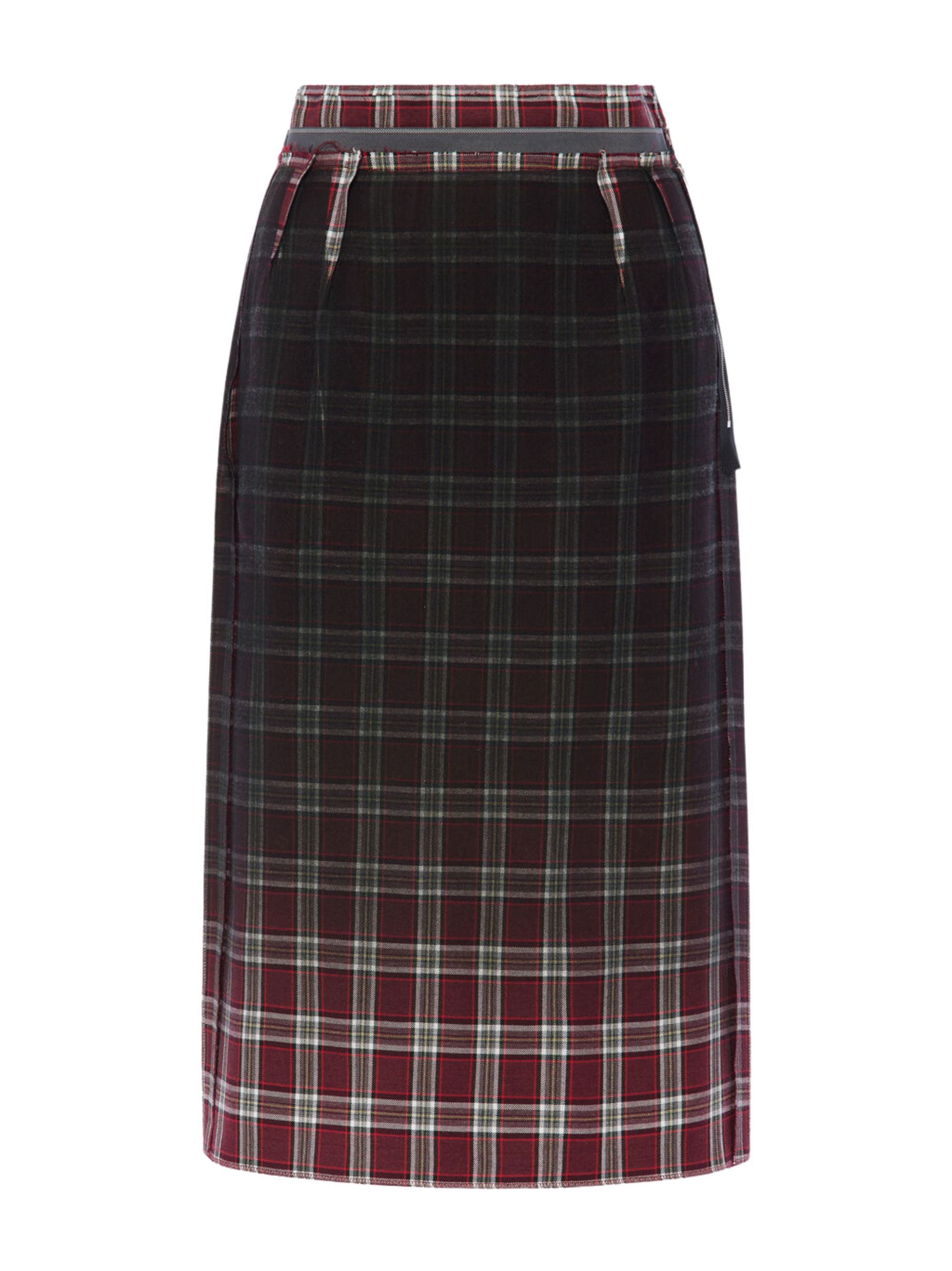 Gonna a quadri di MAISON MARGIELA multicolor in lana con effetto sbiadito, caratterizzata da lunghezza midi, tasche laterali, spacco posteriore, impunture della Maison sul retro e cintura fissa.