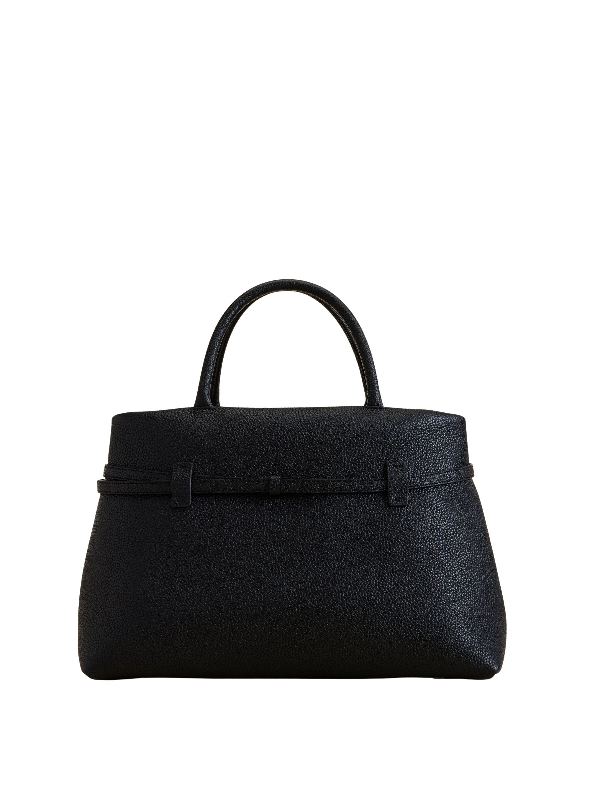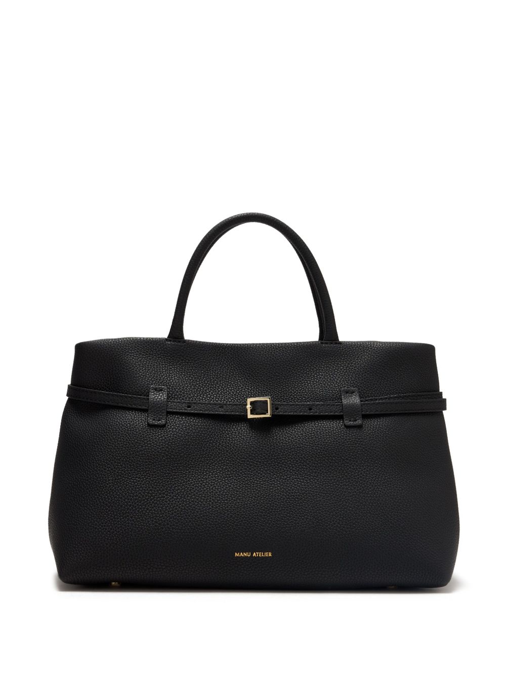 Borsa Le Cambon 35 di MANU ATELIER nera in pelle martellata con fodera, tasca interna con cerniera, manici, cinturina, logo e chiusura magnetica. Dimensioni: 35 x 22,5 x 21,5 cm