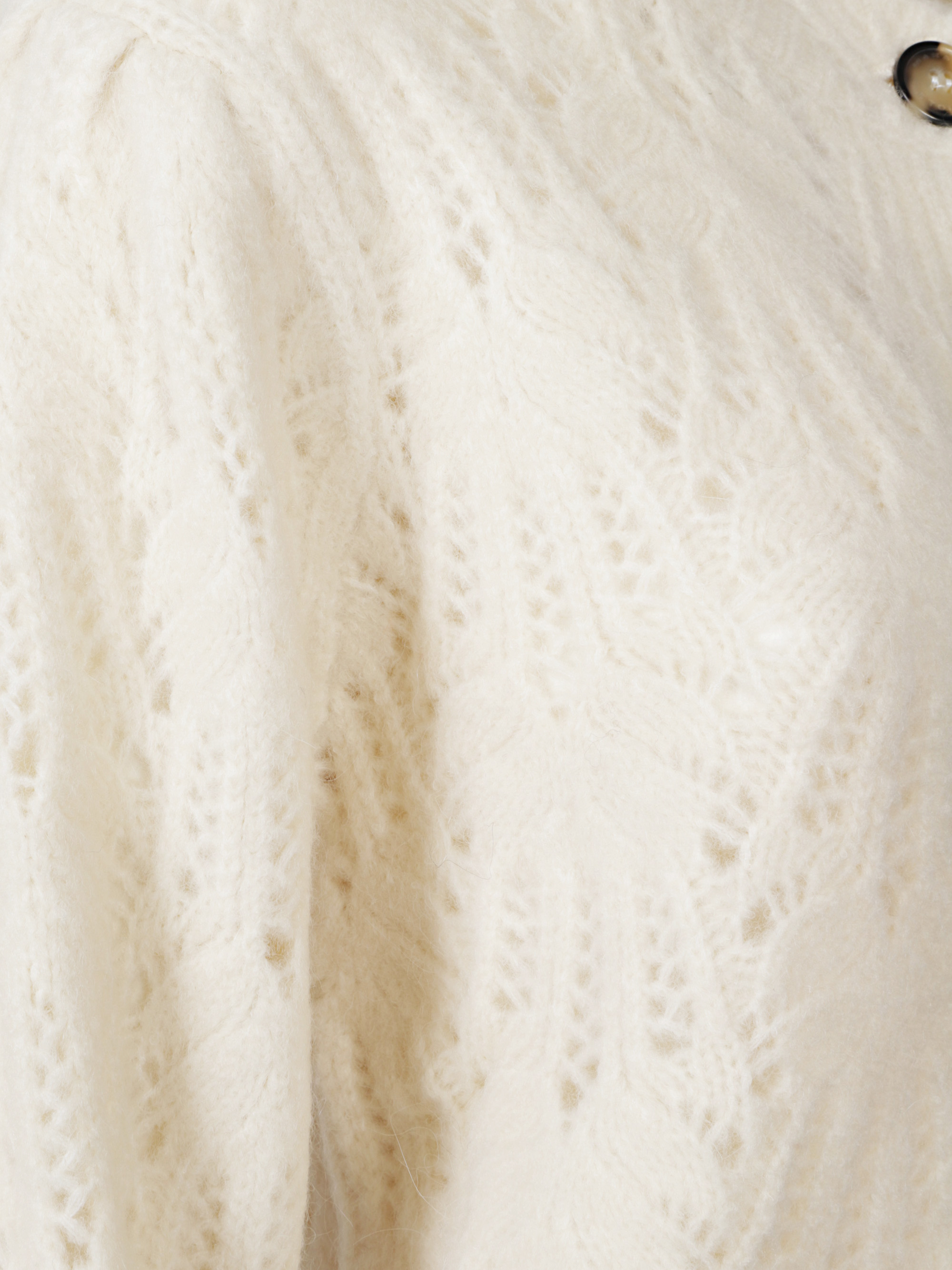 Cardigan color panna di MARANT ETOILE in alpaca caratterizzato da ricami, chiusura a bottoni e profili orlati.