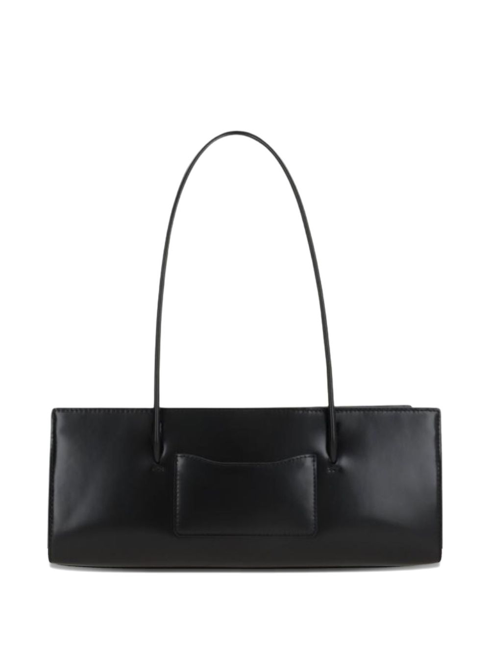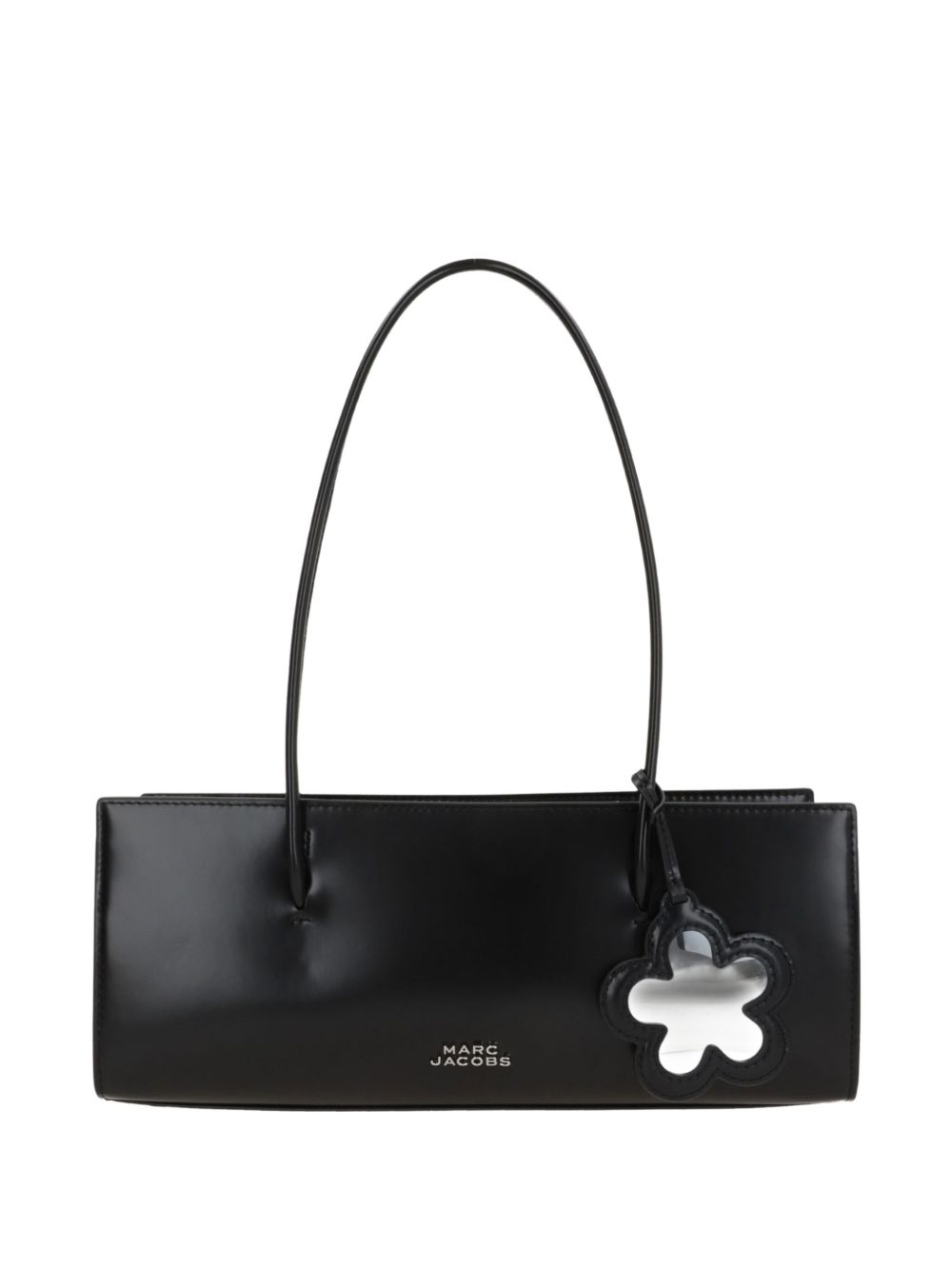 Borsa Glam The Mirror di MARC JACOBS nera in pelle spazzolata, caratterizzata da logo lettering in metallo, hardware argentato, piedini protettivi, chiusura con zip, specchietto removibile a forma di fiore e interno foderato.