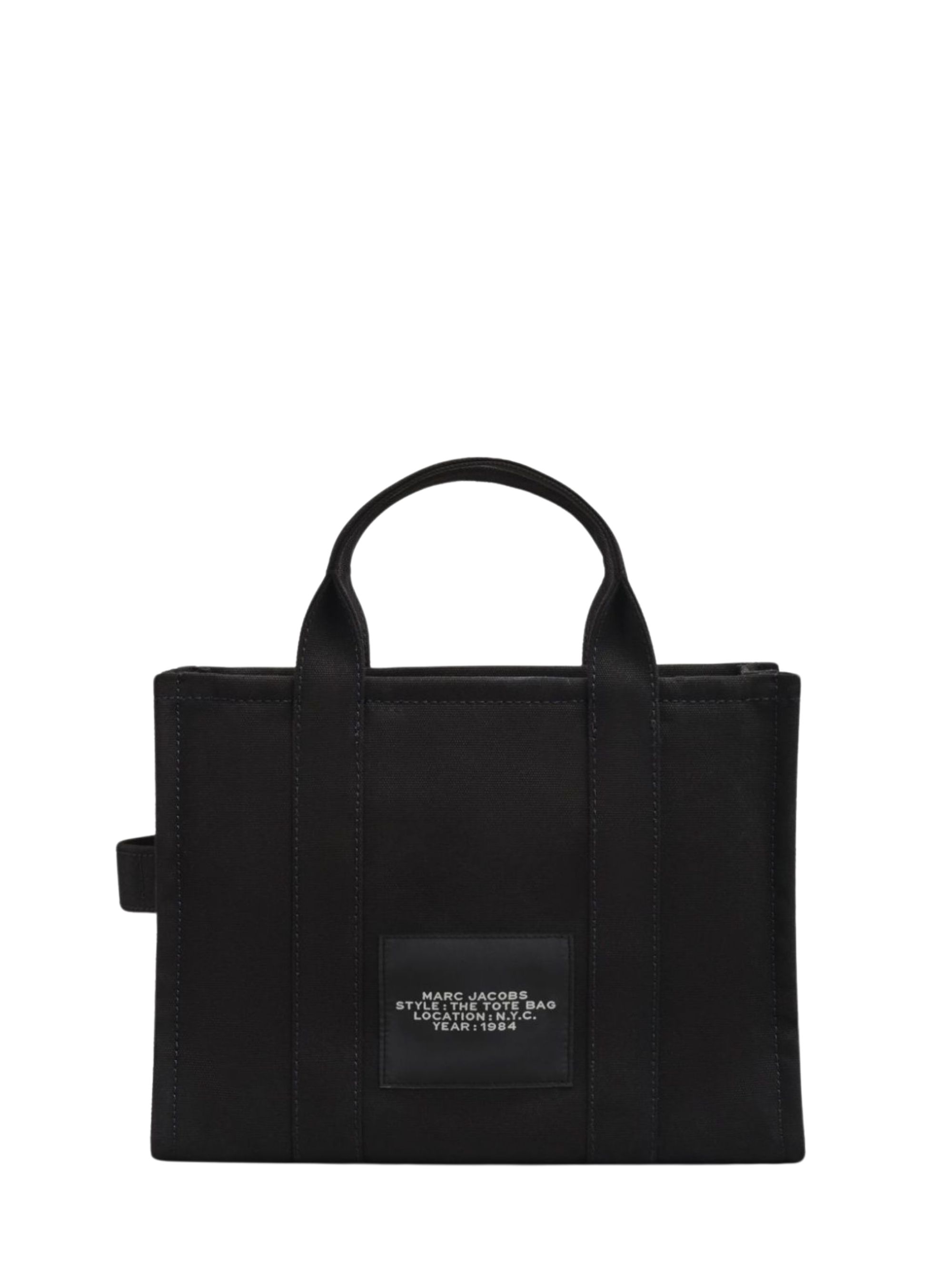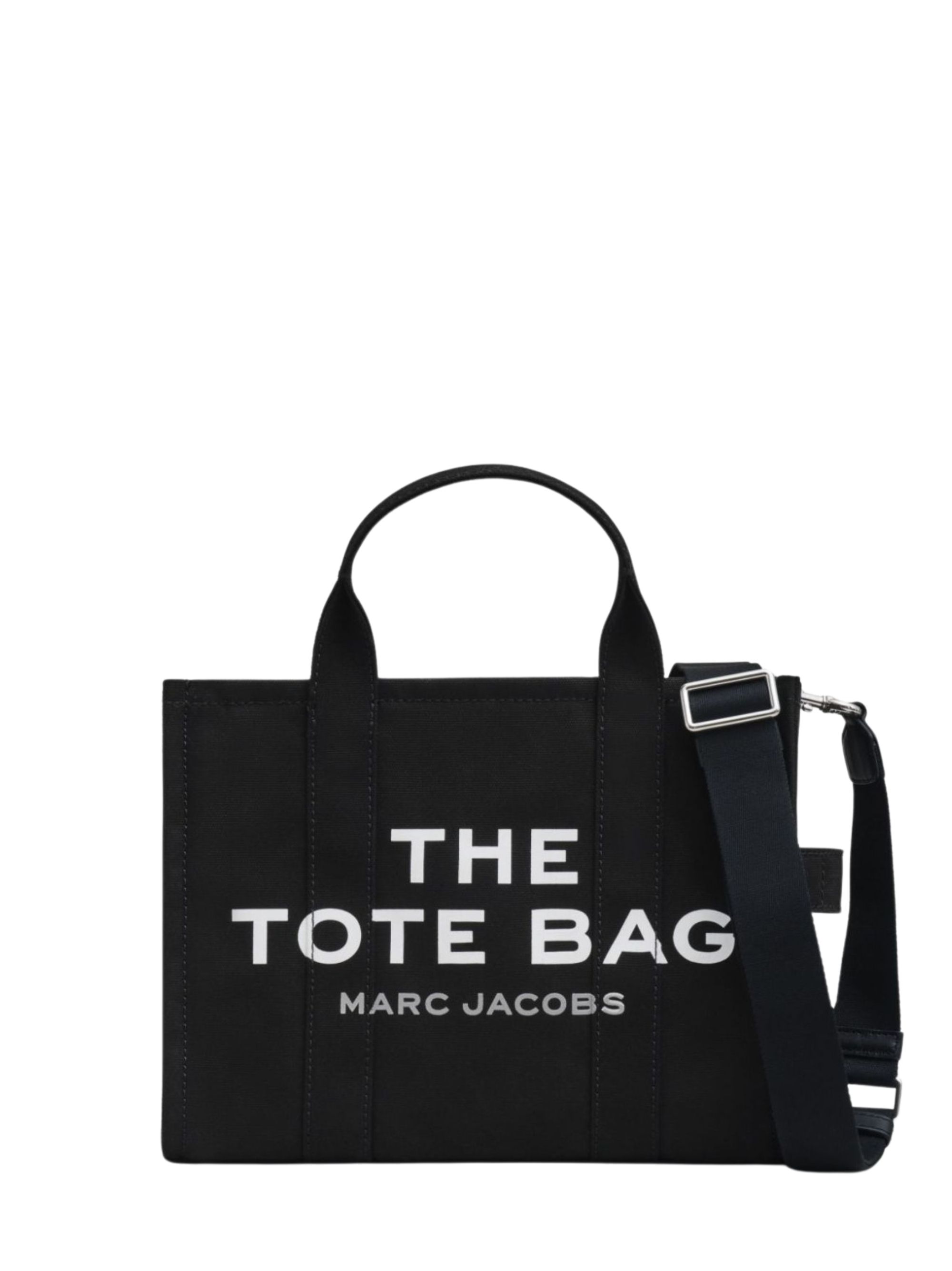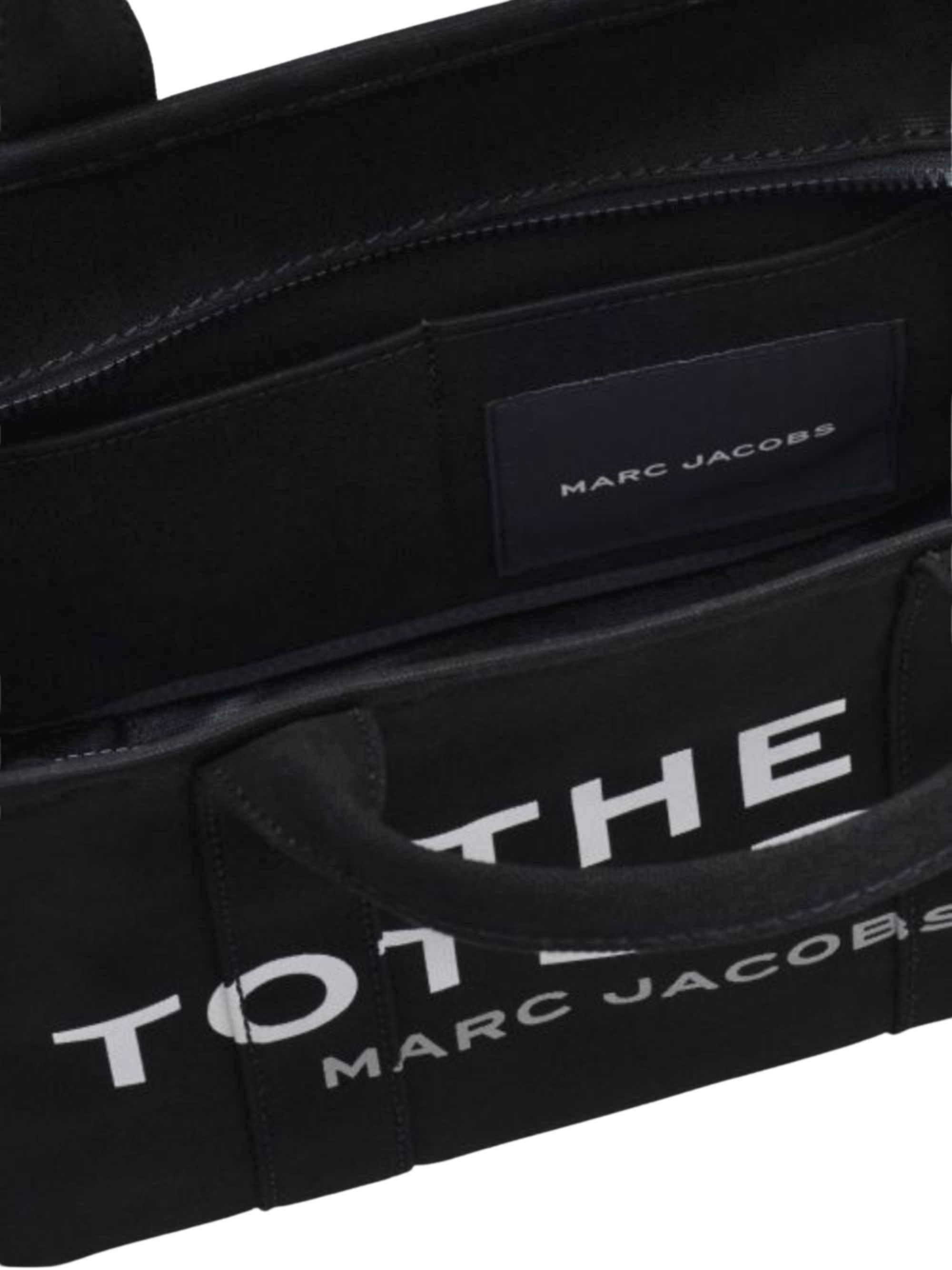 Borsa The Medium Tote di MARC JACOBS nera in cotone, caratterizzata da logo sul fronte, due manici tondi, tracolla rimovibile e tasca interna con zip.