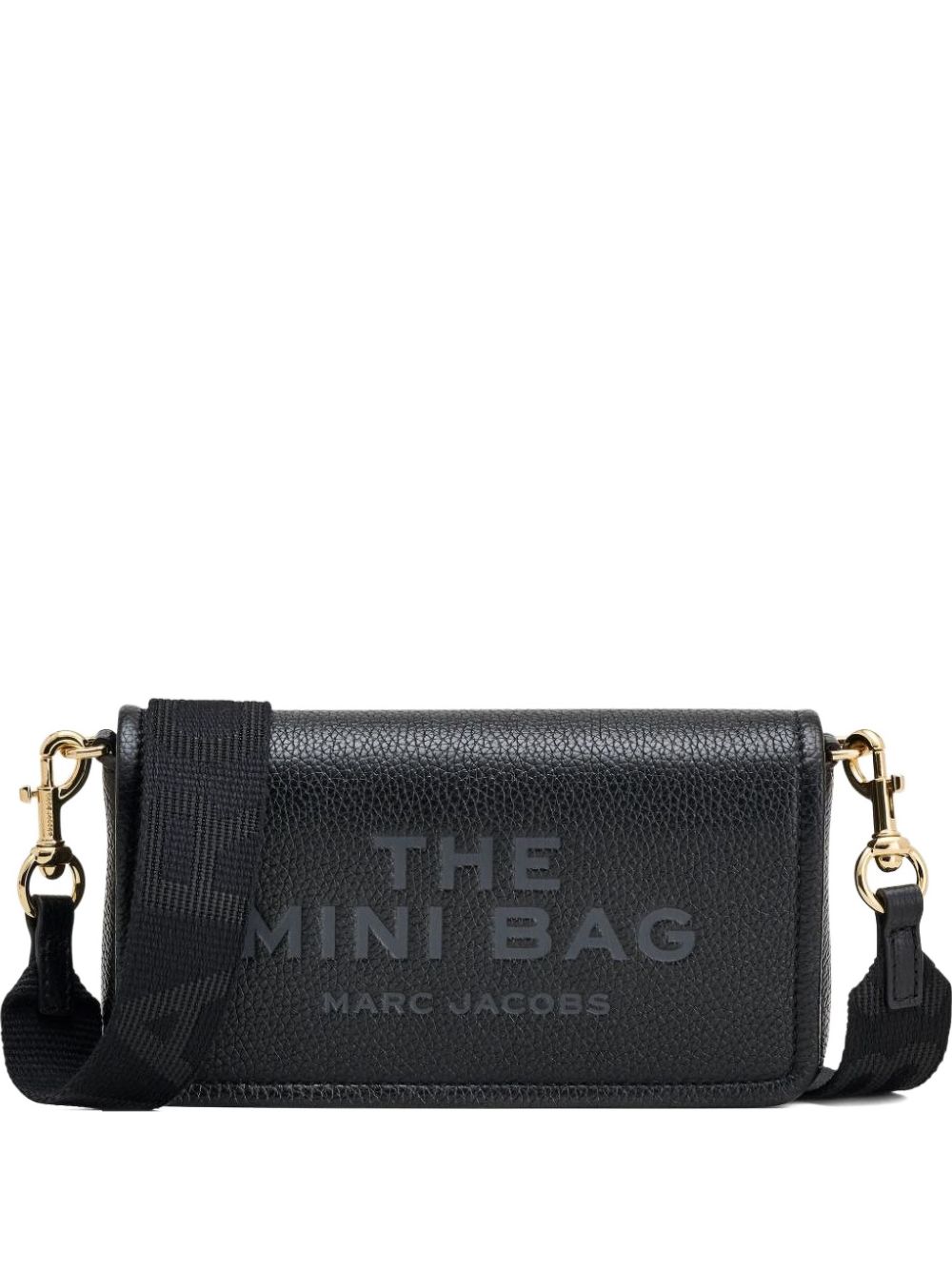 Borsa The Mini Bag di MARC JACOBS nera in pelle, caratterizzata da logo impresso sul fronte, tracolla regolabile e rimovibile, chiusura con patta e molteplici tasche a bustina.