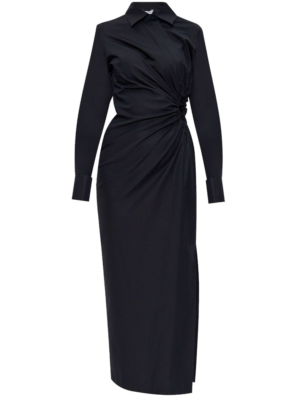 Abito Etere di MAX MARA nero in cotone con dettaglio cut-out, colletto classico e chiusura frontale nascosta.