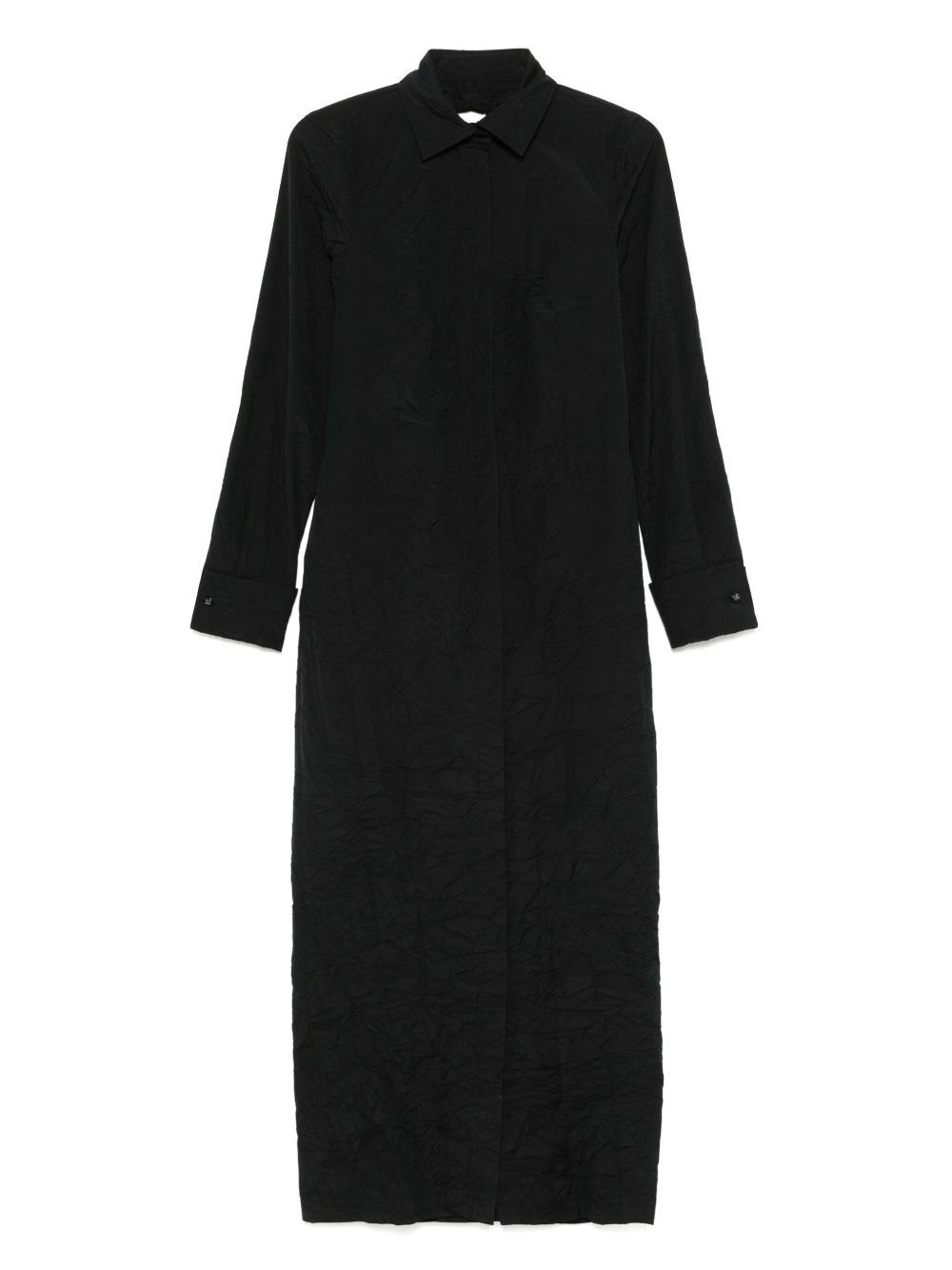 Abito Rovigo di MAX MARA nero in cotone con tasche laterali, apertura sul retro, polsini con abbottonatura, tasche laterali e abbottonatura frontale nascosta.