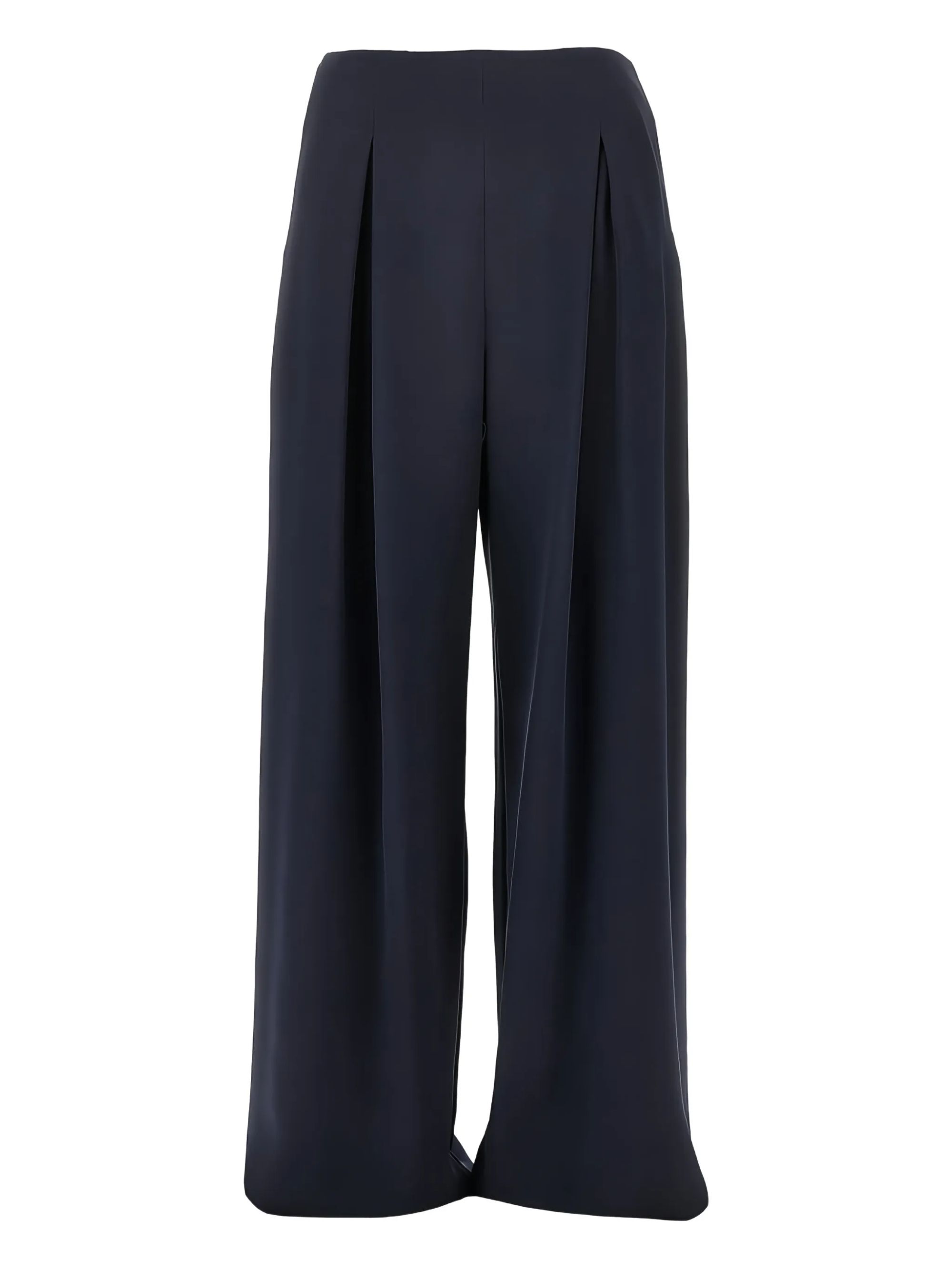 Pantalone Palude di MAX MARA PURE in seta blu caratterizzato da parte anteriore plissettata, tasche frontali e cerniera laterale.