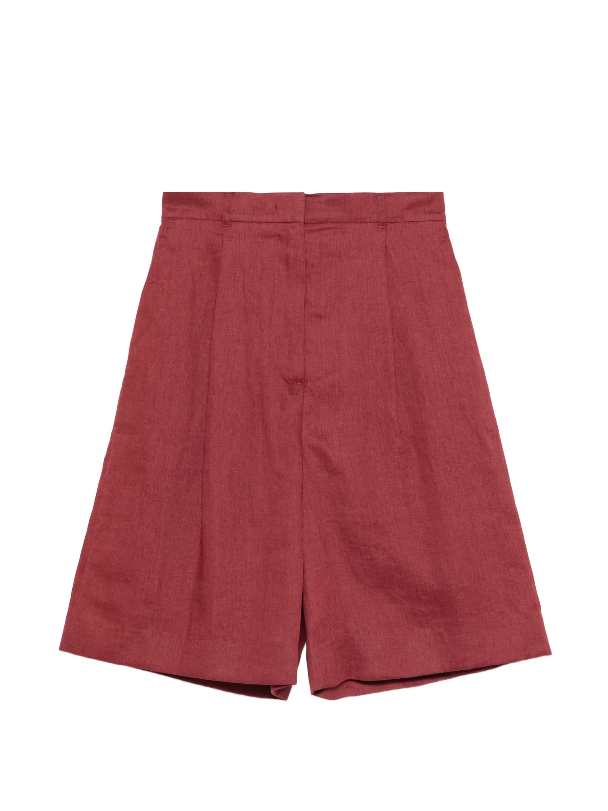 Shorts Caravan di MAX MARA STUDIO rosso mattone caratterizzati da gamba dritta, pieghe frontali e passanti per cintura.