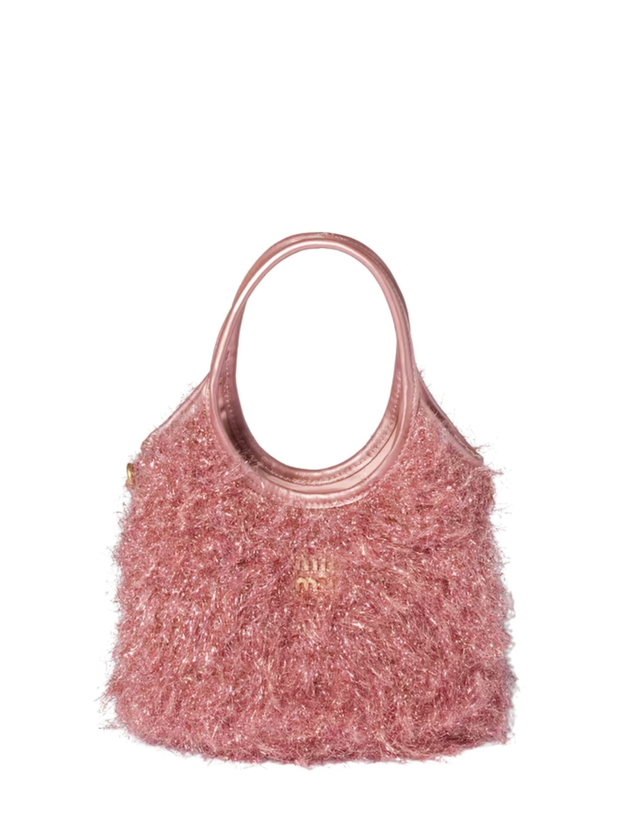 Borsa Ivy Lurex di MIU MIU rosa in lurex a maglia, caratterizzata da manici in pelle, tracolla in pelle regolabile e rimovibile, hardware color oro, interno in raso di cotone con tasca e logo in metallo. Dimensioni: 24 x 20 CM.