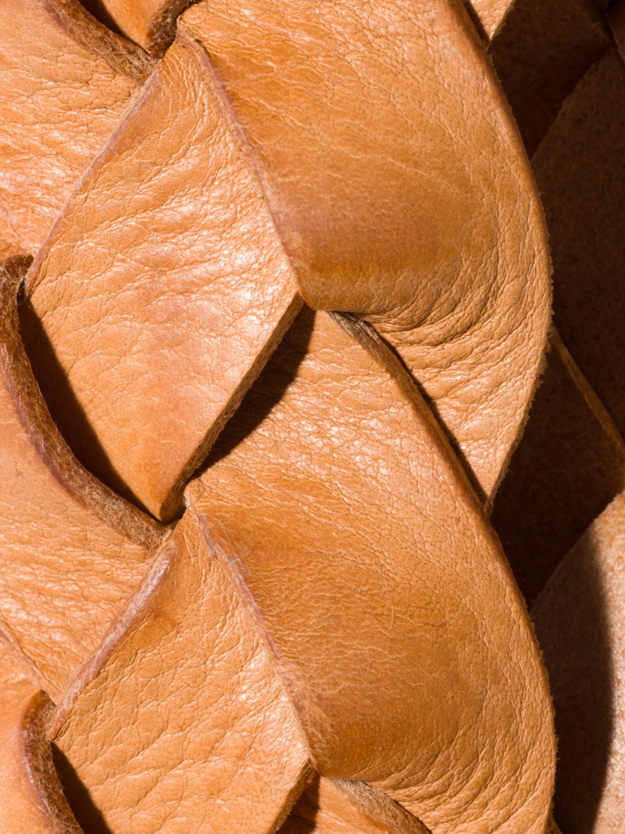 Cintura in pelle di MIU MIU marrone con design intrecciato e ganci.