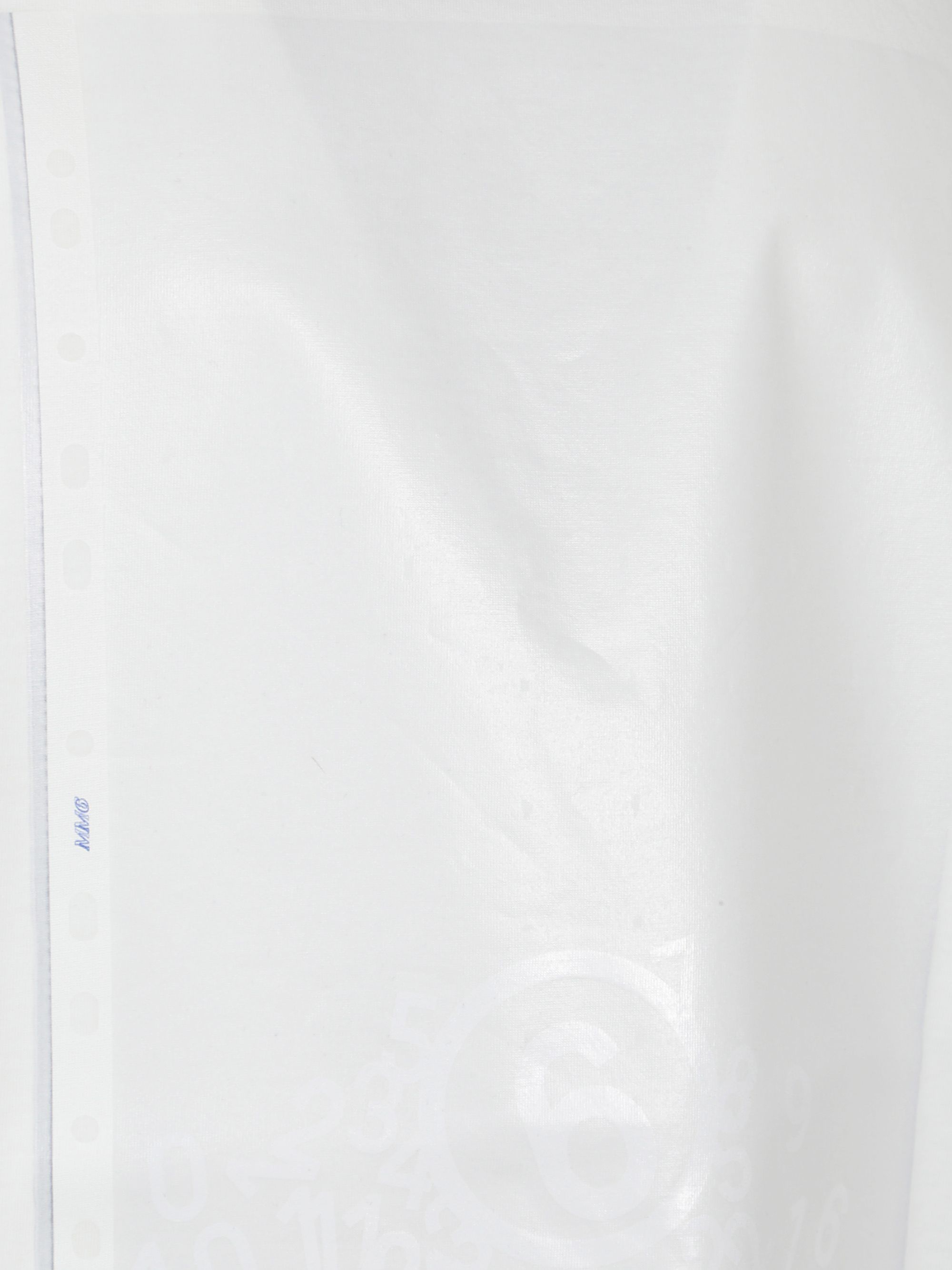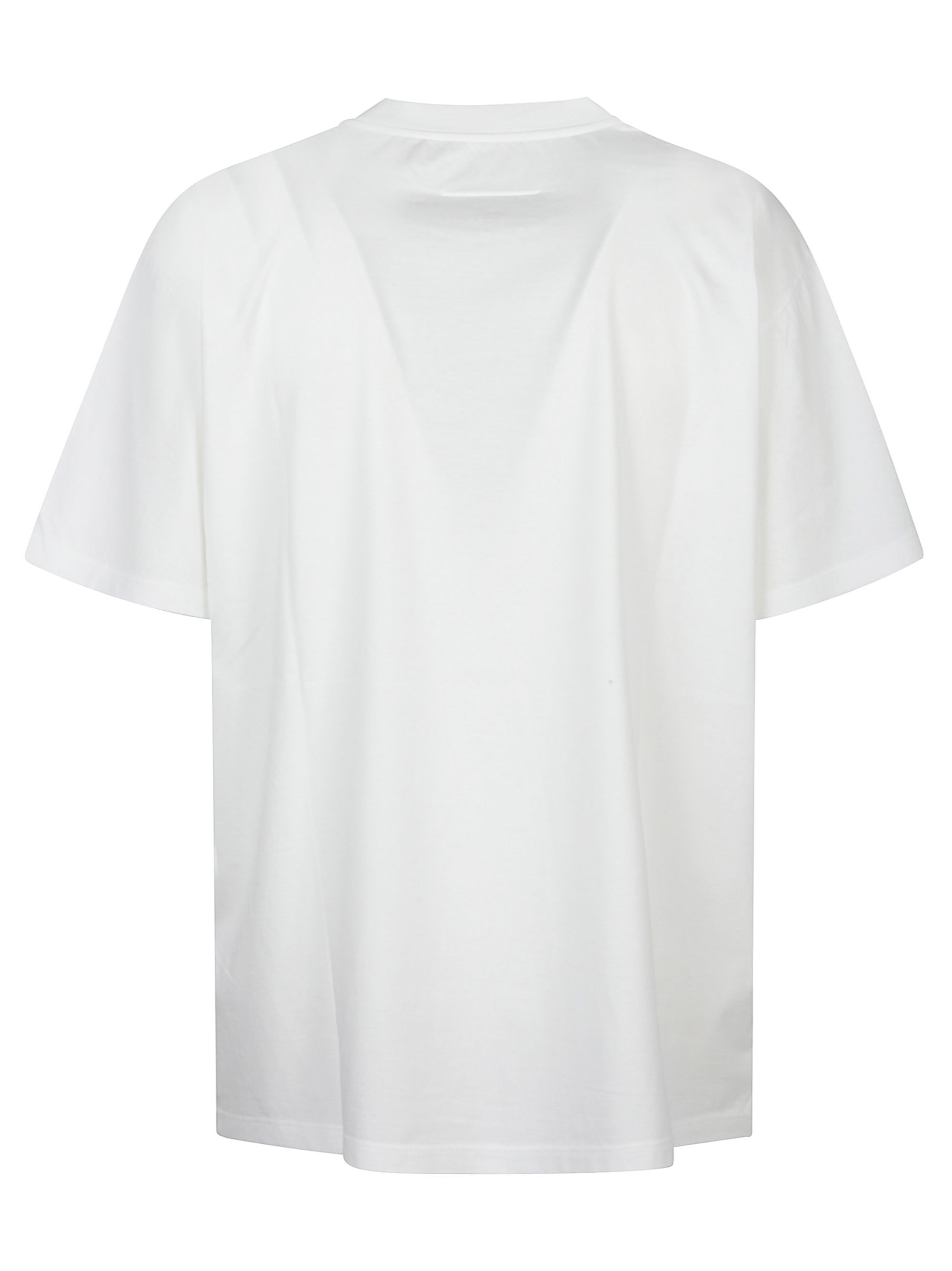 T-shirt con stampa spray di MM6 biana in cotone, caratterizzata da dettaglio effetto spray con patch sul petto, maniche corte, girocollo e white stitch sul retro.