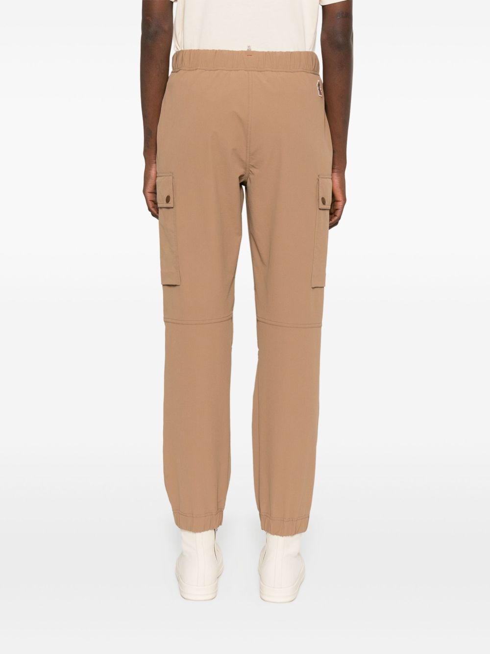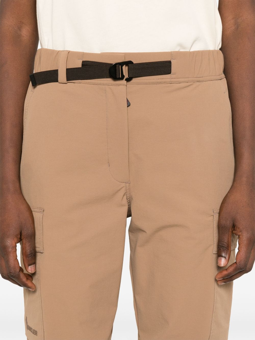 Pantalone cargo di MONCLER GRENOBLE marrone cammello con vita elasticizzata, orli elasticizzati e chiusura con zip nascosta, bottone e moschettone.