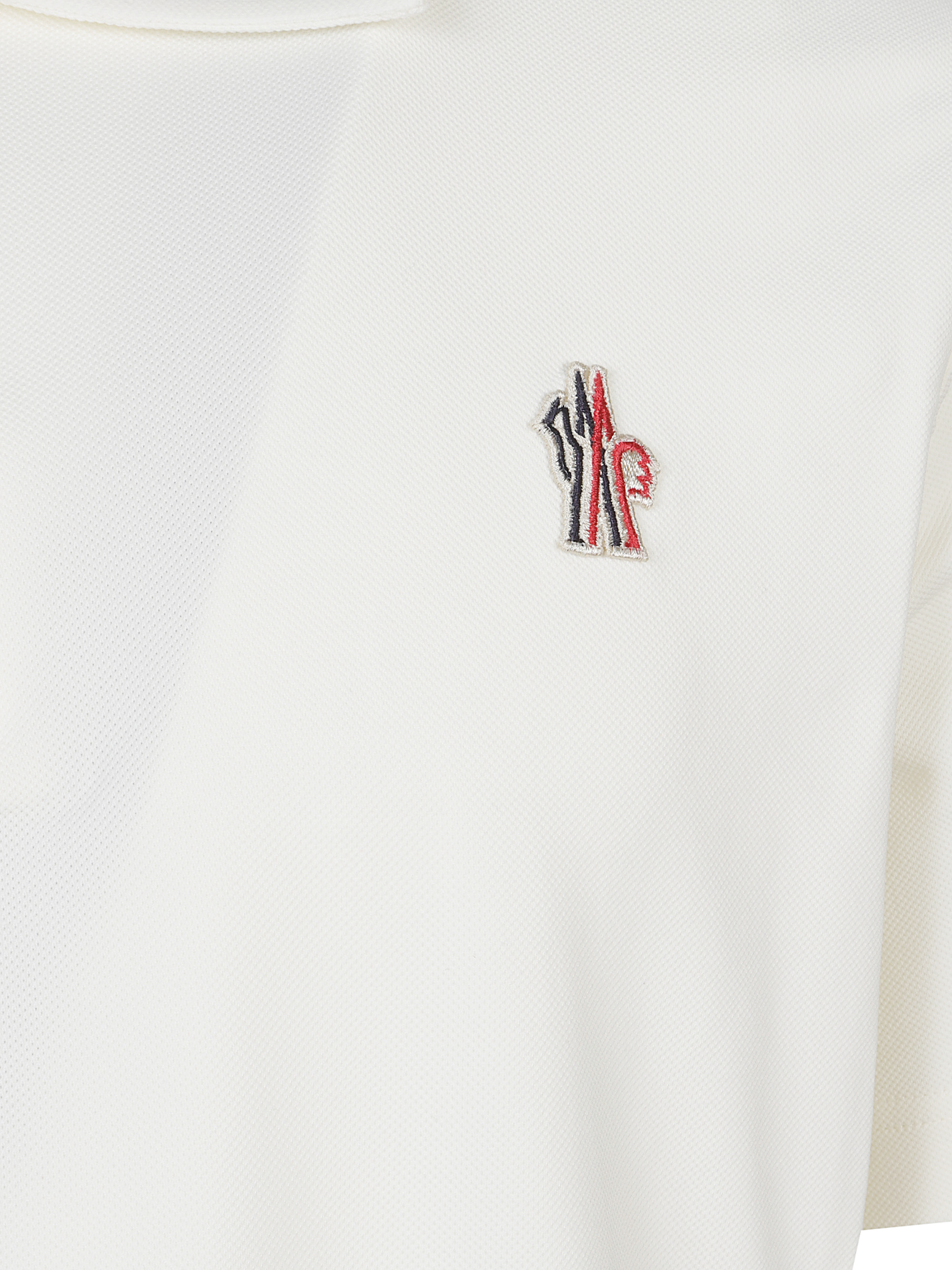 Polo con patch logato di MONCLER GRENOBLE bianca in piquet, caratterizzata da colletto classico, maniche corte, chiusura con bottoni e iconico patch logo.