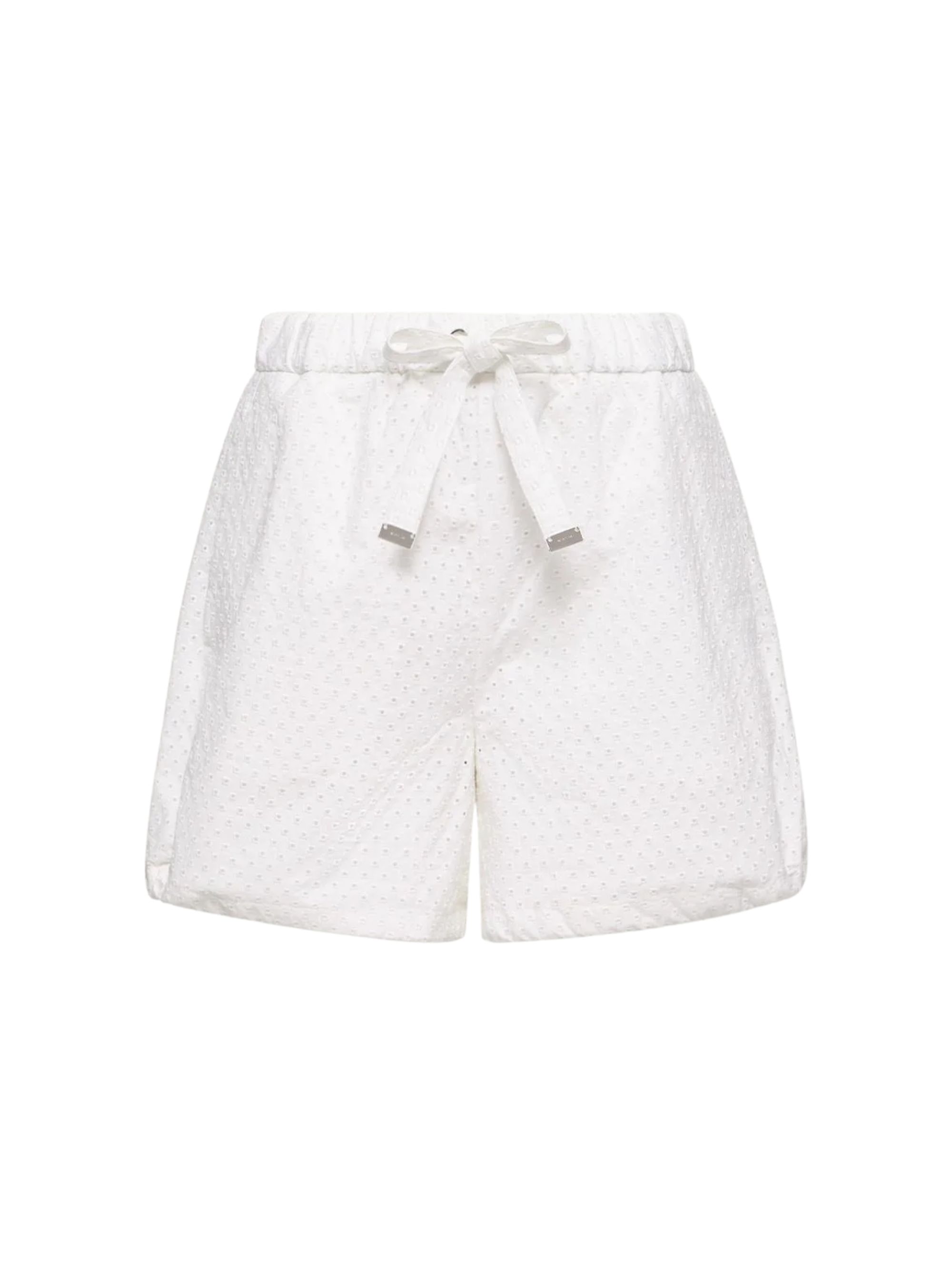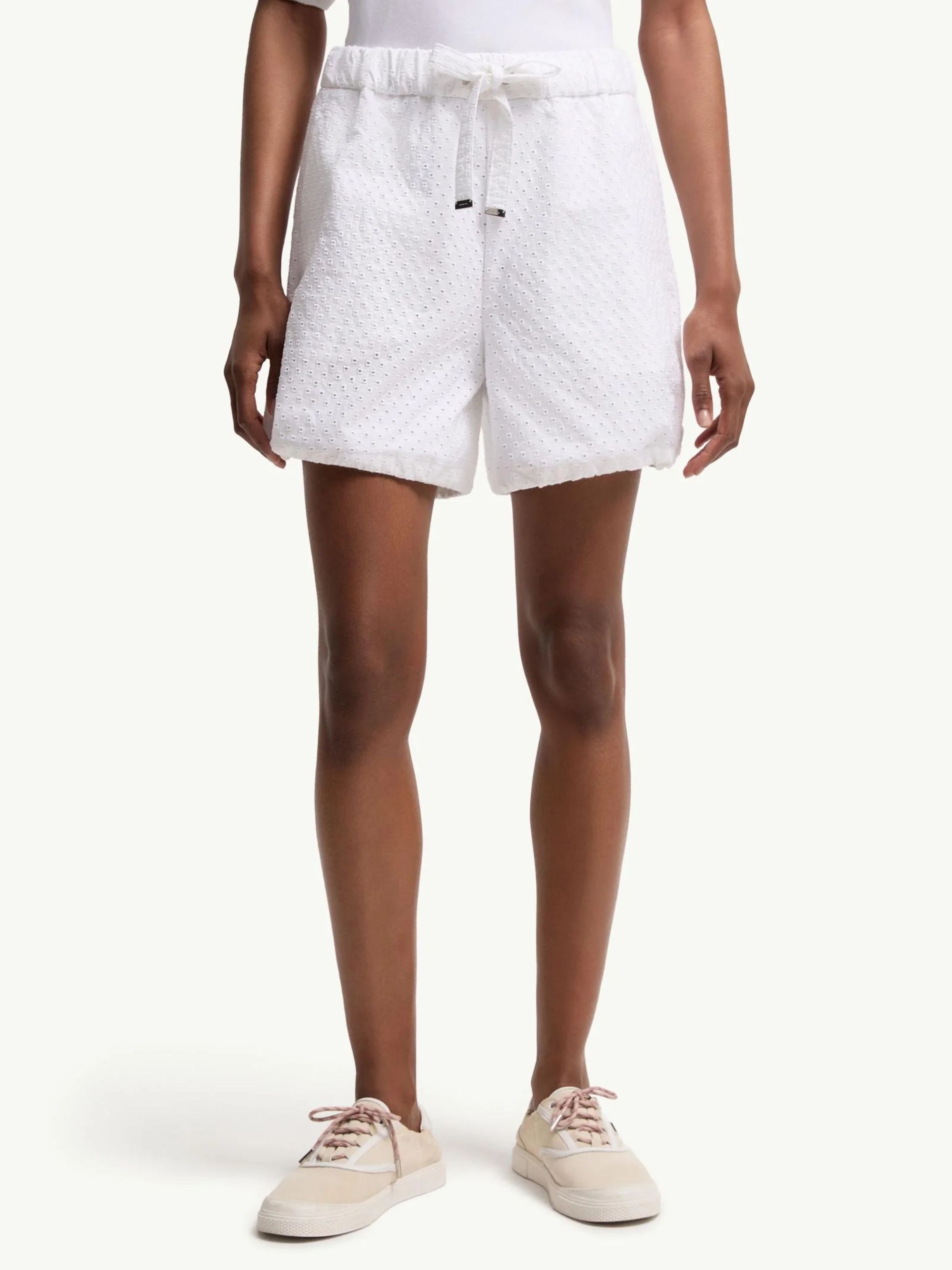 Short in popeline di MONCLER bianco in cotone, tasche inserite nelle cuciture, tasche applicate sul retro, vita elasticizzata e coulisse.