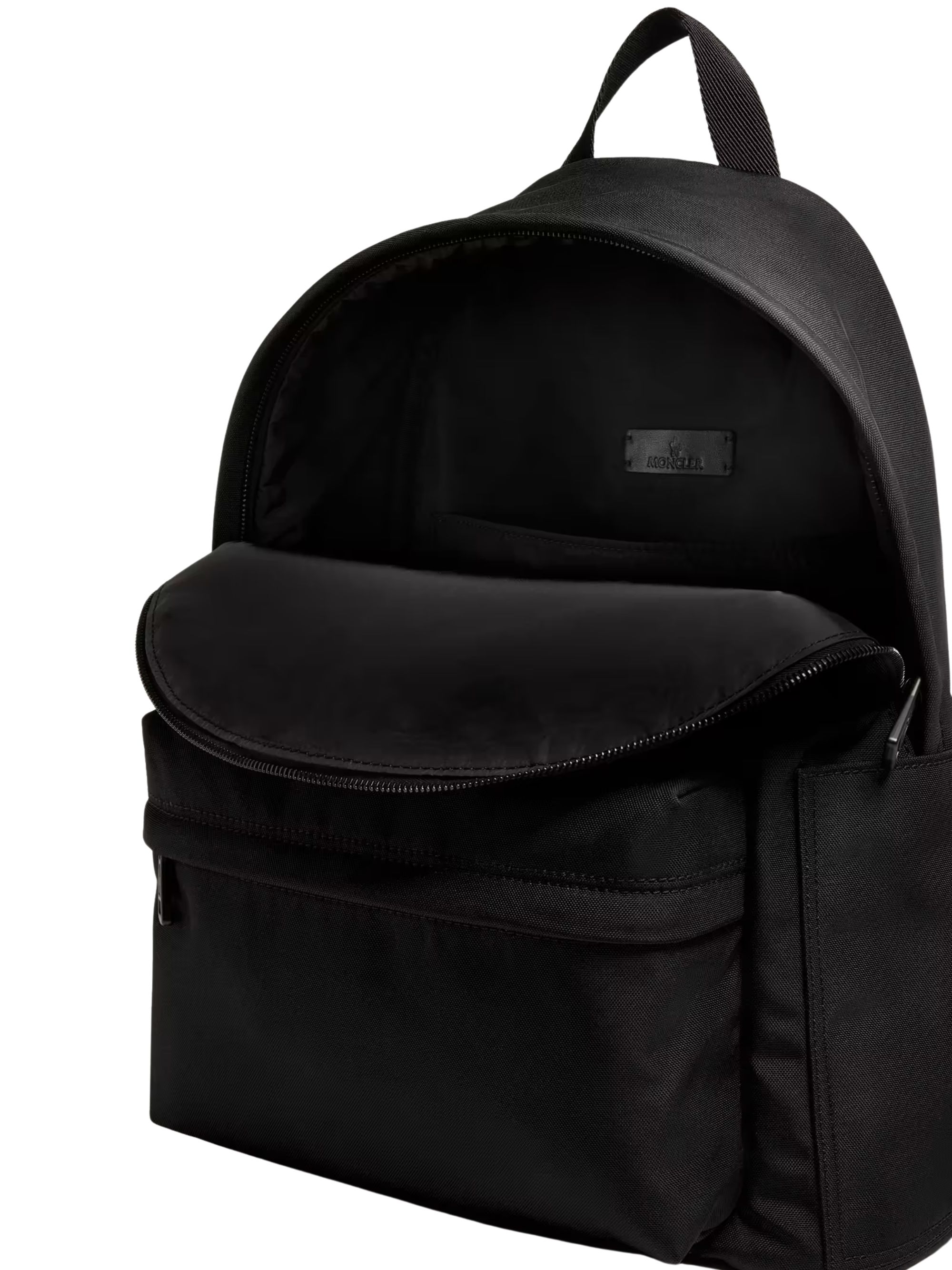 Zaino New Pierrick di MONCLER nero in nylon con tasca e chiusura con zip.