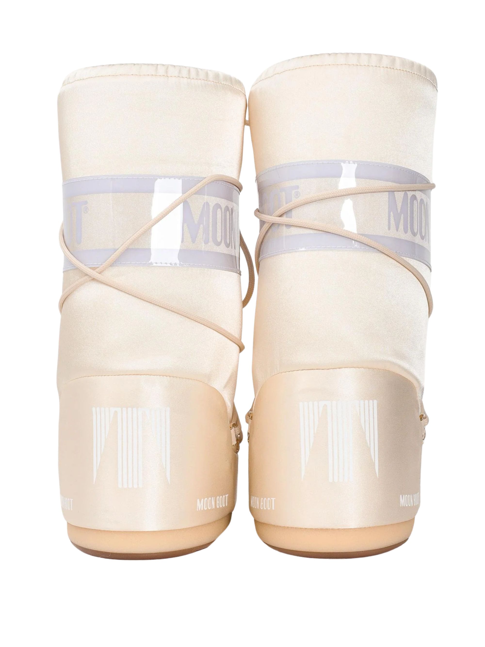 Stivale da neve Icon Pearly di MOON BOOT bianco in nylon, caratterizzato da imbottitura isolante, chiusura con lacci e coulisse e suola antiscivolo.
